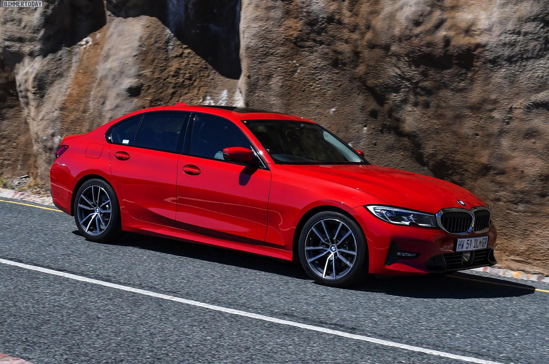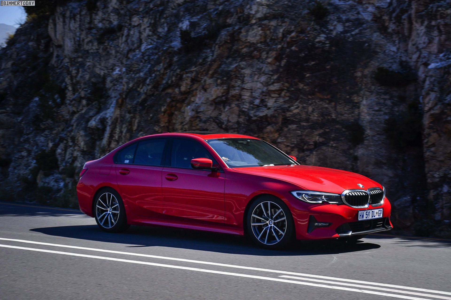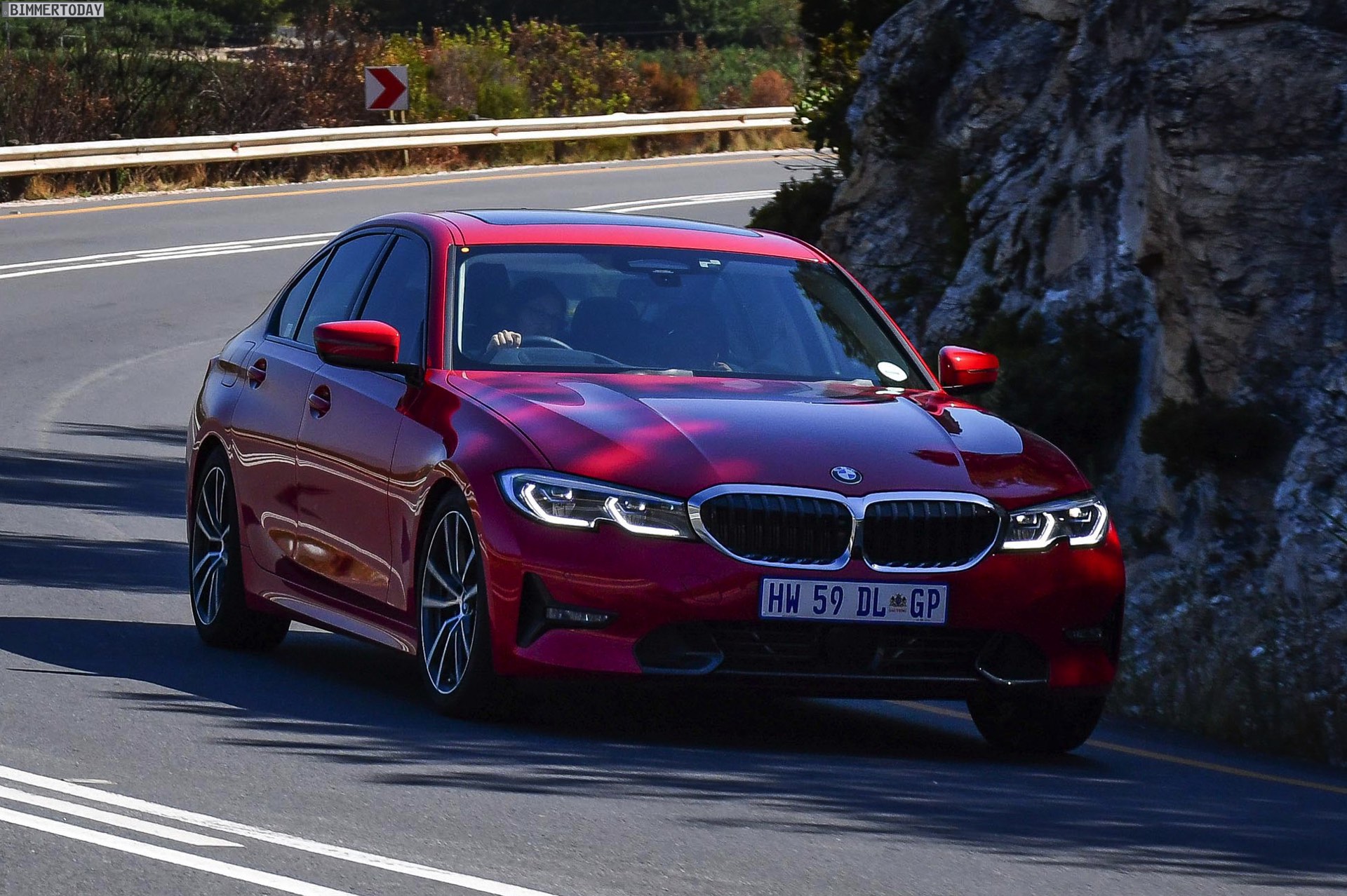 Der neue BMW 3er G20 hat am Wochenende seinen lange erwarteten Marktstart gefeiert, schon bald dürften alle Farben auch auf den Straßen unterwegs sein. Zu den eher selten gewählten Lackierungen wird aller Erfahrung nach Melbourne Rot zählen, weil die meisten Kunden lieber zu gedeckteren und weniger auffälligen Farben greifen. Wie gut das kräftige Rot dem neuen 3er steht, zeigen einige neue Fotos aus Südafrika.