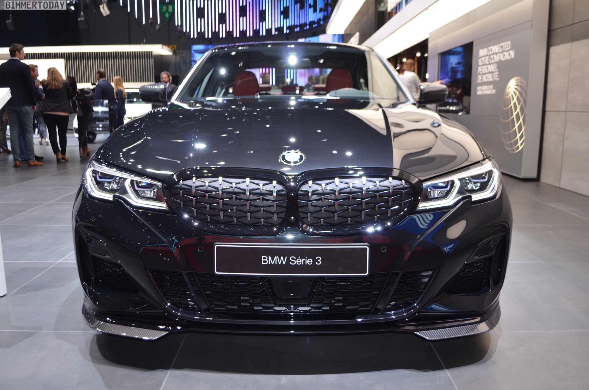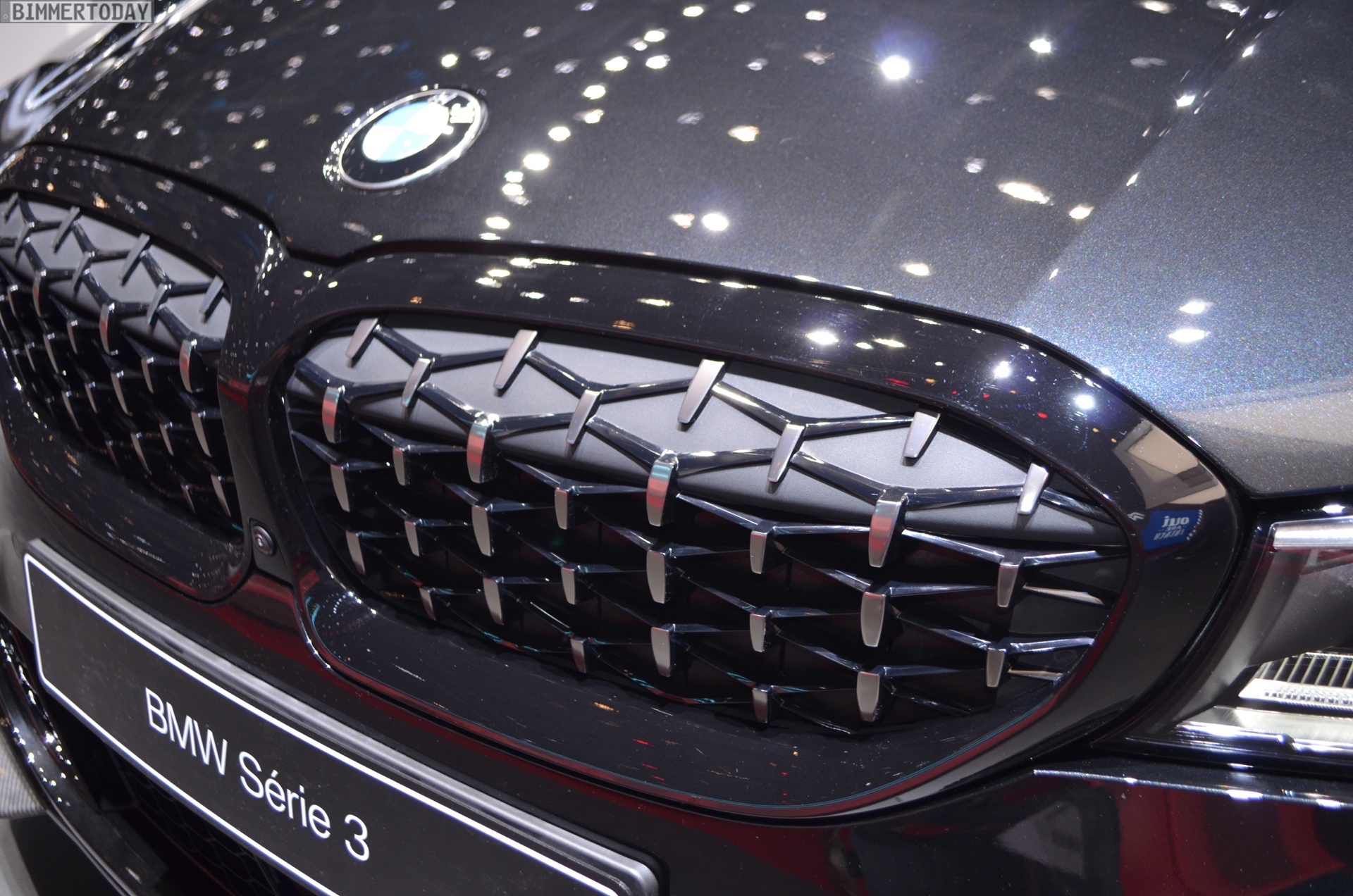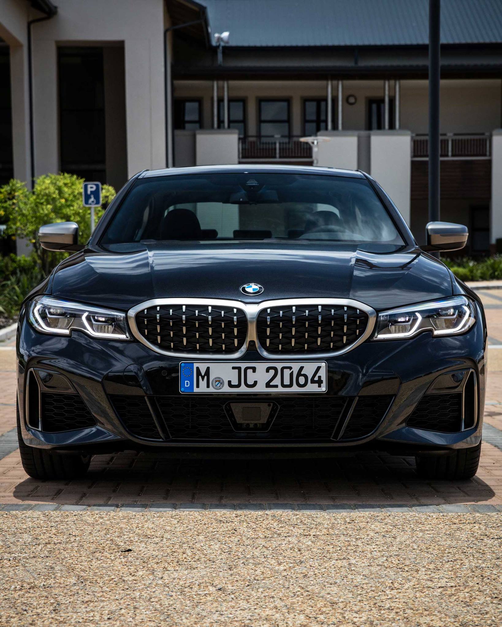 Neue Fotos aus dem Sehnsuchtsort M Town zeigen die neue Niere des ersten BMW M340i an einem Fahrzeug mit schwarzer Lackierung. Die Design-Elemente in Cerium Grey heben sich dabei besonders stark vom Rest des Fahrzeugs ab und betonen die Niere, aber auch die Lufteinlässe in den äußeren Bereichen der Frontschürze und die Außenspiegel zusätzlich. Dass dem M340i auch ein Auftritt ganz in Schwarz steht, war auf dem Genfer Autosalon zu sehen.