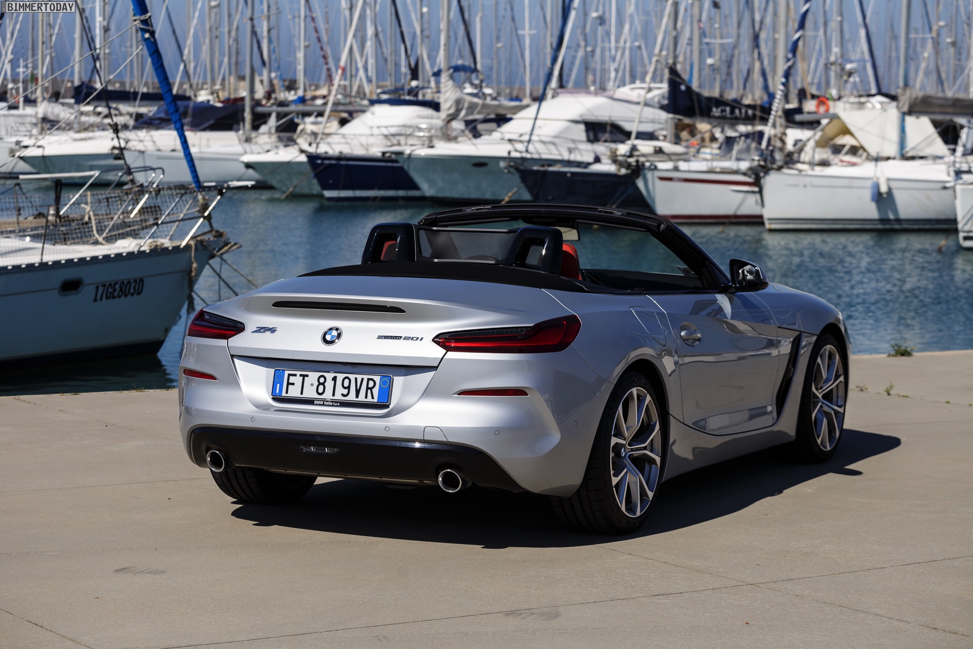 Mit einem DIN-Leergewicht von 1.405 Kilogramm ist der Z4 sDrive20i für heutige Verhältnisse ausgesprochen leicht. Im Vergleich zum deutlich stärkeren Sechszylinder-Topmodell Z4 M40i bringt das Einstiegsmodell 130 Kilogramm weniger auf die Waage. Dieser Gewichtsvorteil betrifft vor allem die Vorderachse, weshalb das Einlenken des Roadsters noch direkter als beim Topmodell erfolgen dürfte.