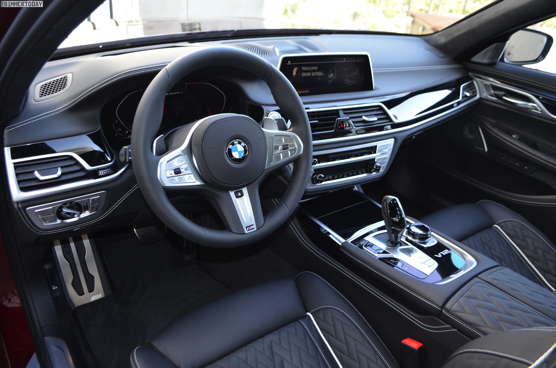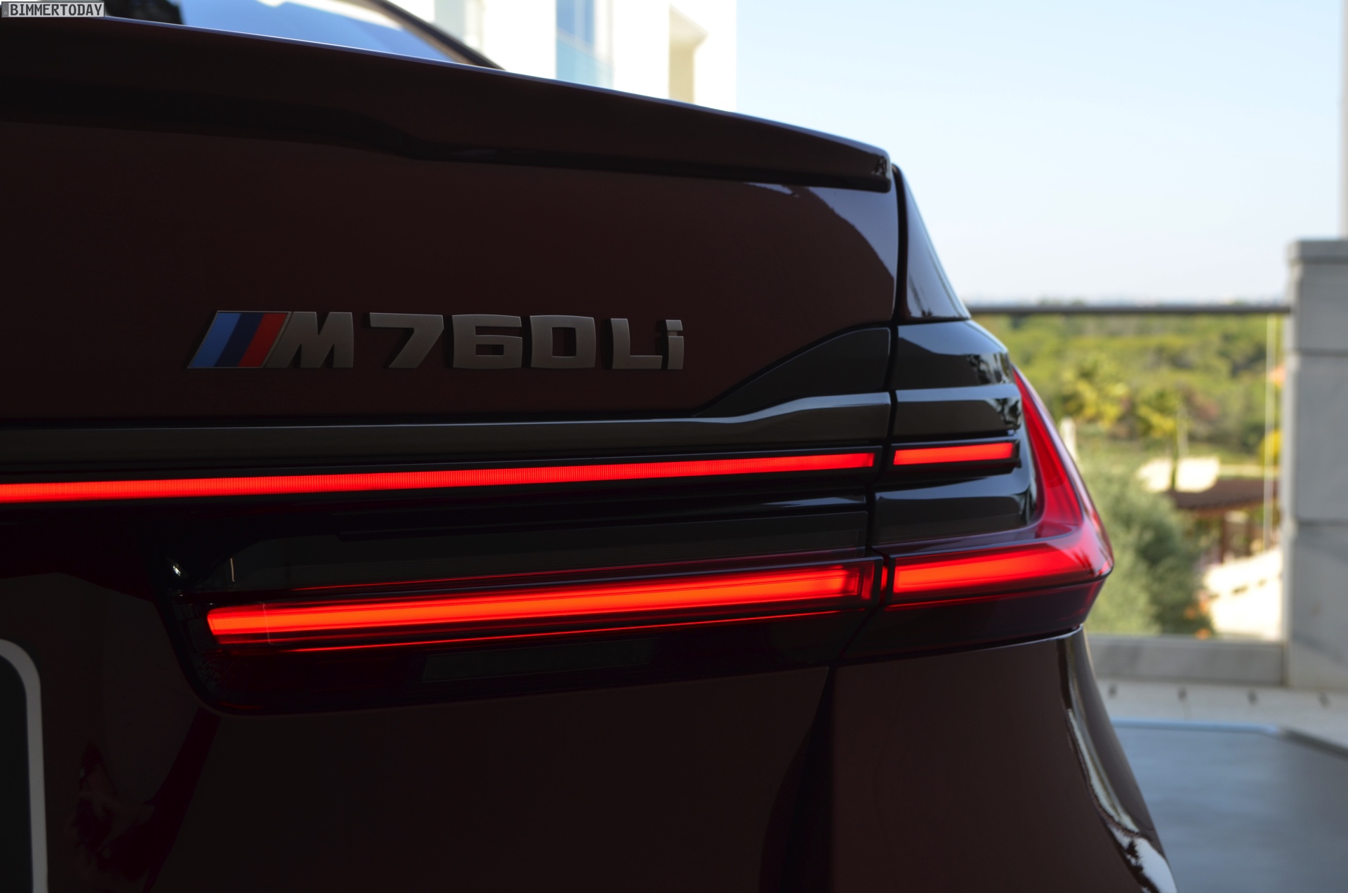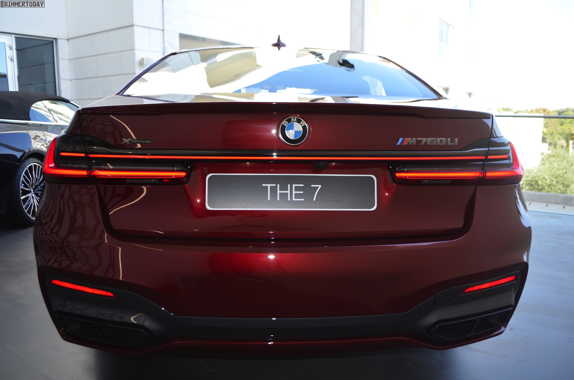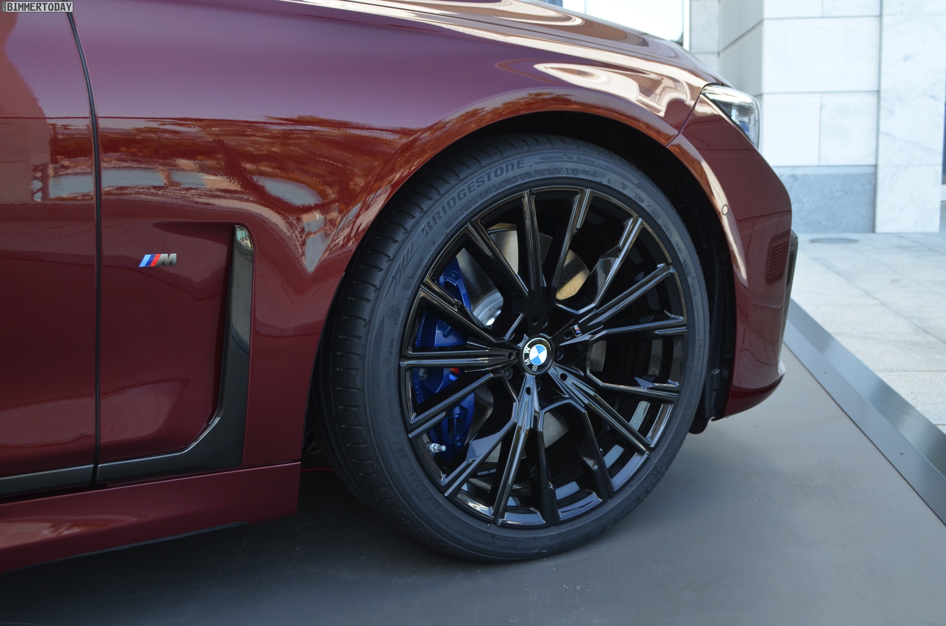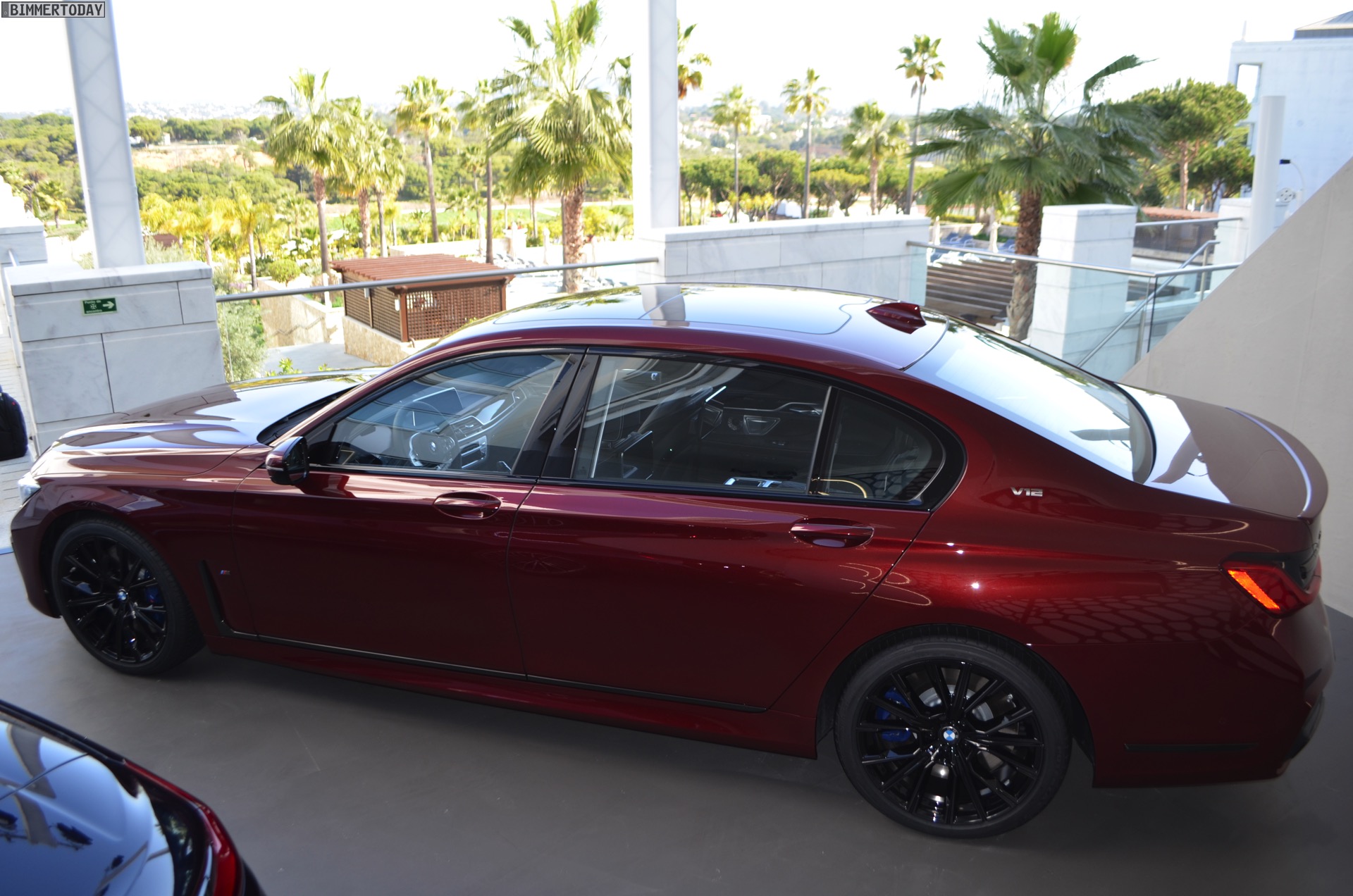Unsere aktuellen Fotos zeigen das Topmodell mit auffälliger Individual-Lackierung in Aventurin-Rot und der Shadow Line mit erweiterten Umfängen. Letztere sorgt unter anderem dafür, dass die mächtigen Nieren an der Front in Hochglanzschwarz ausgeführt sind, wodurch der Gesamteindruck erheblich sportlicher wird. Schwarze Felgen und weitere Details in der dunkelsten aller Farben runden das besondere Exterieur ab und machen auch Laien klar, dass hier kein “gewöhnlicher 7er” unterwegs ist.