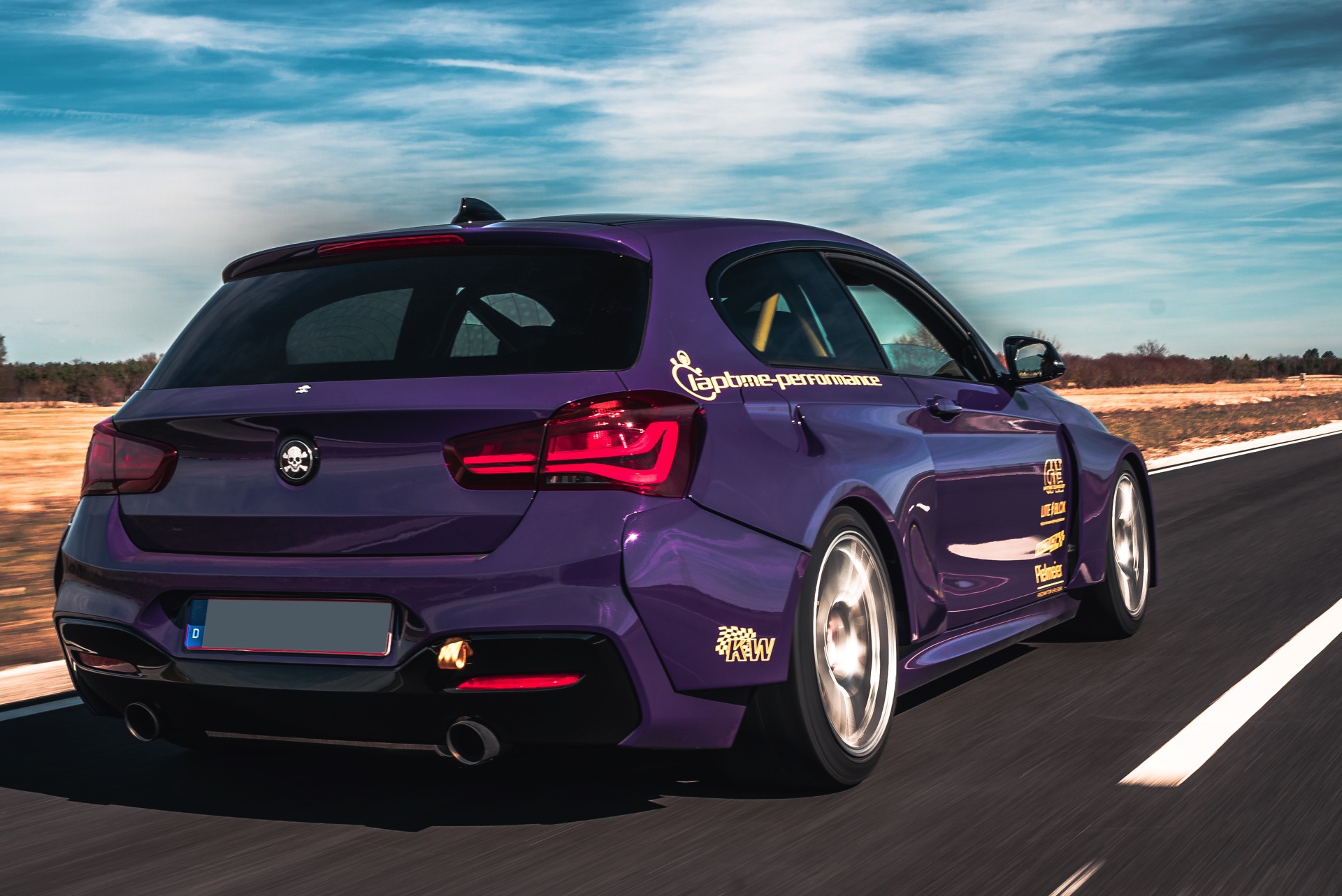 Damit den Kurven auch die Geraden mehr Spaß machen, hat Laptime Performance auch den Antrieb des BMW M140i überarbeitet: Verbesserte Kühlung, HJS Downpipe und ein Laptime Endschalldämpfer schaffen die Voraussetzungen für eine Leistungssteigerung von 340 auf 410 PS, aber verglichen mit den übrigen Maßnahmen fällt diese Änderung kaum noch ins Gewicht.