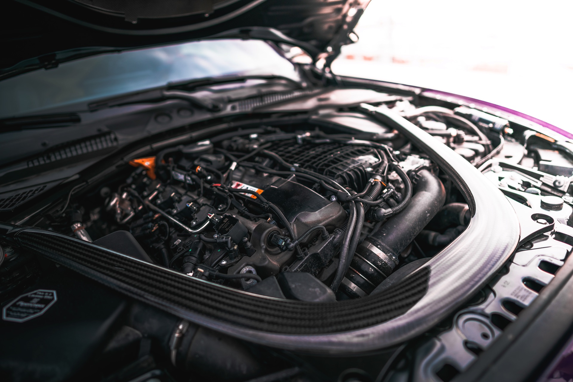 Unter den dicken Backen treffen ein speziell abgestimmtes KW Competition Gewindefahrwerk, eine Drexler-Lamellensperre an der Hinterachse und die Carbon-Domstrebe aus dem M4 auf Uniball-Zugstreben und Querlenker an der Vorderachse sowie Uniball-Zugstreben, Spurstangen, Sturzlenker und Querlenker an der Hinterachse.