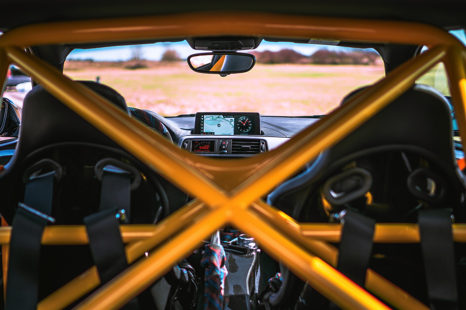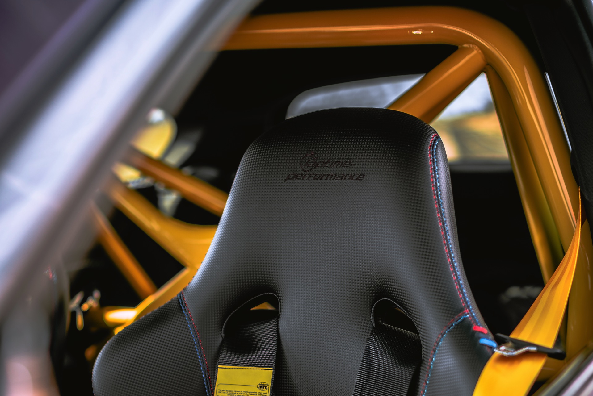 Für weniger Gewicht und noch mehr Motorsport-Atmosphäre wurde der Innenraum ausgeräumt und im Anschluss gezielt neu eingerichtet: Recaro Pole Position Schalensitze, Überrollbügel wie im M4 GTS, gelbe Vierpunktgurte von Schroth und diverse Carbon-Verkleidungen verhüllen lediglich das Nötigste. Sonderbezüge von Sitzen und Lenkrad greifen das Design des BMW M3 E30 Sport Evo auf und wecken bei Kennern nostalgische Gefühle.