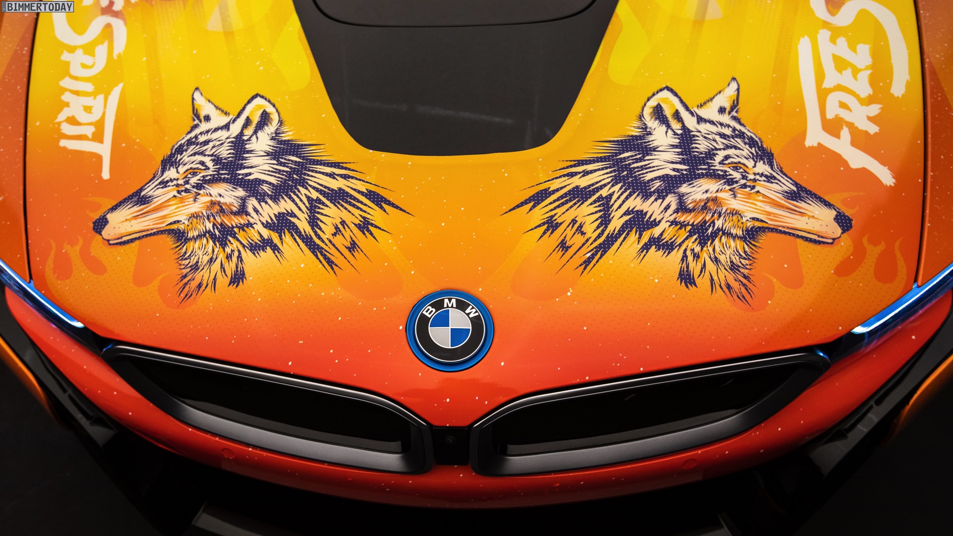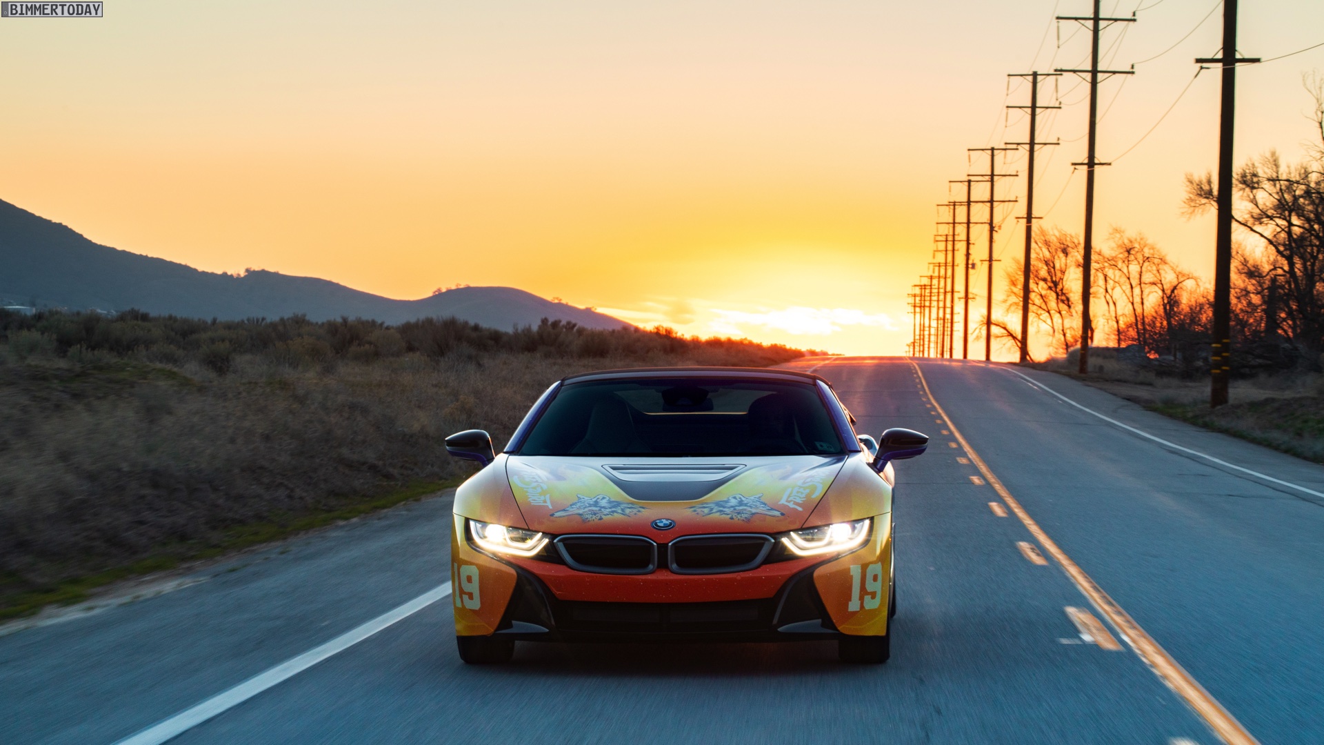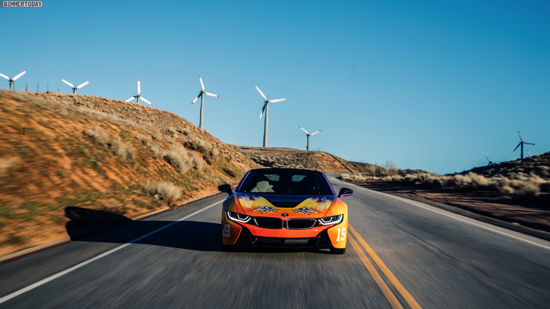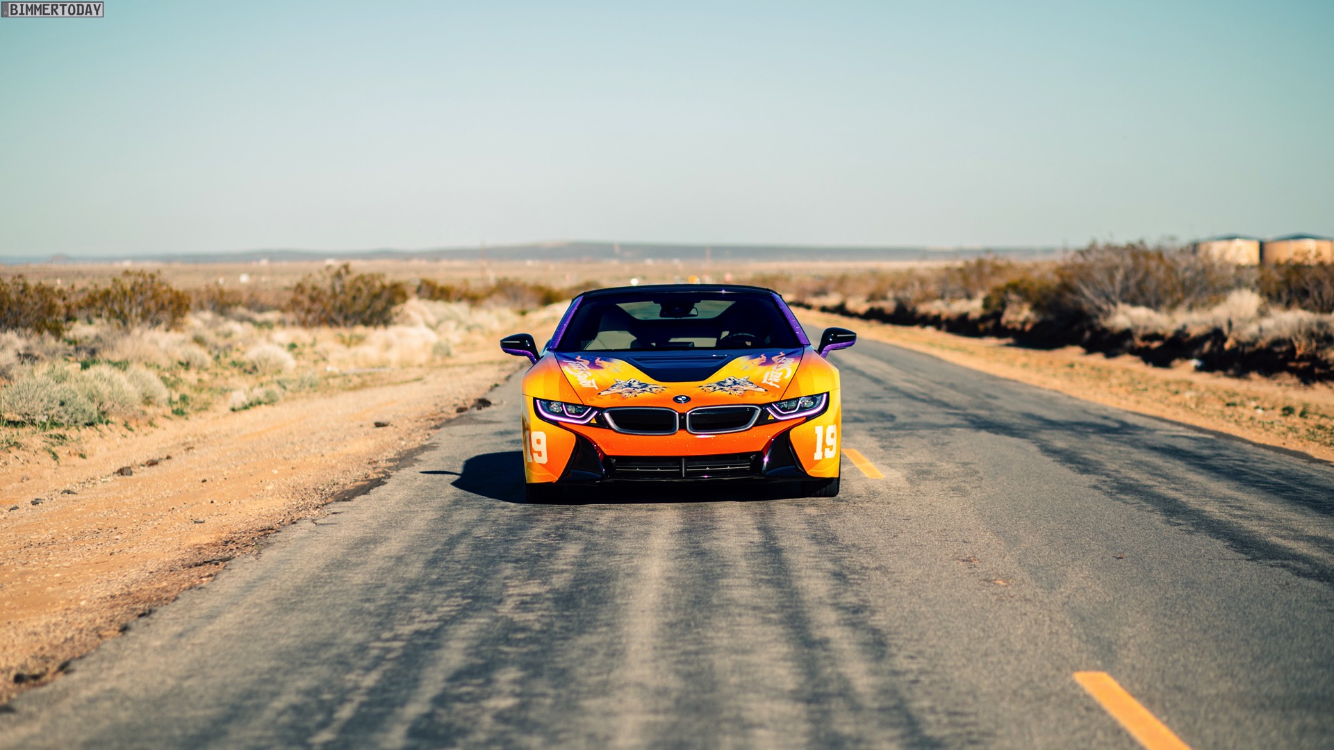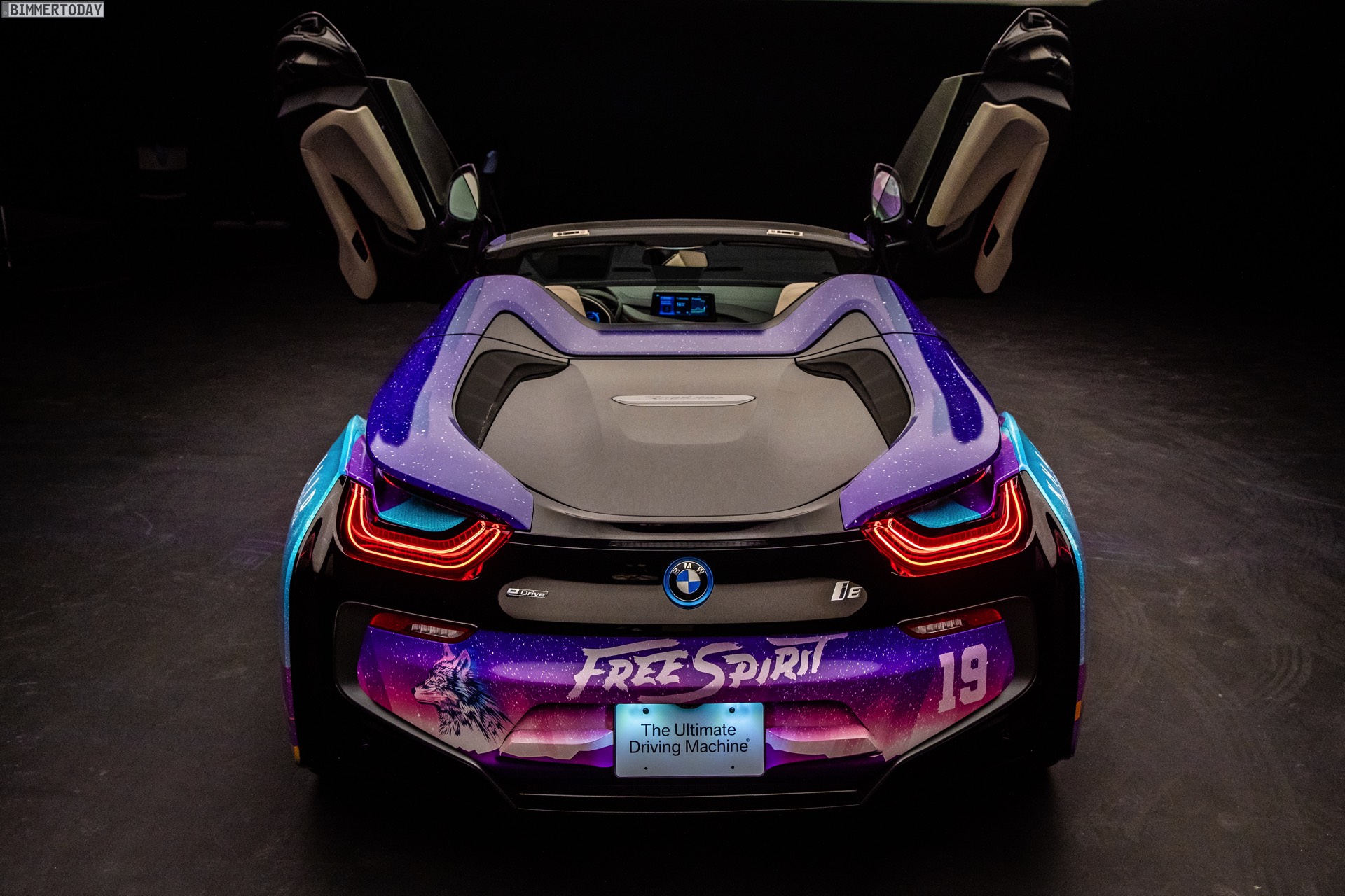 Fast wie ein offizielles BMW Art Car präsentiert sich der BMW i8 Roadster für Coachella Valley Music and Arts Festival 2019. Der offene Plug-in-Hybrid-Sportwagen trägt eine komplett von Soul-Sänger Khalid gestaltete und im wahrsten Sinne des Wortes knallbunte Außenhaut, die noch mehr Blicke auf den schon mit einfarbiger Lackierung äußerst vielbeachteten Roadster lenkt.