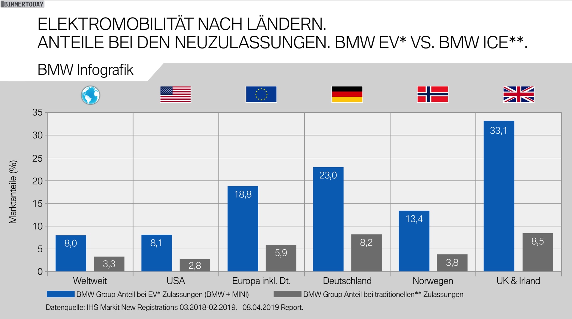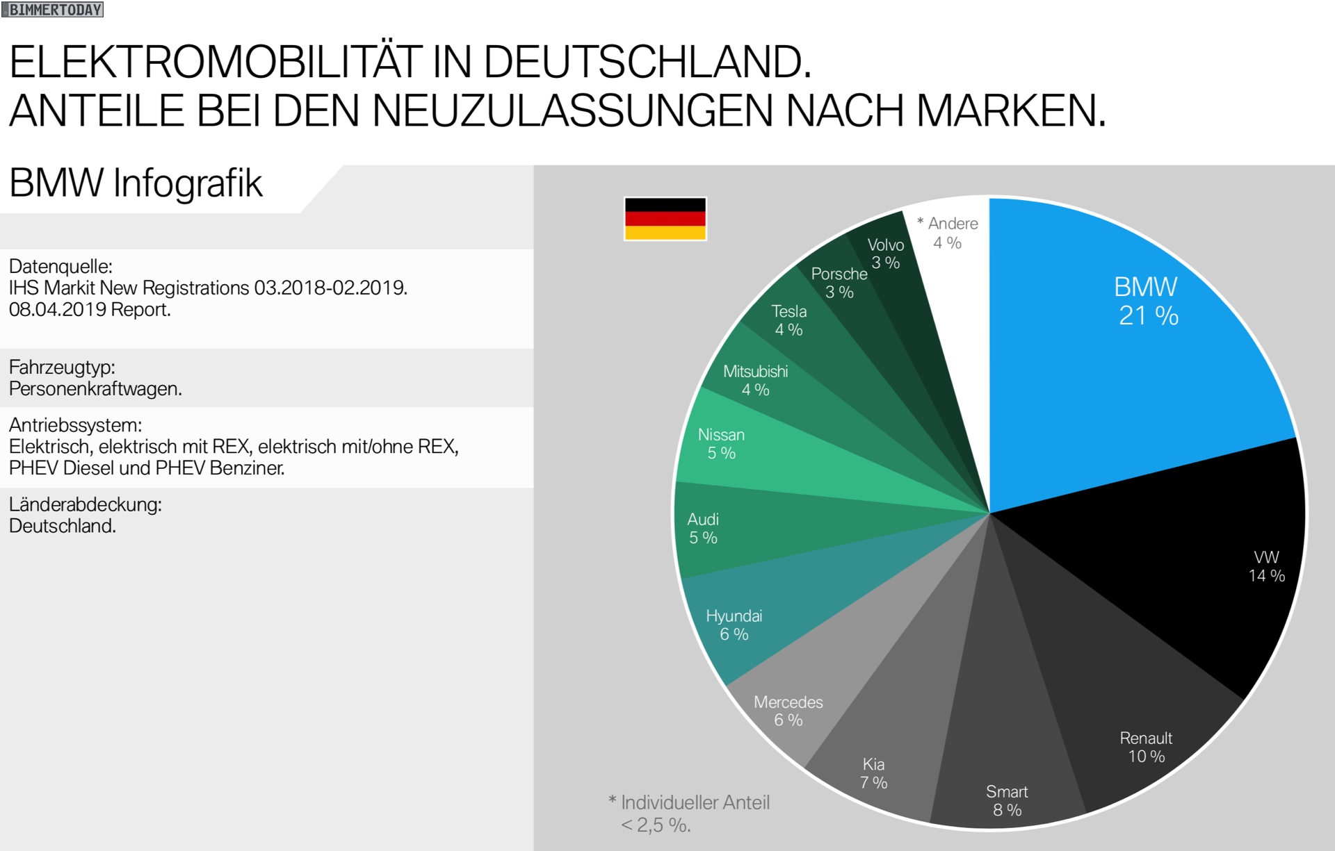 Noch beeindruckender als der interne Vergleich ist der Blick auf den Gesamtmarkt: Sowohl in Deutschland als auch in Europa war die BMW Group auch im März 2019 der wichtigste Anbieter von Elektromobilität. Die Münchner lassen dabei auch günstigere Volumen-Marken wie Volkswagen, Renault oder Kia deutlich hinter sich, die eigentlichen Wettbewerber aus dem Premium-Segment sind weit vom Elektro-Absatz der BMW Group entfernt. Auch weltweit betrachtet verkaufen lediglich Tesla und die chinesischen Hersteller BYD und Beijing Auto mehr elektrifizierte Fahrzeuge als BMW.