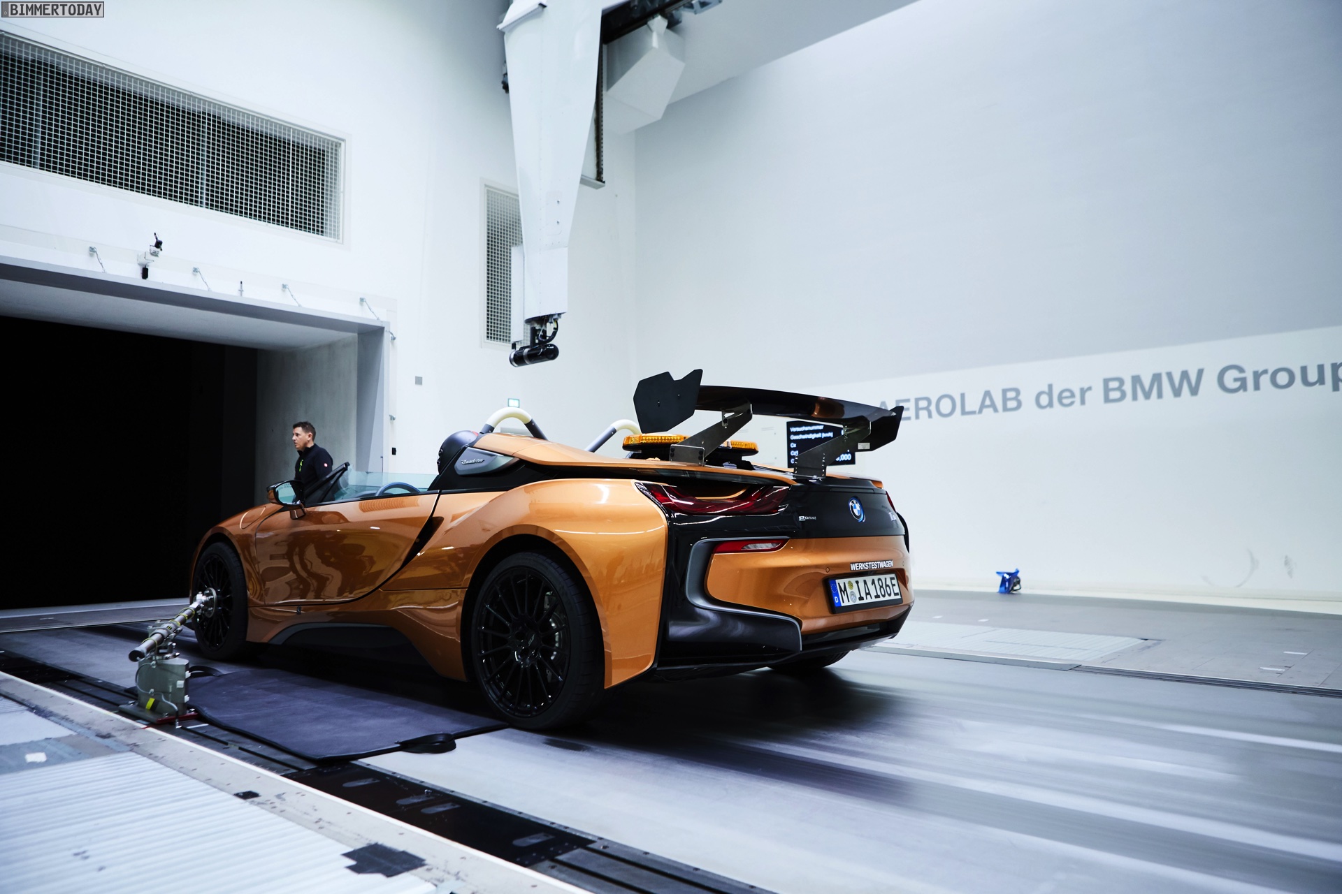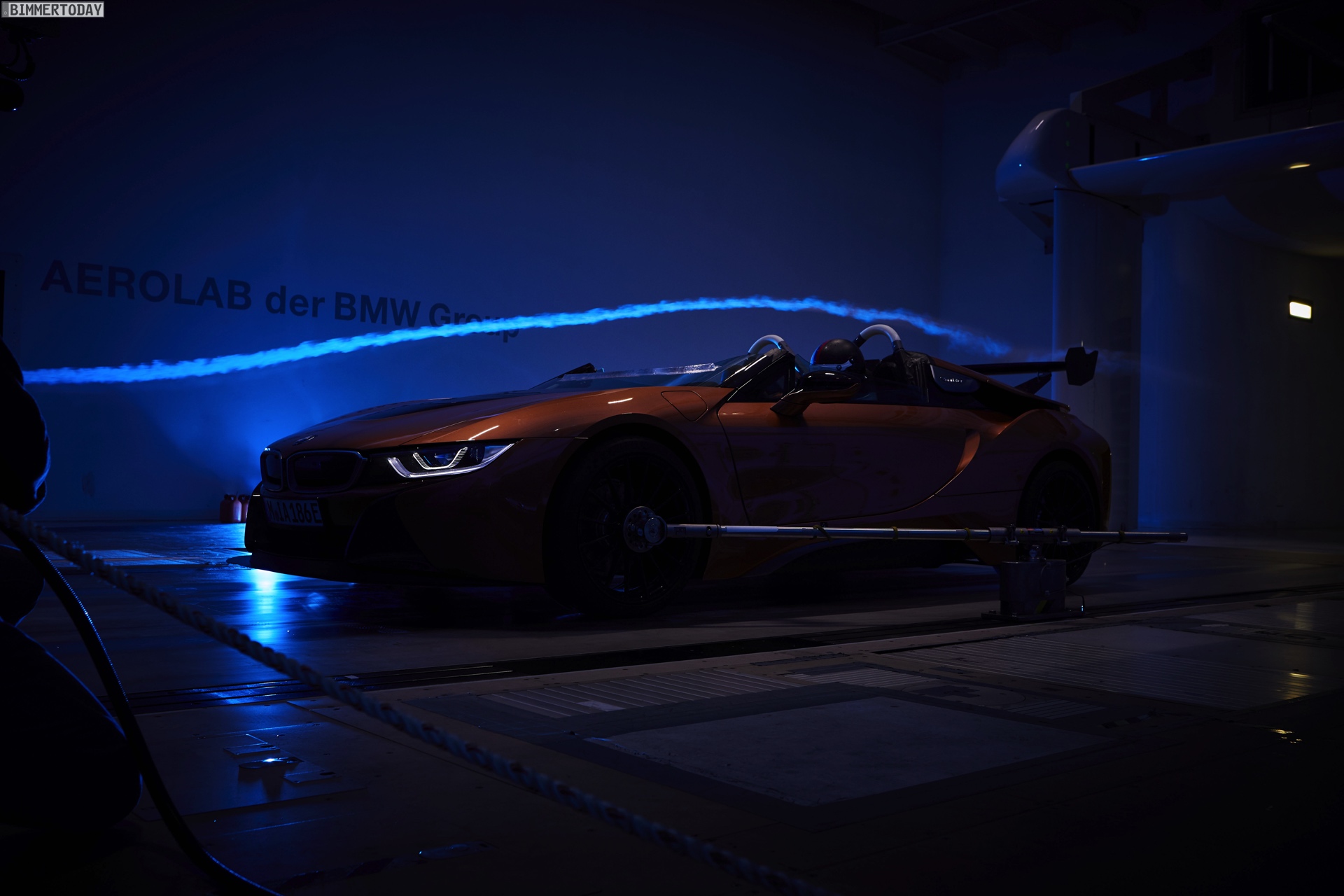 Für den Einsatz auf der Rennstrecke hat der BMW i8 Roadster nicht nur einen Überrollbügel, sondern auch modifizierte Aerodynamik-Elemente und eine BMW M Carbon-Keramik-Bremsanlage erhalten: