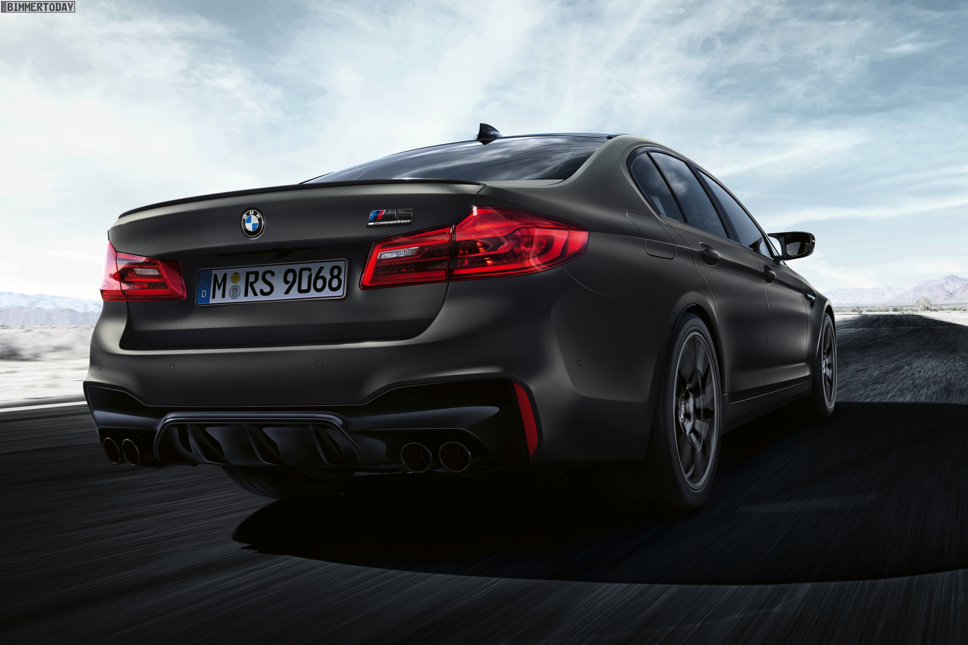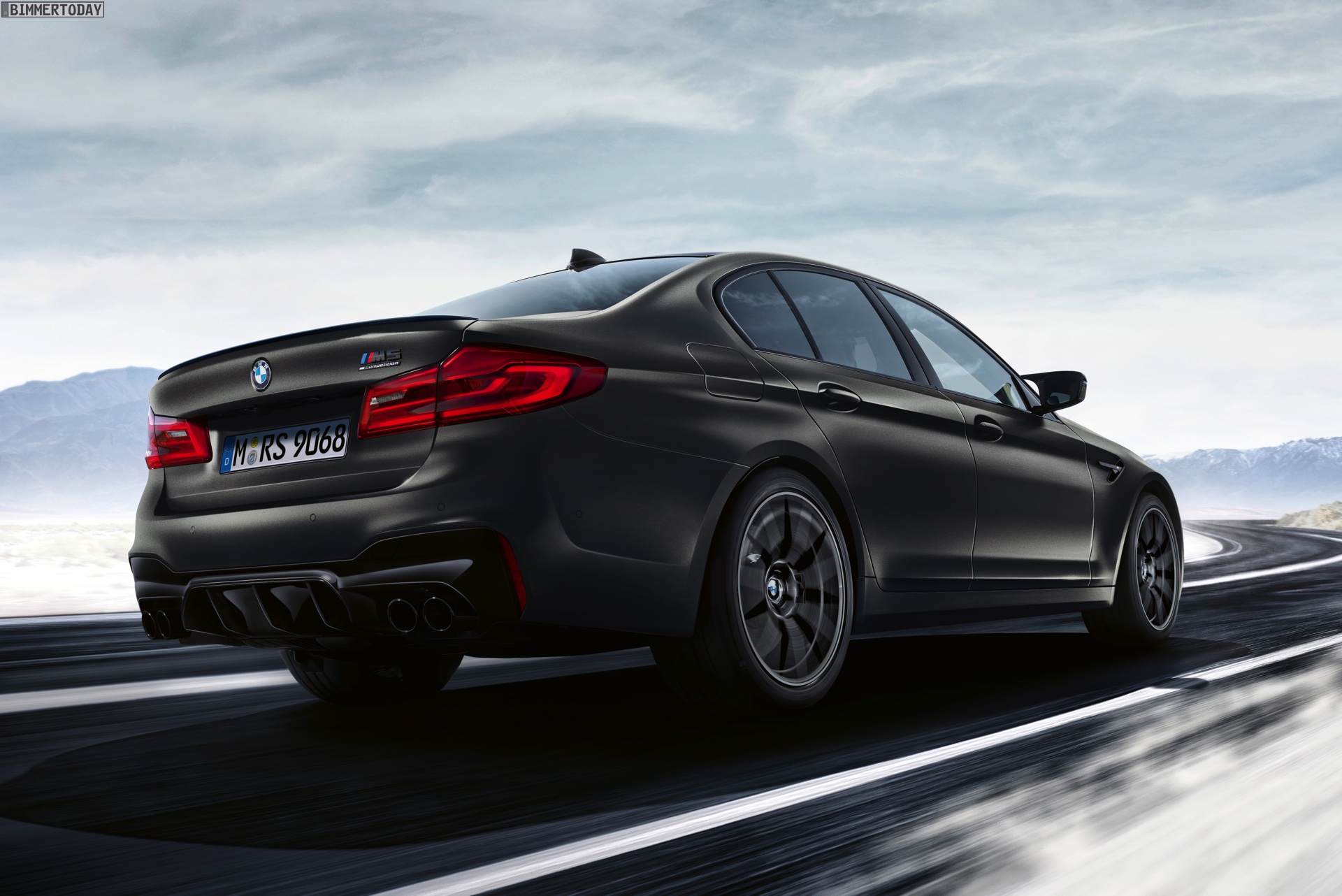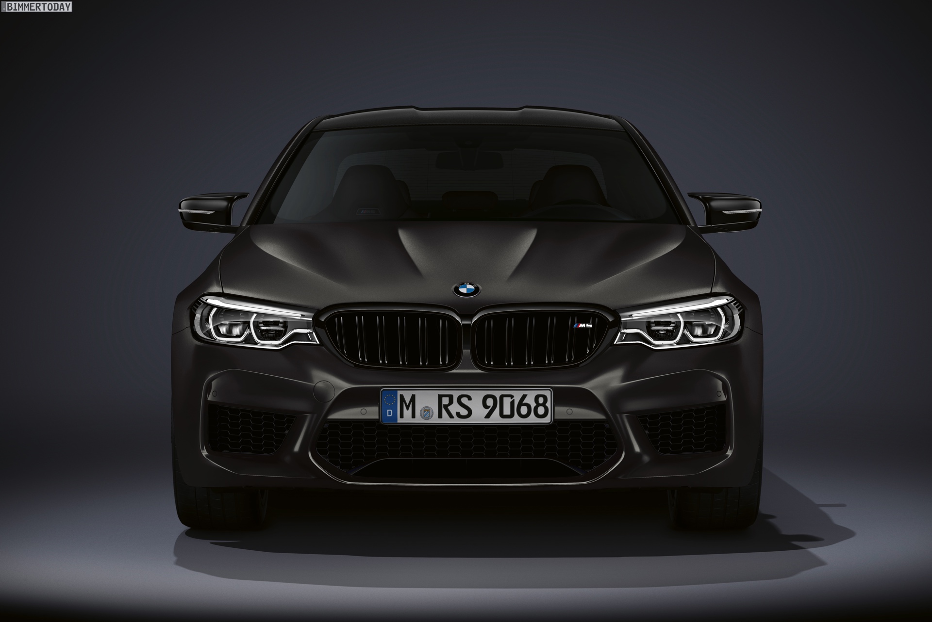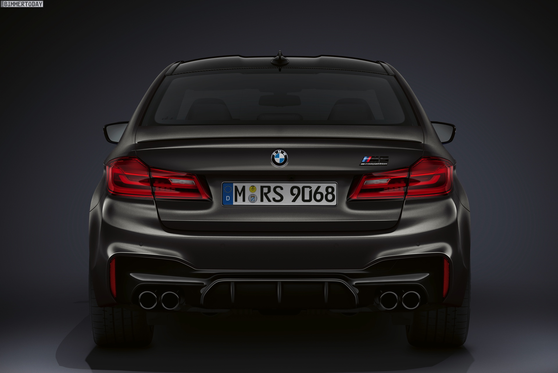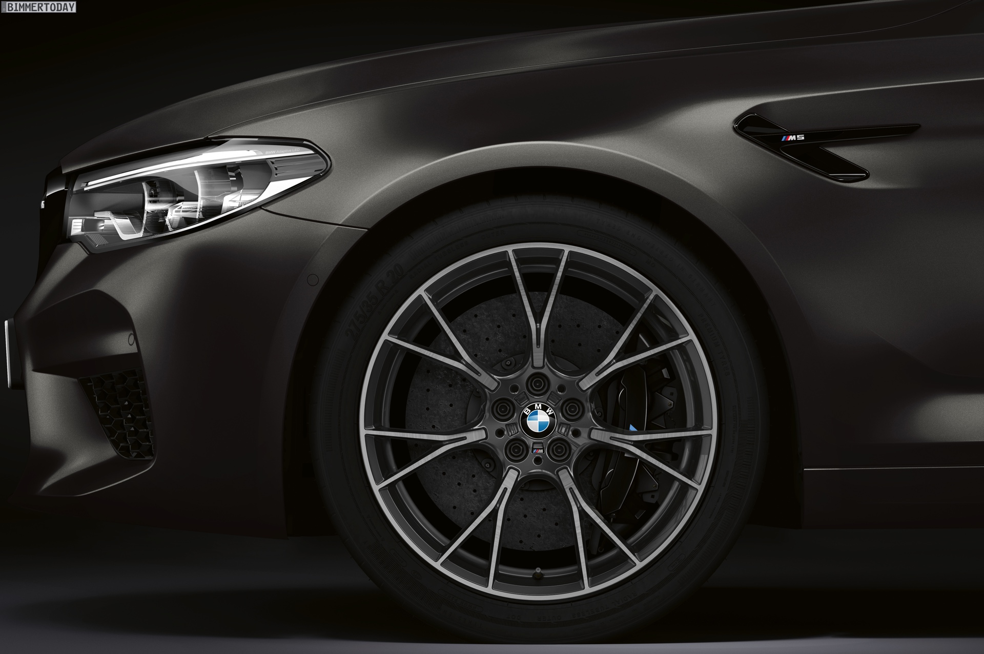 Schon von weitem fällt das Sondermodell durch seine Lackierung in Frozen Dark Grey ins Auge. Das matte Dunkelgrau hebt den M5 noch stärker aus der Masse heraus, als es die üblichen M-Merkmale ohnehin schon tun. Kombiniert wird die exklusive Lackierung mit neu gestalteten 20-Zoll-Felgen im Y-Speichen-Design, deren Oberfläche in Grafitgrau glänzt. Darunter sind die Bremssättel der serienmäßigen Bremse in Schwarz lackiert, mit Hilfe der optionalen M Carbon Keramik Bremse sind aber auch goldene Sättel erhältlich.