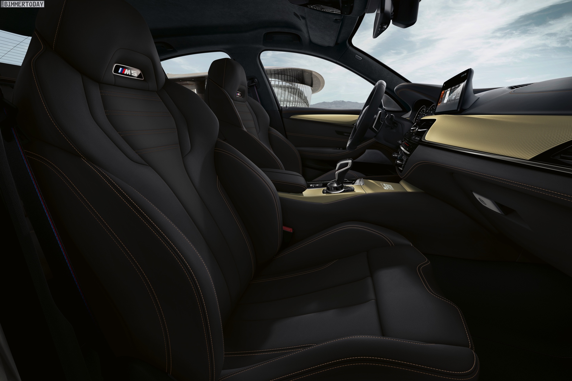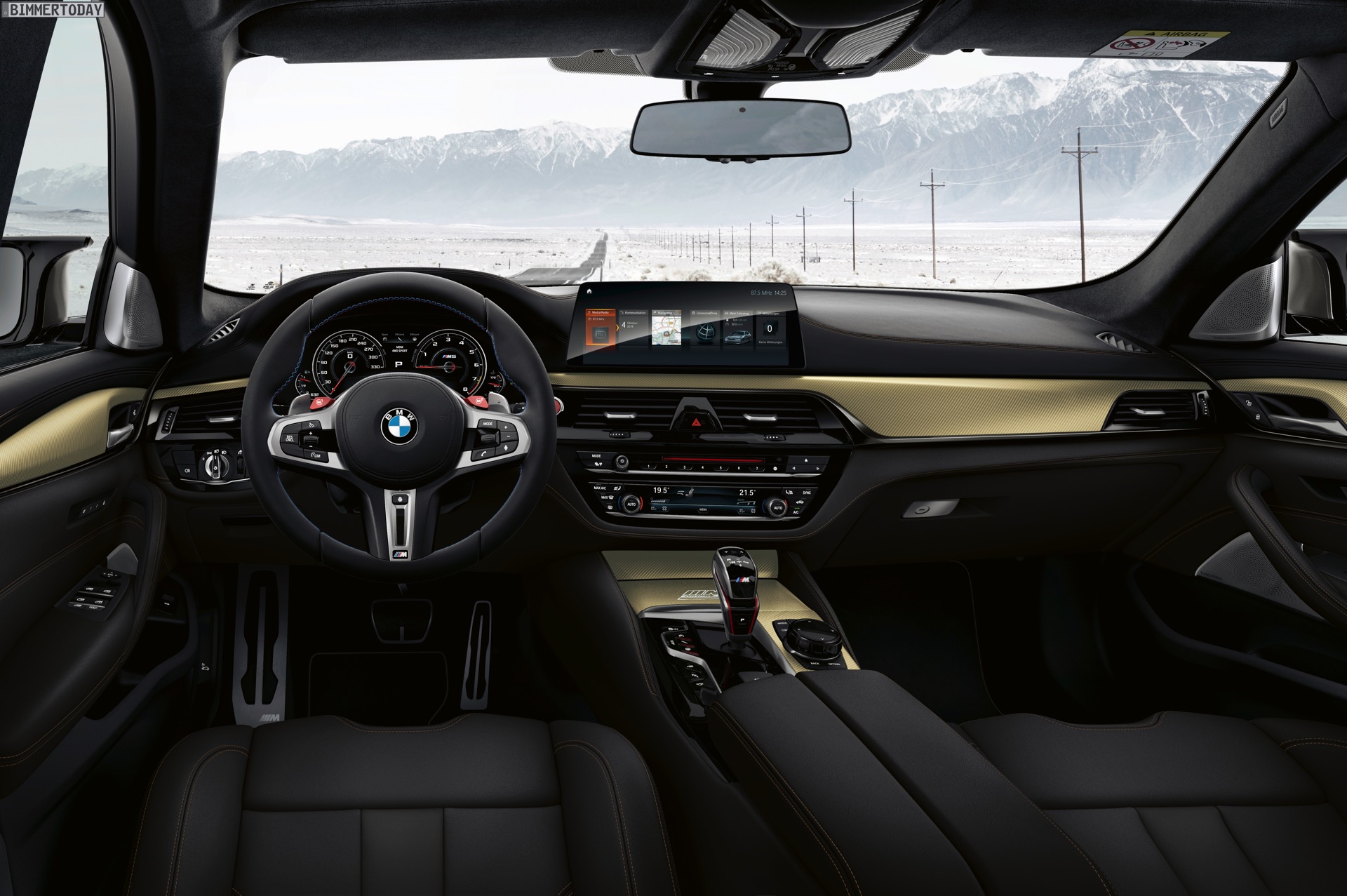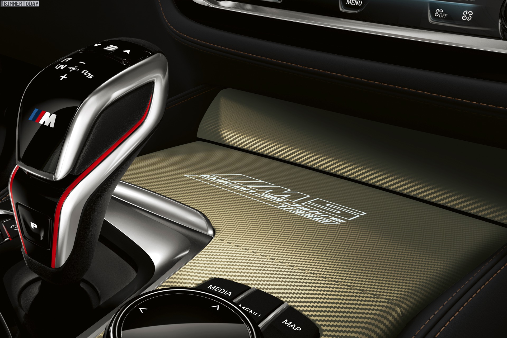 Noch spezieller präsentiert sich der Innenraum der BMW M5 Edition 35 Jahre: Exklusive und völlig neu entwickelte Interieurleisten in Aluminium Carbonstruktur Gold machen das Jubiläum auf den ersten Blick greifbar. Die schwarze Volllederausstattung Merino greift die goldene Farbe mit ihren Kontrastnähten auf. Vor dem Schalthebel weist eine Lasergravur mit dem Schriftzug “M5 Edition 35 Jahre 1/350” mit Nachdruck auf die Exklusivität des Fahrzeugs hin: Nur 350 Exemplare des Sondermodells werden gebaut, nur eine niedrige zweistellige Zahl soll in Deutschland bleiben.