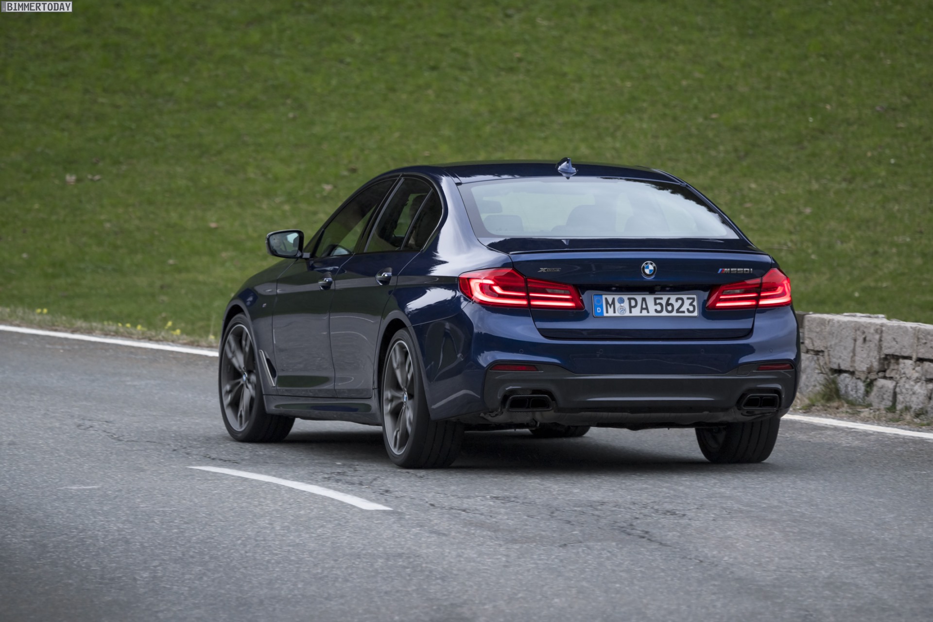 Der Respekt-Abstand zwischen BMW M550d und M550i wird durch den Motoren-Wechsel auf Seiten des Benziners mehr als verdoppelt: Lagen früher lediglich 62 PS zwischen den beiden M Performance 5ern sind es nun satte 130. Obwohl die beiden Modelle nur ein einziger Buchstabe am Heck trennt, ist der Unterschied gewaltig – was durchaus die Frage aufwirft, ob die bei beiden Modelle mit einer “50” hinter dem Baureihen-Kürzel einsortierte Leistungsstufe noch passend ist.