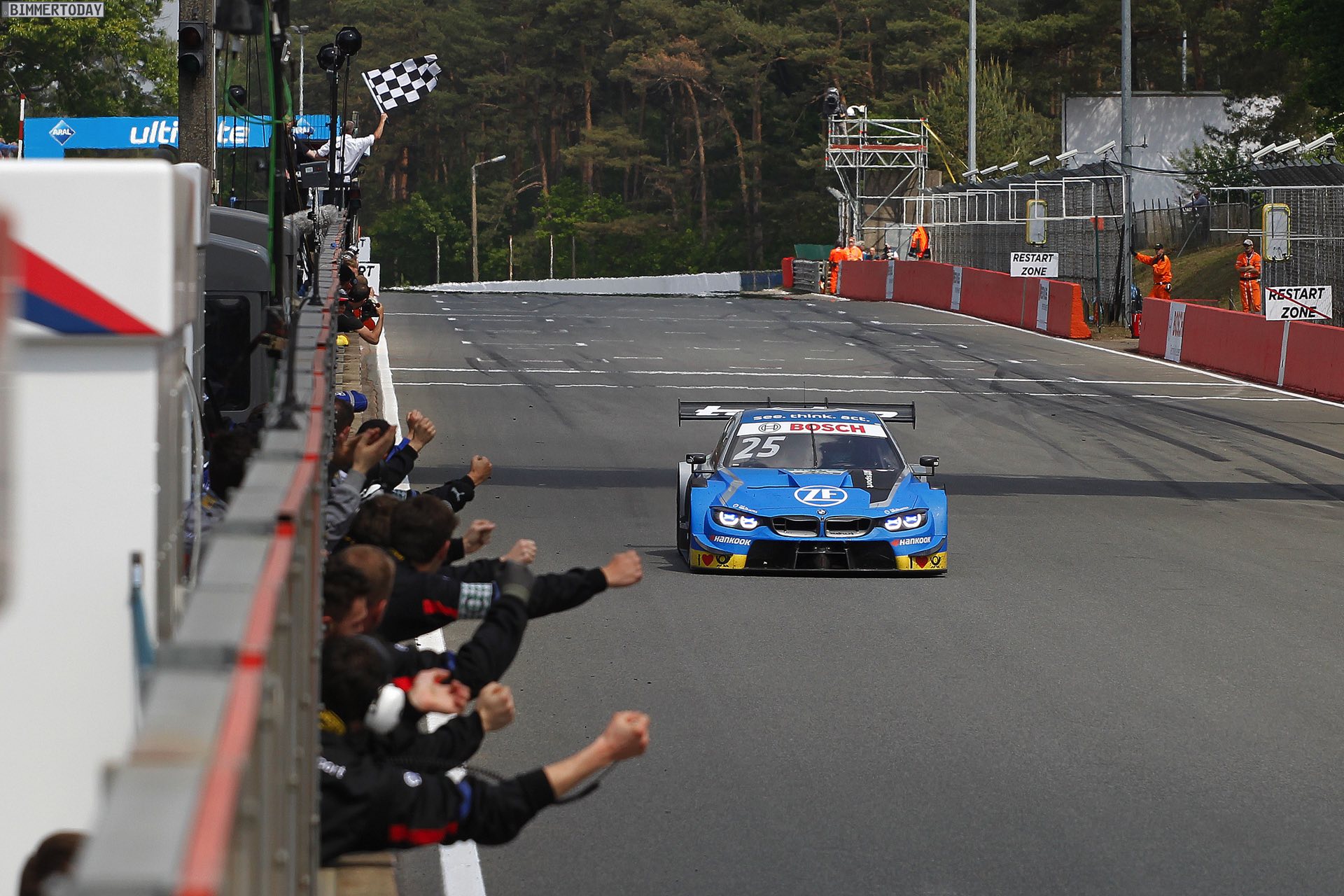 Am Sonntag legten die BMW-Piloten nach: Zunächst holte sich Sheldon van der Linde die Pole Position und trug sich damit als bisher jüngster Polesetter in die DTM-Geschichtsbücher ein, dann fuhr Philipp Eng als zweiter über die Ziellinie und übernahm damit die Führung der DTM-Gesamtwertung. Van der Linde lag bis kurz vor Schluss auf dem dritten Rang, fiel aber in der letzten Runde auf Position 5 zurück und verpasste sein erstes DTM-Podium.
