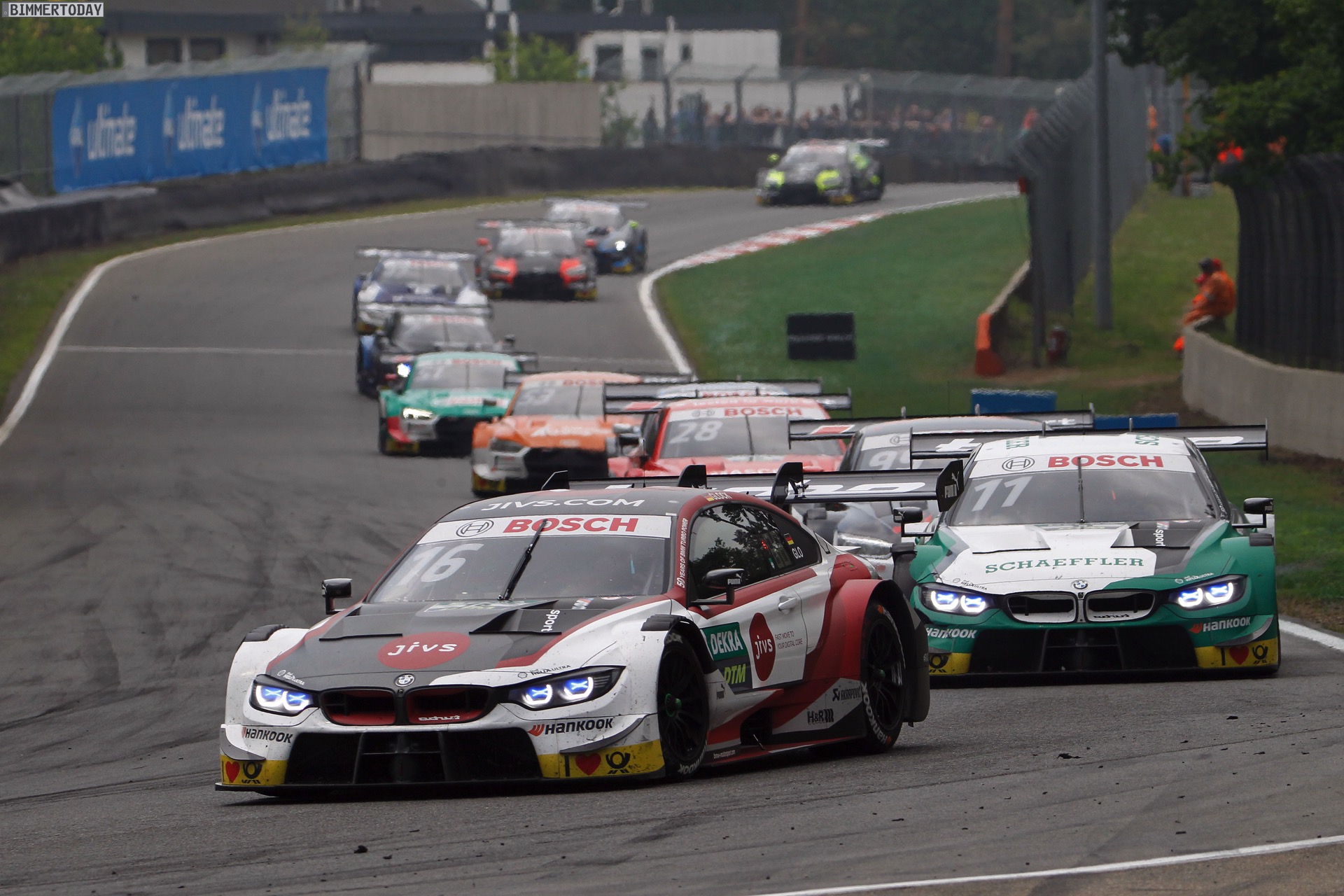 Marco Wittmann (#11 Schaeffler BMW M4 DTM, BMW Team RMG, Startplatz: 7., Rennergebnis: 13., Fahrerwertung: 3., 43 Pkt.): „Wir hatten wieder eine gute Pace, aber der Unfall mit Robin Frijns hat mir eine Durchfahrtstrafe eingebracht und mich das Rennen gekostet. Ich habe versucht, an ihm vorbeizukommen. Er hatte einen Quersteher in Kurve eins, und ist auf meine Fahrlinie gekommen. Ich war mit frischeren Reifen schneller und habe ihn dann getroffen und umgedreht. Die Situation war aus meiner Sicht kaum vermeidbar. Das war natürlich schade.“