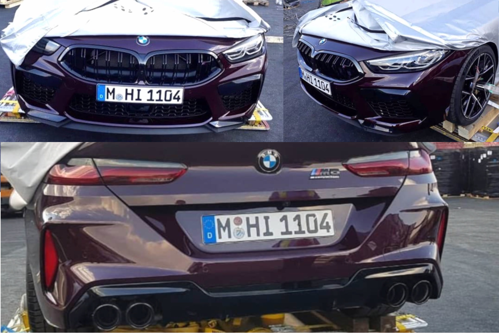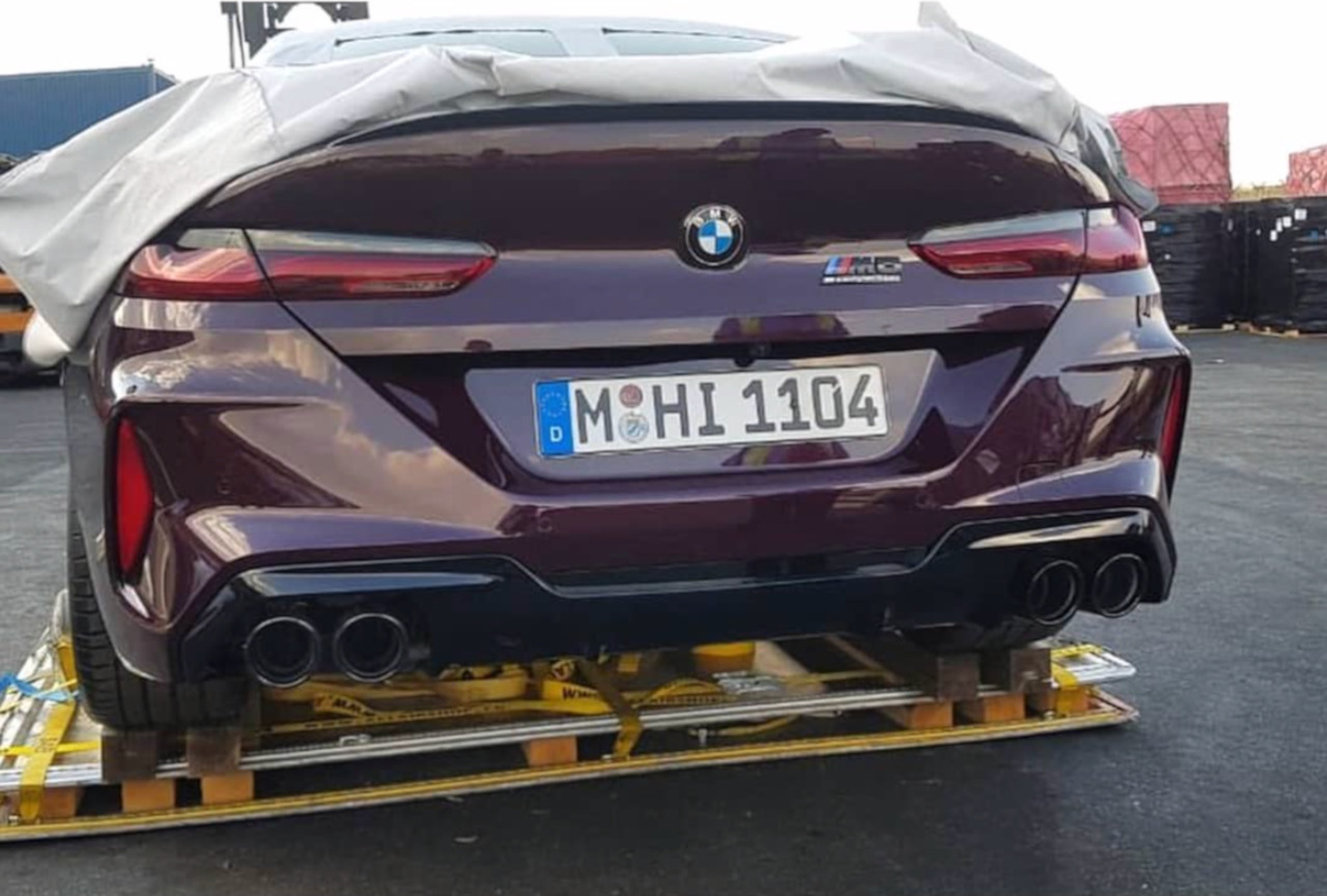 Den BMW M8 Competition ereilt ein weiterer Leak: Neue Fotos von Wilco Blok zeigen das sportliche Luxus-Coupé offenbar beim Verladen in Südafrika. Die eigentlich als Blickschutz gedachte Folie wurde dabei zur Seite geschoben, was uns einen unverhüllten Blick auf Front und Heck erlaubt – und vermutlich auch einen Hinweis darauf gibt, in welcher Farbe wir das BMW M8 Coupé auf den kommenden Presse- oder Katalog-Fotos sehen werden.