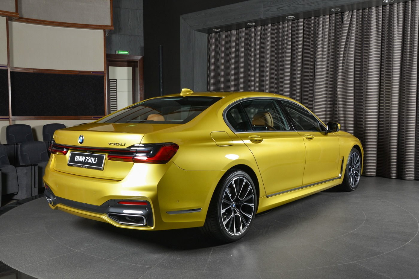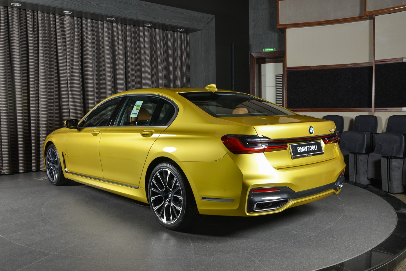 Wer nun allerdings dachte, dass die Kunden eines BMW 730Li im Vergleich zu anderen 7er-Kunden zumindest etwas genauer aufs Geld achten müssen und sich daher auch bei Sonderwünschen zurückhalten, sollte sich unbedingt das hier gezeigte Individual-Fahrzeug mit Lackierung in Austin Yellow ansehen: Wäre nicht der Schriftzug 730Li am Heck, würde hier wohl niemand einen Vierzylinder-7er vermuten.