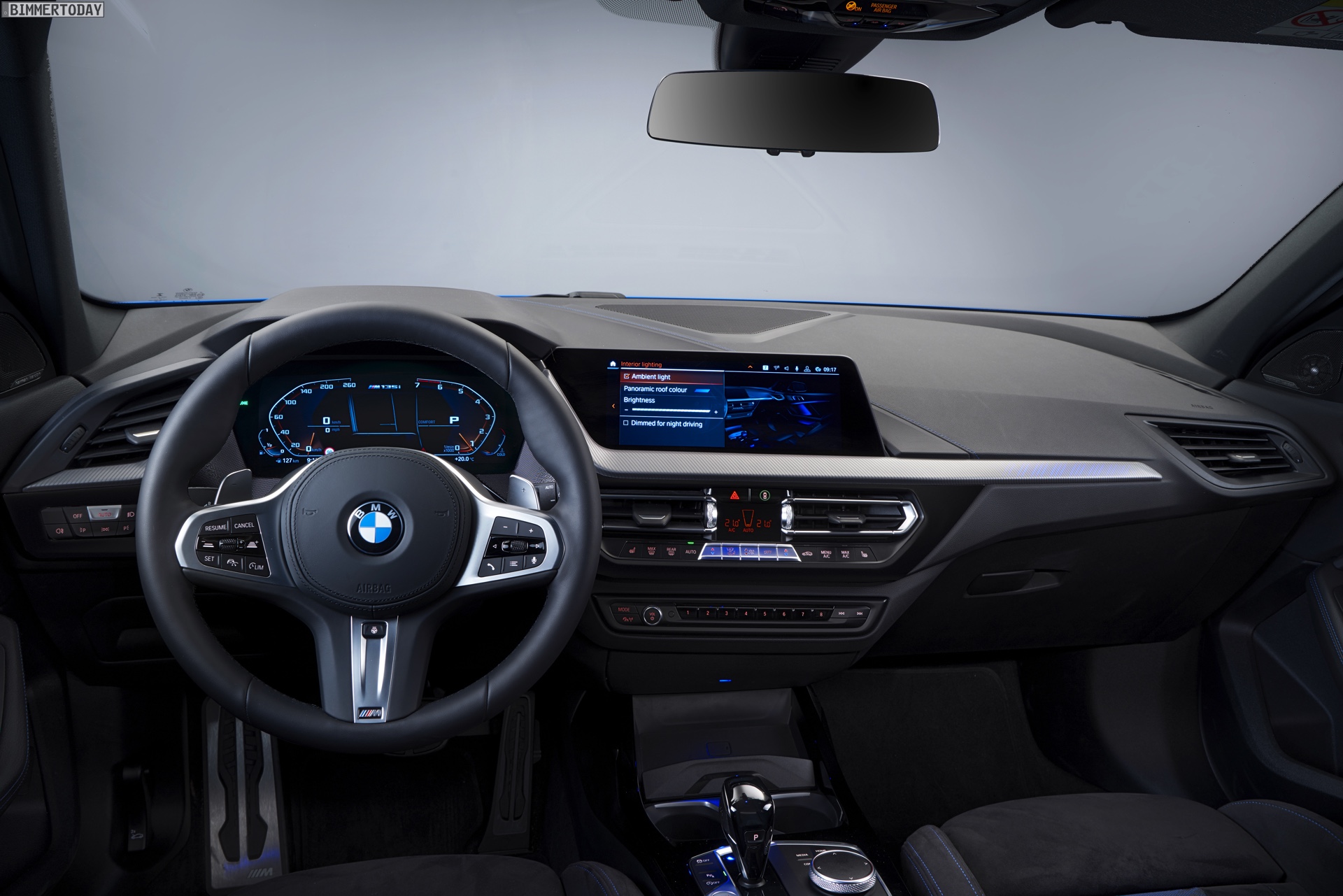 Die Fotos zeigen die dritte Generation der Kompaktklasse aus München aus anderen Blickwinkeln, was das eine oder andere Detail ganz anders wirken lässt. Unsere Innenraum-Fotos zeigen auch Details wie die durchleuchteten Interieurleisten, die sich dieses Feature bei Tageslicht nicht ansehen lassen und erst bei Dunkelheit für einen speziellen Look sorgen. Hierbei stehen sechs Farben und unterschiedliche Intensitäten zur Auswahl.