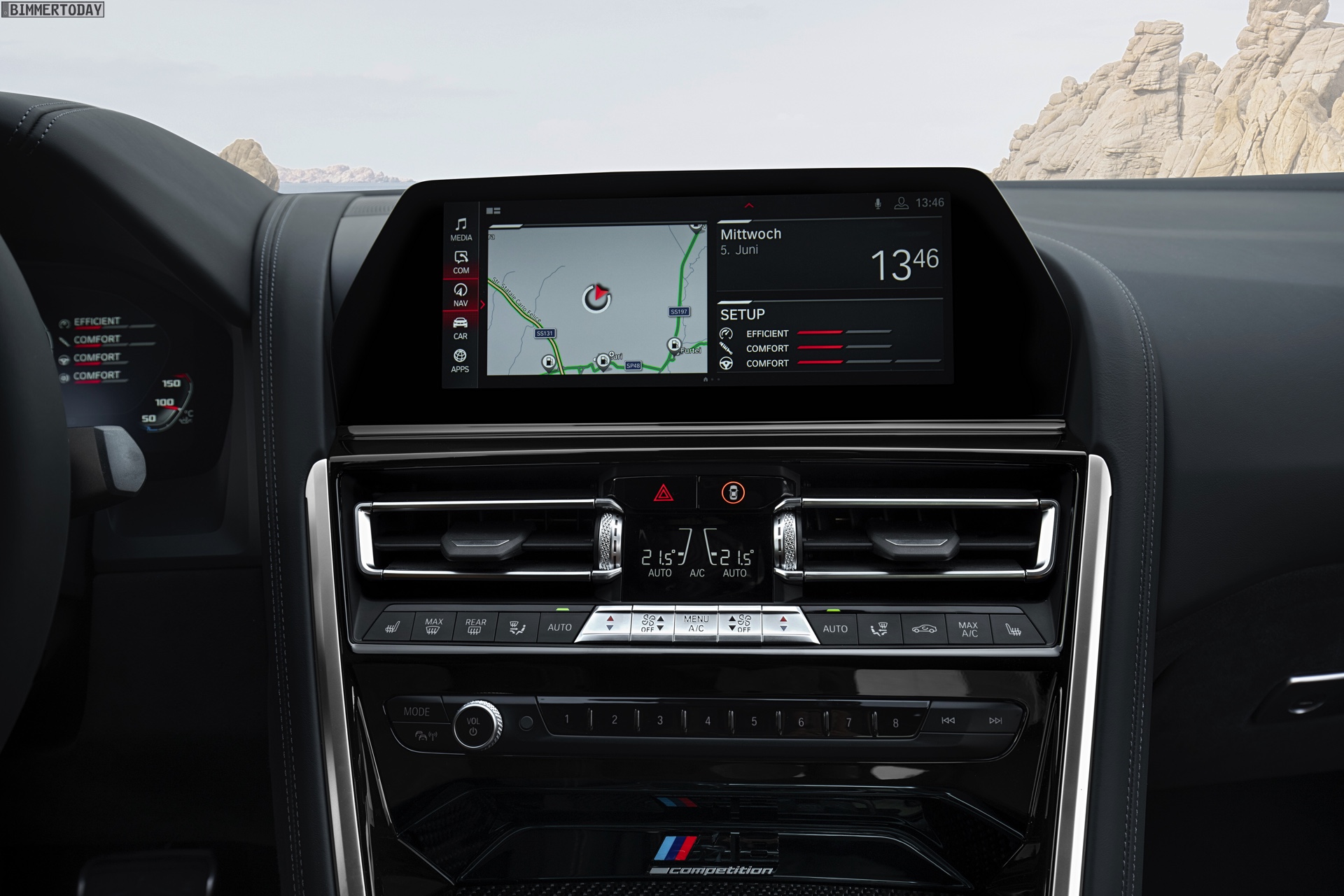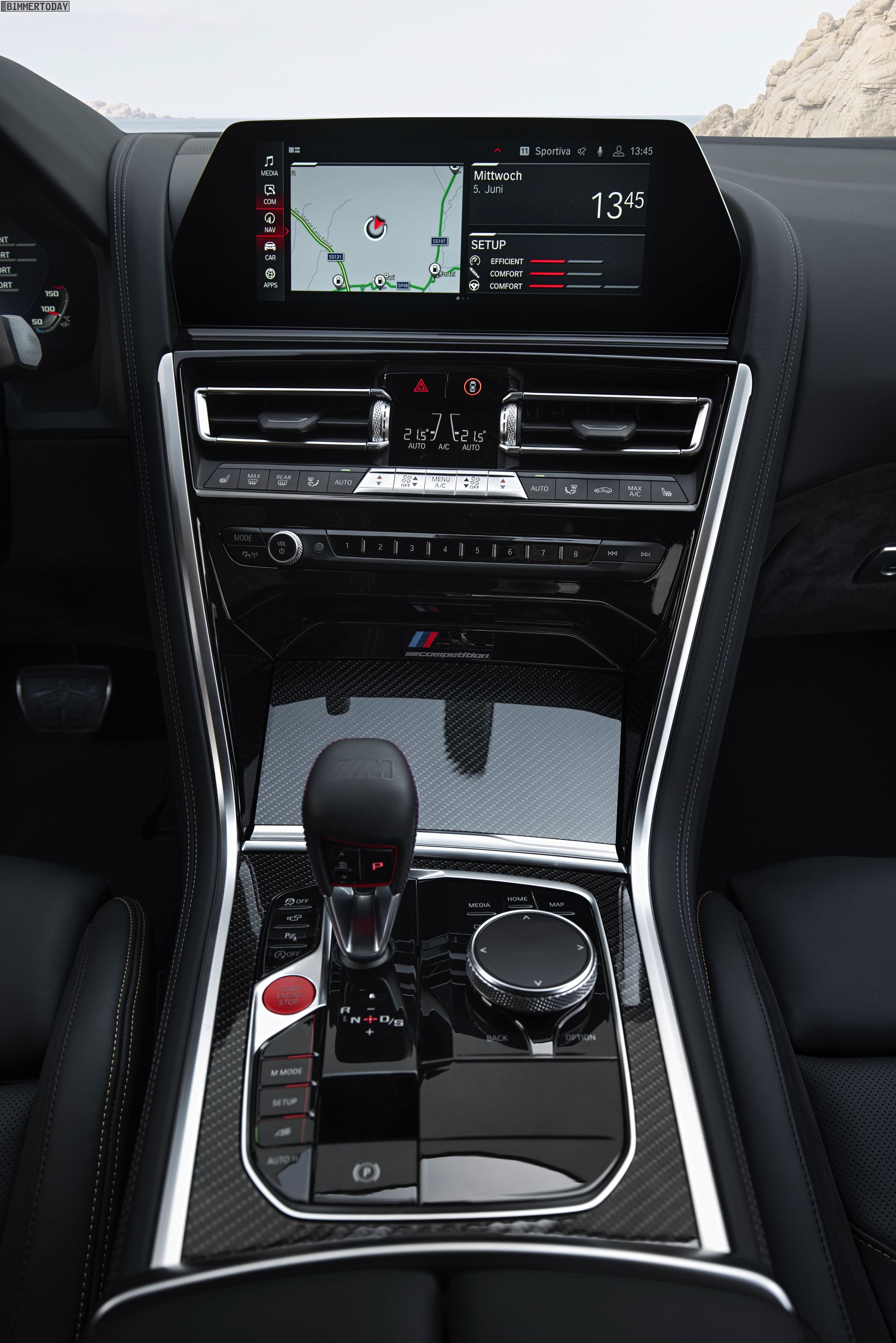Genau wie das Verhalten der Bremse lassen sich auch die übrigen Komponenten über ein neues Fahrzeug-Setup steuern. Direkt neben dem neu gestalteten Wählhebel für die Achtgang-Automatik finden sich dafür die neuen Schalter “M Mode” und “Setup”, darunter erlaubt ein weiterer Schalter mit Endrohr-Symbol die Anpassung der Lautstärke der Abgasanlage. Hinter dem “M Mode”-Schalter verbergen sich die beiden M8-Fahrmodi Road und Sport, im Fall des BMW M8 Competition kommt zusätzlich der neue Fahrmodus Track hinzu. Durch Aktivierung eines sportlicheren Modus werden Anzeige-Umfänge und Fahrerassistenz-Funktionen schrittweise reduziert, um die Aufmerksamkeit auf Wunsch voll auf das Fahrerlebnis zu konzentrieren.