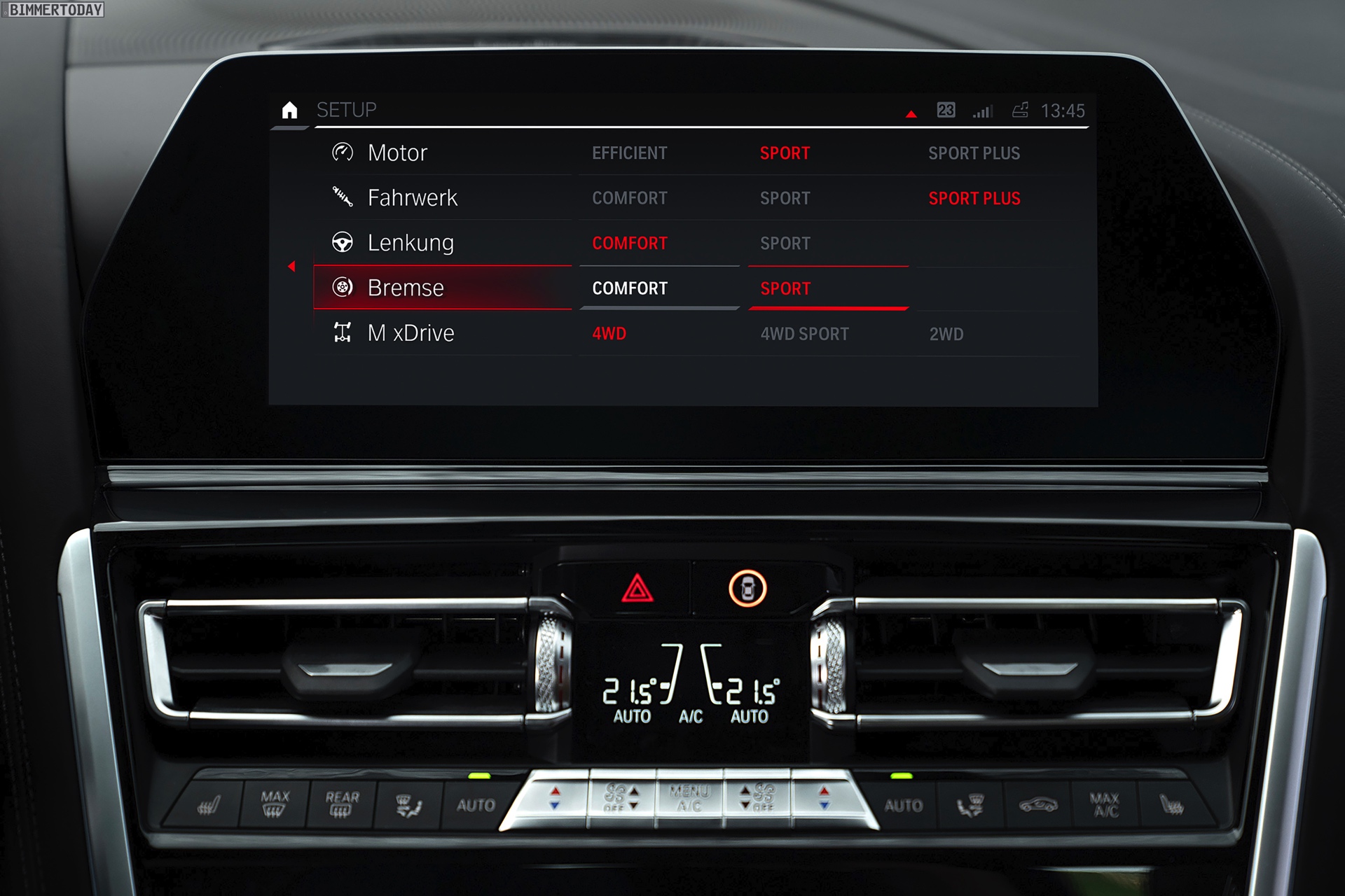 Über das Setup-Menü kann der Fahrer die Charakteristik von Motor, Fahrwerk, Lenkung, Bremse und M xDrive konfigurieren, wobei jeweils zwischen zwei und drei Modi zur Wahl stehen. Zwei individuelle Setups können wie gewohnt auf den roten Tasten M1 und M2 direkt am Lenkrad hinterlegt werden, um nach einmaliger Konfiguration innerhalb von Sekunden zwischen den Setups wechseln zu können.