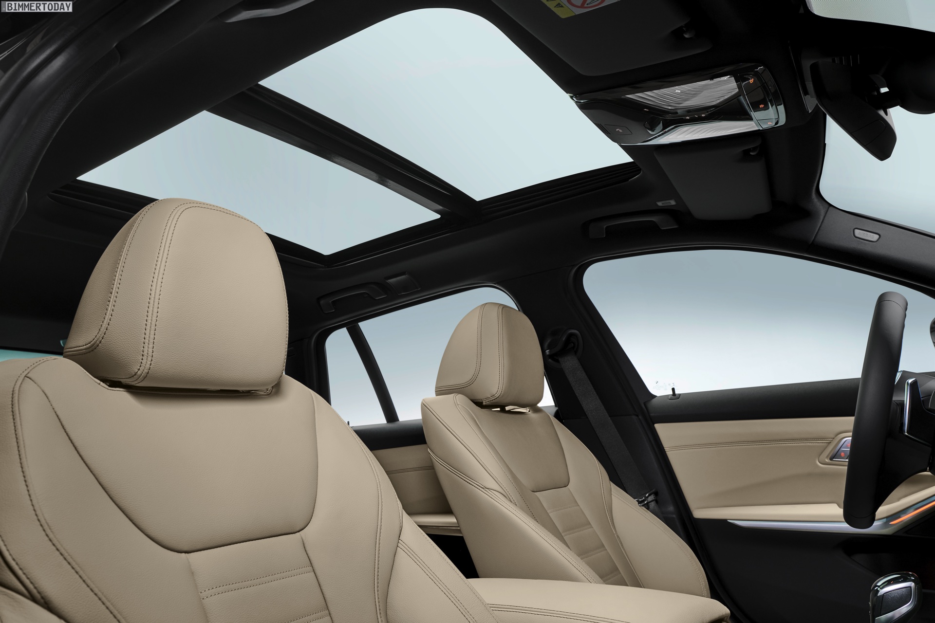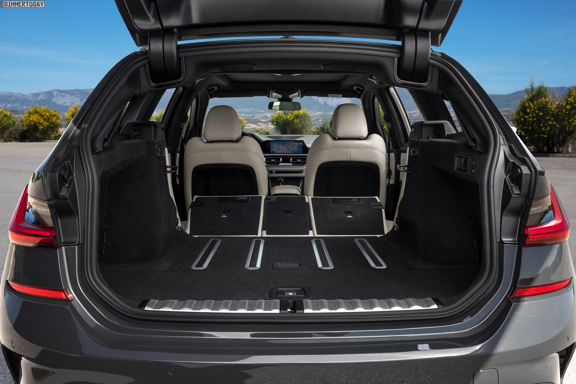 Während sich Infotainment, Materialien und Fahrdynamik praktisch nicht von der Limousine unterscheiden sollen, sieht es ab der B-Säule anders aus: Unter der verlängerten Dachlinie stecken mehr Kopffreiheit für Fond-Passagiere und vor allem ein deutlich vielseitiger nutzbarer Kofferraum, der ein Volumen von 500 bis 1.510 Liter bietet. Beide Werte liegen nur knapp über dem Niveau des Vorgängers F31, der 495 bis 1.500 Liter Stauraum bietet. Noch luftiger wirkt das Interieur, wenn das optionale Panorama-Glasdach mit einer Fläche von 0,8 Quadratmetern verbaut wird.
