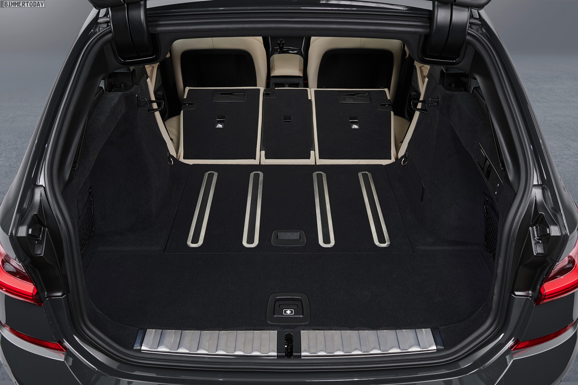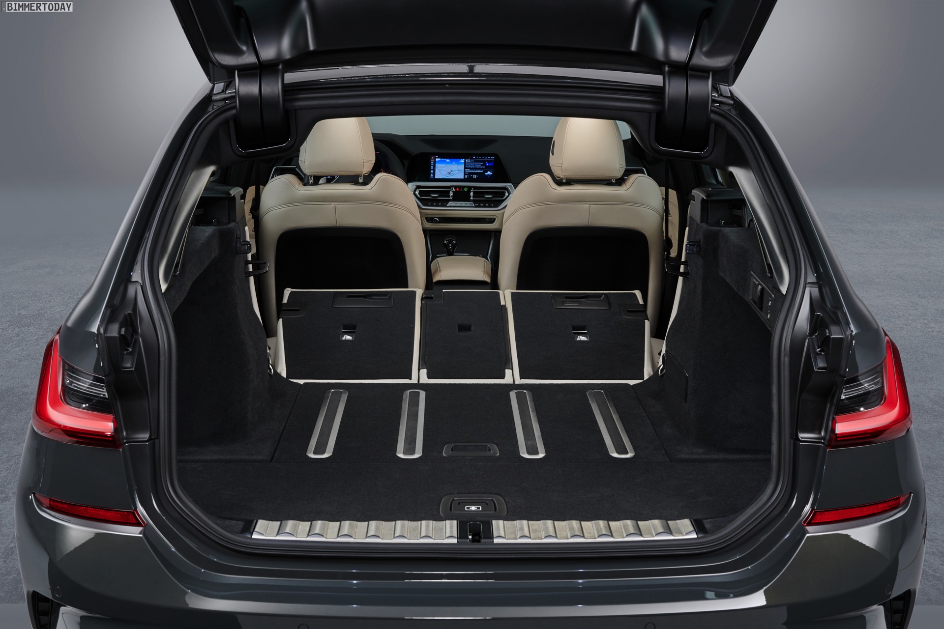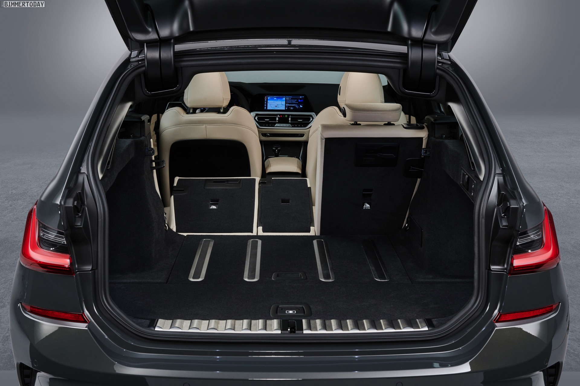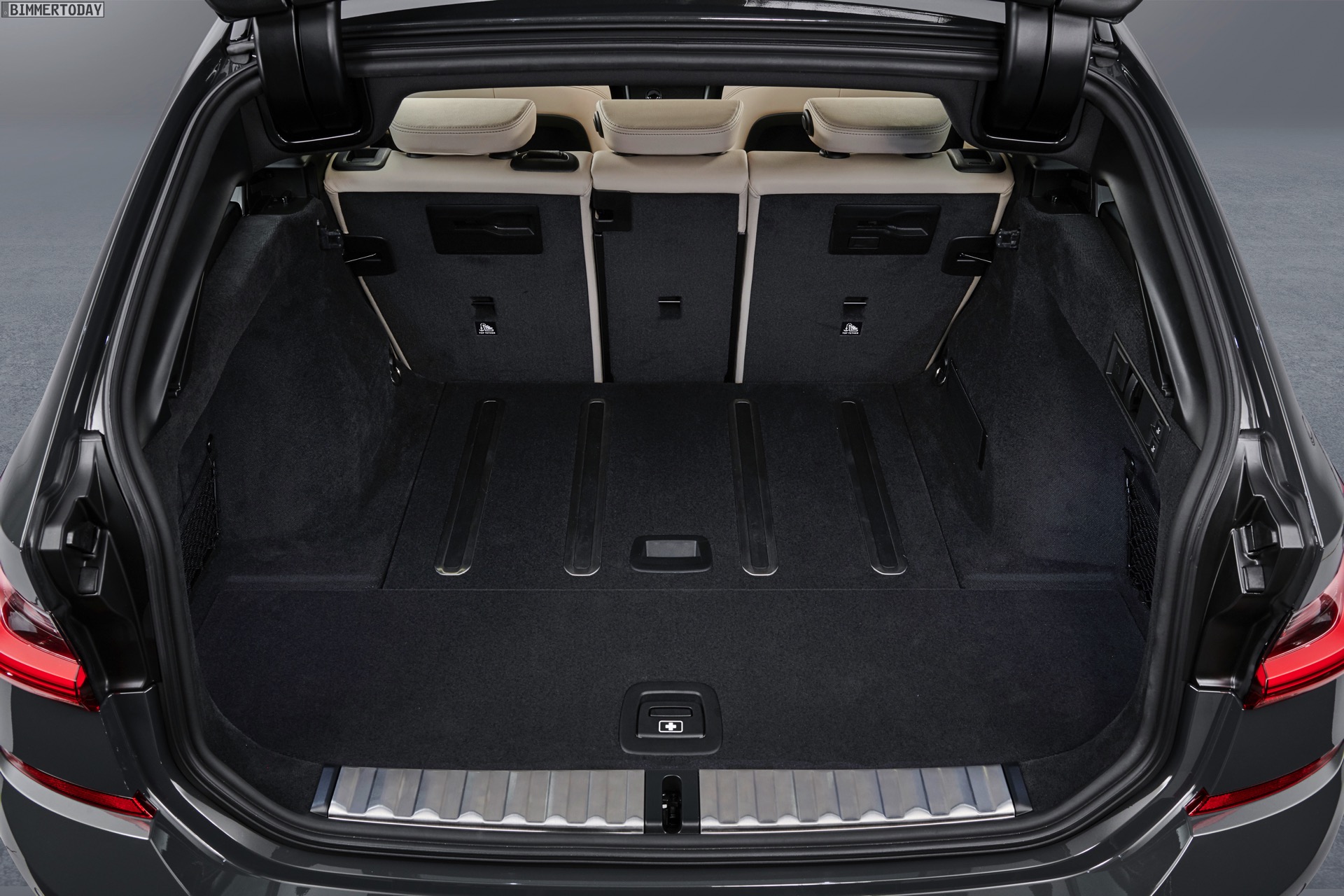 Im Detail wird der Gepäckraum um bis zu 11,2 Zentimeter breiter und lässt sich dank der größeren Ladeöffnung bequemer beladen: Bei geöffneter Heckklappe ist die Öffnung drei Zentimeter höher und im oberen Bereich bis zu 12,5 Zentimeter breiter. Die wie bei den Vorgängern auch beim neuen G21 weiterhin separat zu öffnende Heckscheibe ist ebenfalls bis zu 20 Millimeter breiter als beim F31. Das Beladen erleichtern die nur noch 616 Millimeter hohe Ladekante und die von 35 auf 8 Millimeter verkleinerte Kante zum Kofferraumboden. Gummierte und aufblasbare Schienen im Boden des Kofferraums wirken einem Verrutschen größerer Gegenstände effektiv entgegen. Die Umklappfunktion der serienmäßig im Verhältnis 40:20:40 teilbaren Rückbank lässt sich auf Wunsch auch elektrisch auslösen.