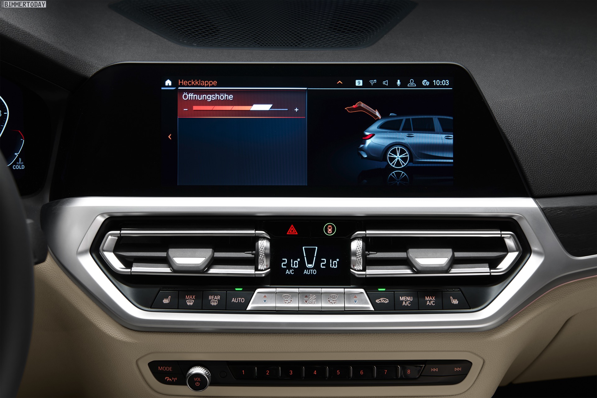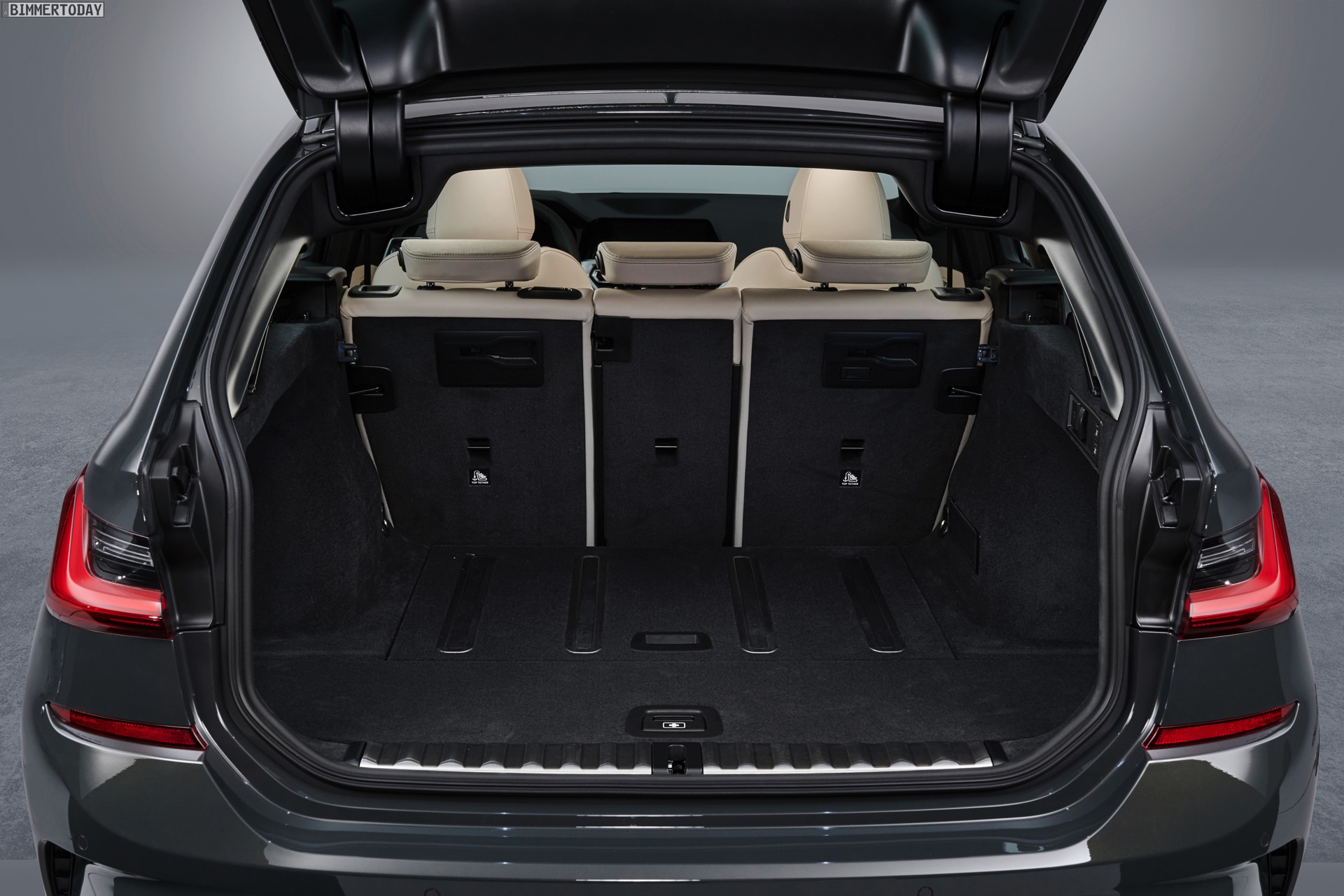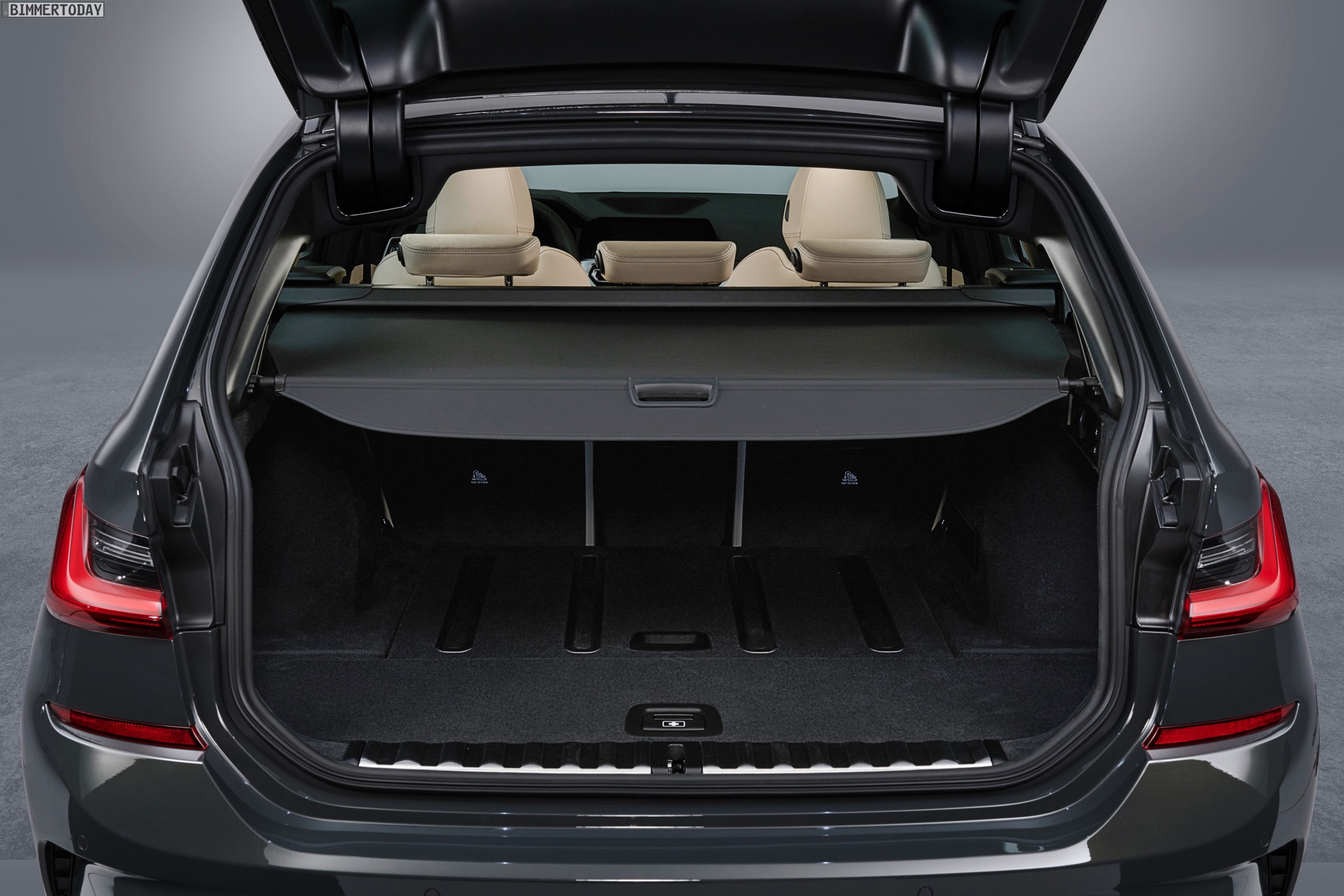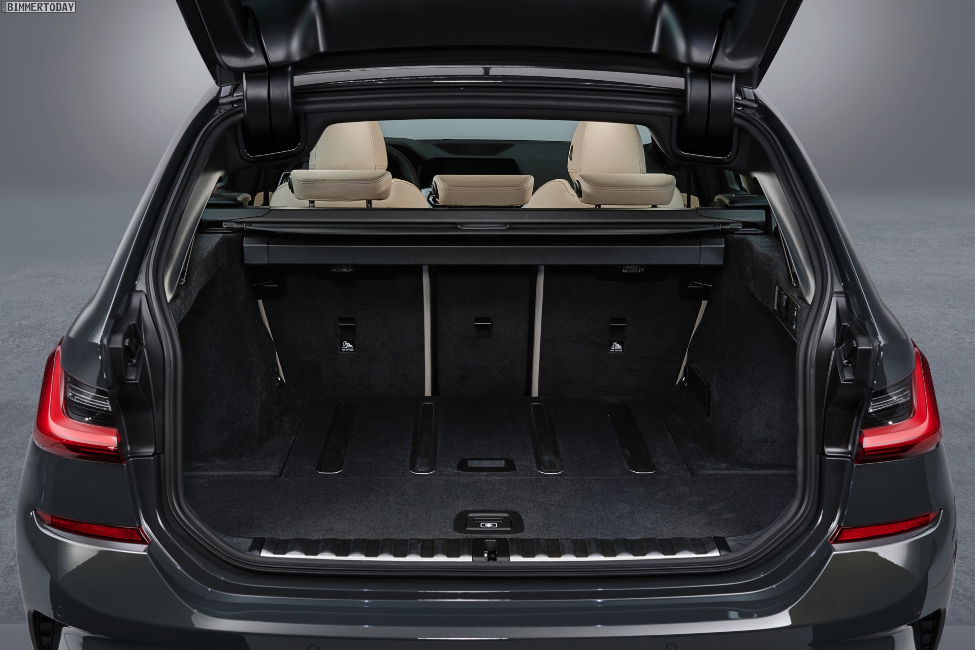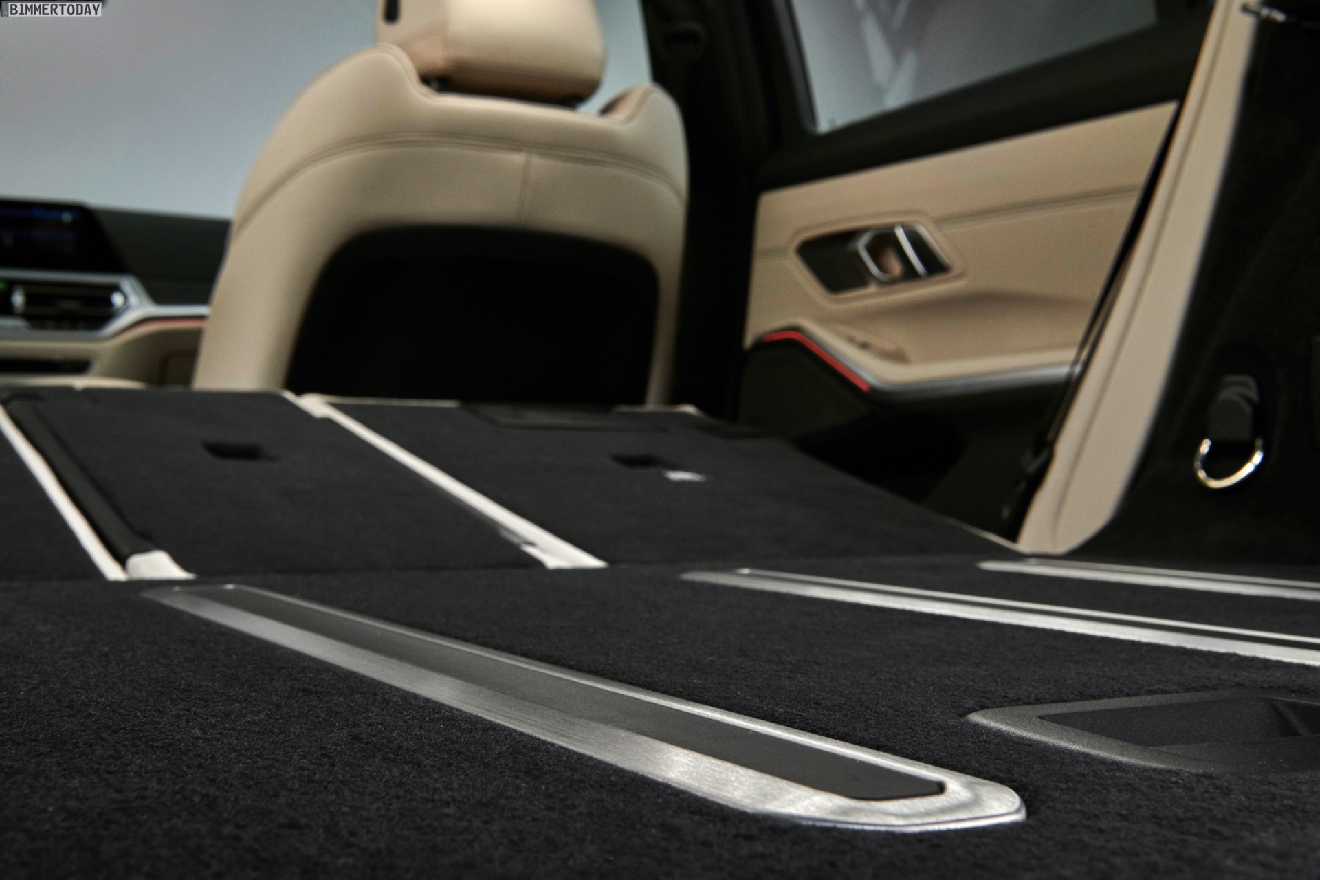 Im Detail wird der Gepäckraum um bis zu 11,2 Zentimeter breiter und lässt sich dank der größeren Ladeöffnung bequemer beladen: Bei geöffneter Heckklappe ist die Öffnung drei Zentimeter höher und im oberen Bereich bis zu 12,5 Zentimeter breiter. Die wie bei den Vorgängern auch beim neuen G21 weiterhin separat zu öffnende Heckscheibe ist ebenfalls bis zu 20 Millimeter breiter als beim F31. Das Beladen erleichtern die nur noch 616 Millimeter hohe Ladekante und die von 35 auf 8 Millimeter verkleinerte Kante zum Kofferraumboden. Gummierte und aufblasbare Schienen im Boden des Kofferraums wirken einem Verrutschen größerer Gegenstände effektiv entgegen. Die Umklappfunktion der serienmäßig im Verhältnis 40:20:40 teilbaren Rückbank lässt sich auf Wunsch auch elektrisch auslösen.