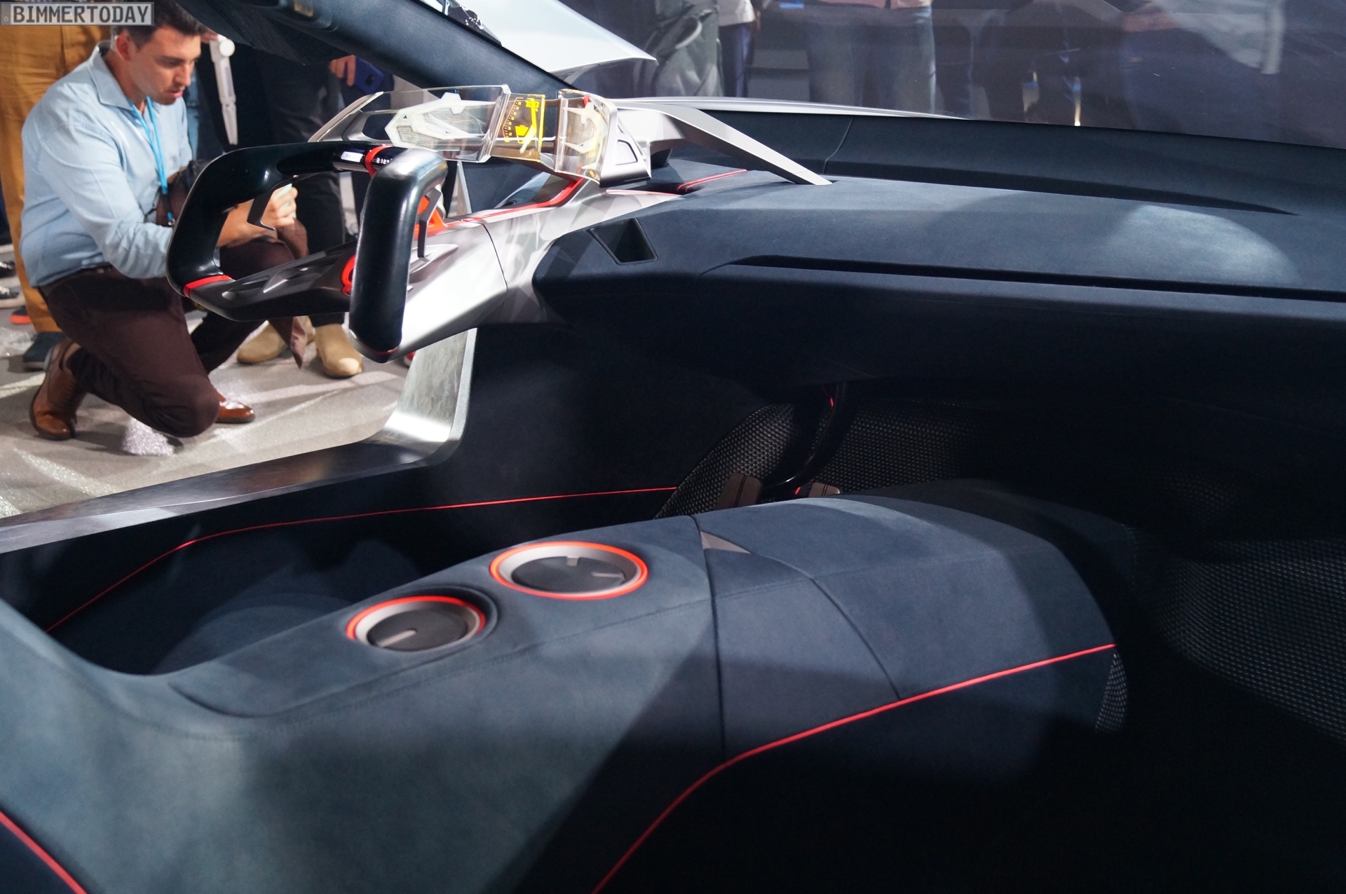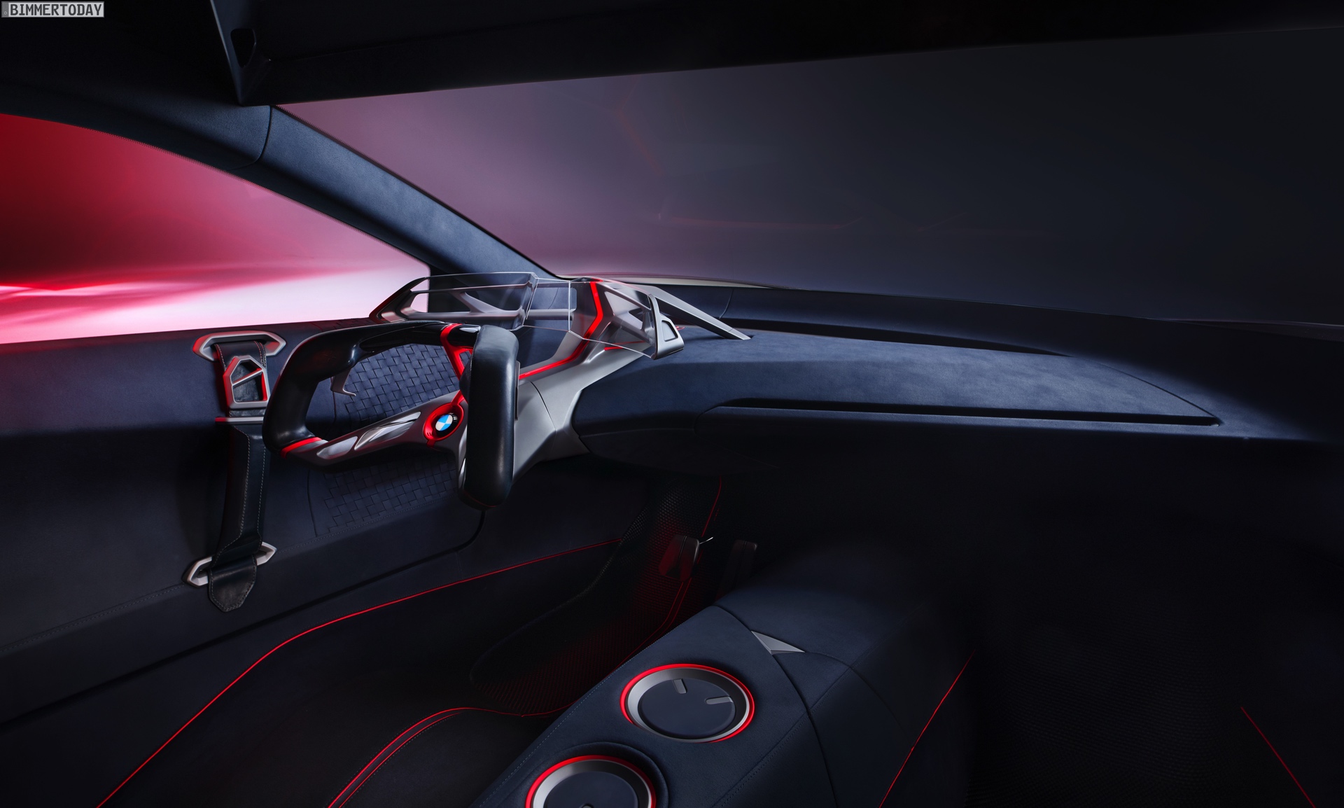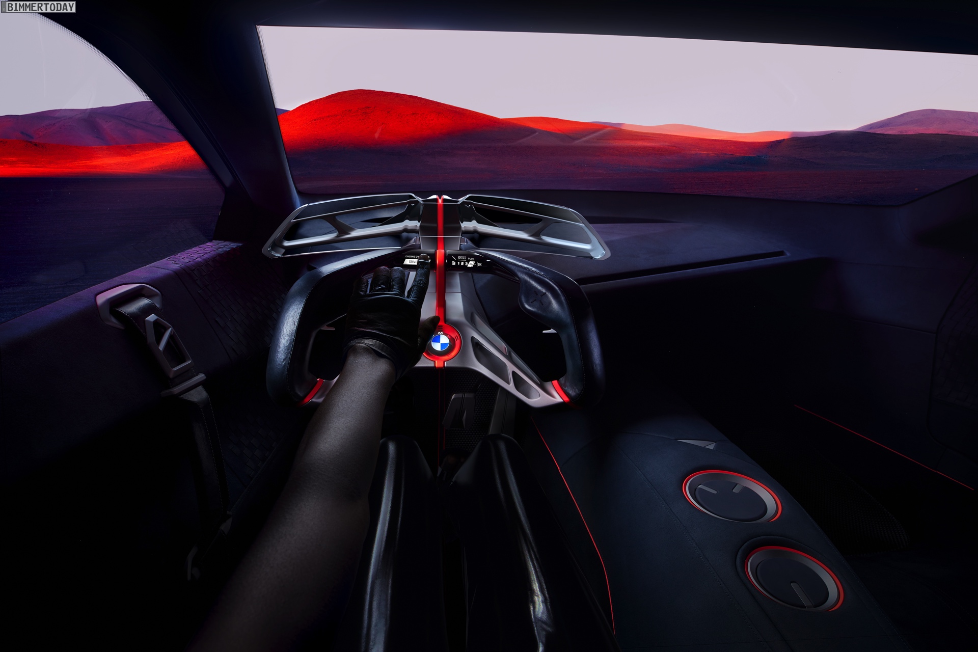 Domagoj Dukec (Leiter Design BMW): “Der BMW Vision M NEXT ist ein progressiver Hybrid-Sportwagen, der sowohl in seinem Auftreten als auch in der Interaktion ein sehr klares und selbstbewusstes Statement setzt. Im BMW Vision M NEXT unterstützen intelligente Technologien den Fahrer und liefern die richtigen Inhalte zur richtigen Zeit. Die Bedienung ist intuitiv und eindeutig, alle Informationen werden im direkten Blickfeld des Fahrers angezeigt. Hiermit zeigen wir bewusst einen Gegenpol zum BMW Vision iNEXT, in dem eine multimodale Bedienung von allen Plätzen aus im Vordergrund stand.