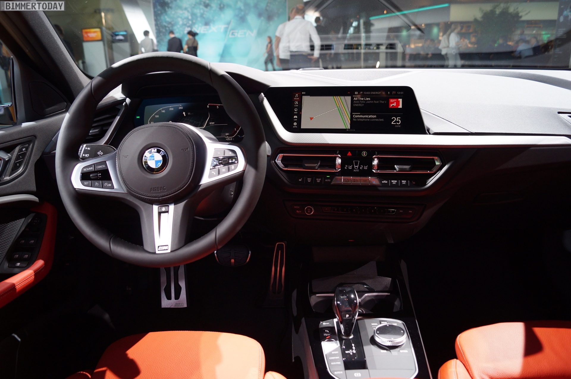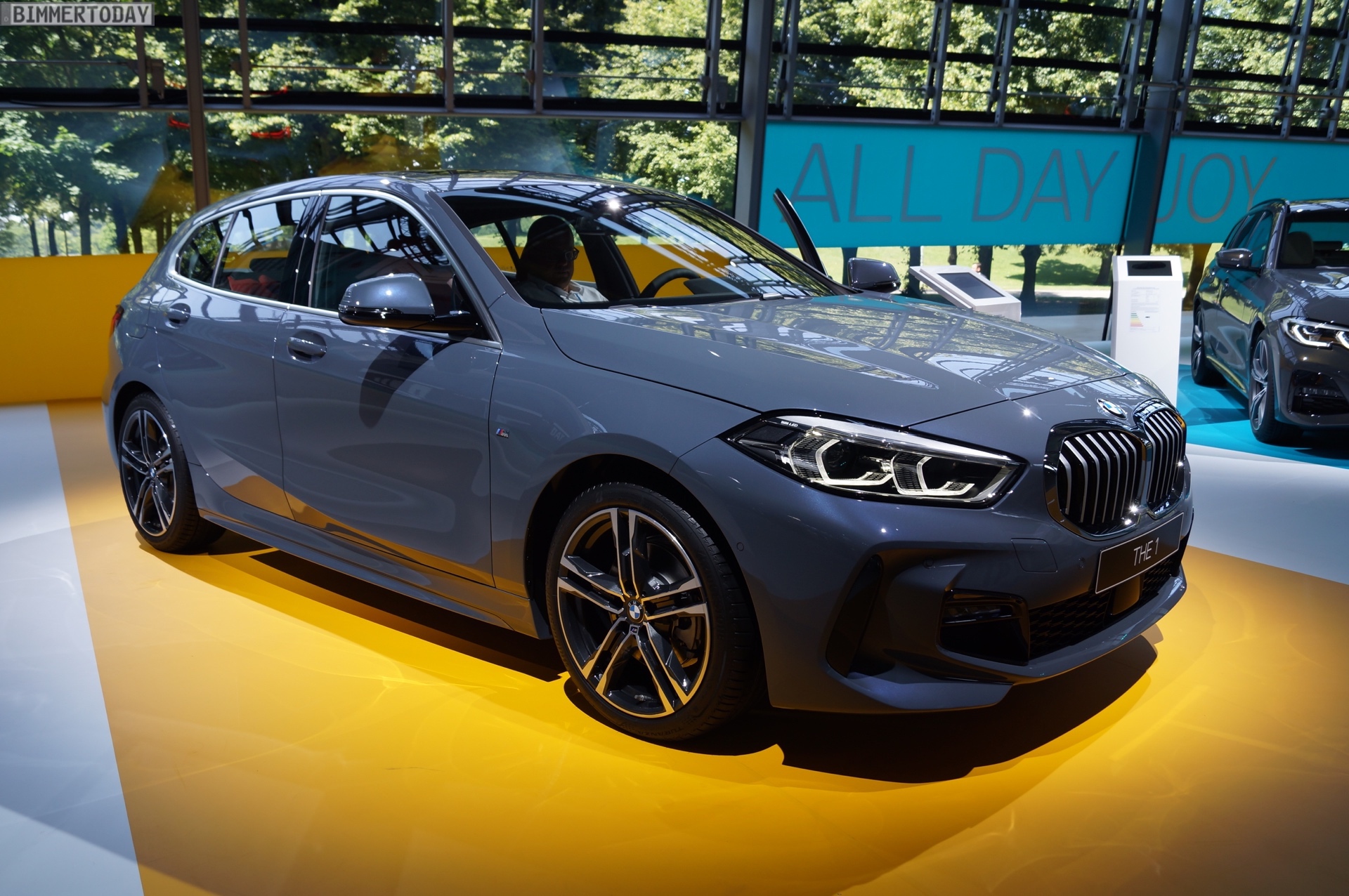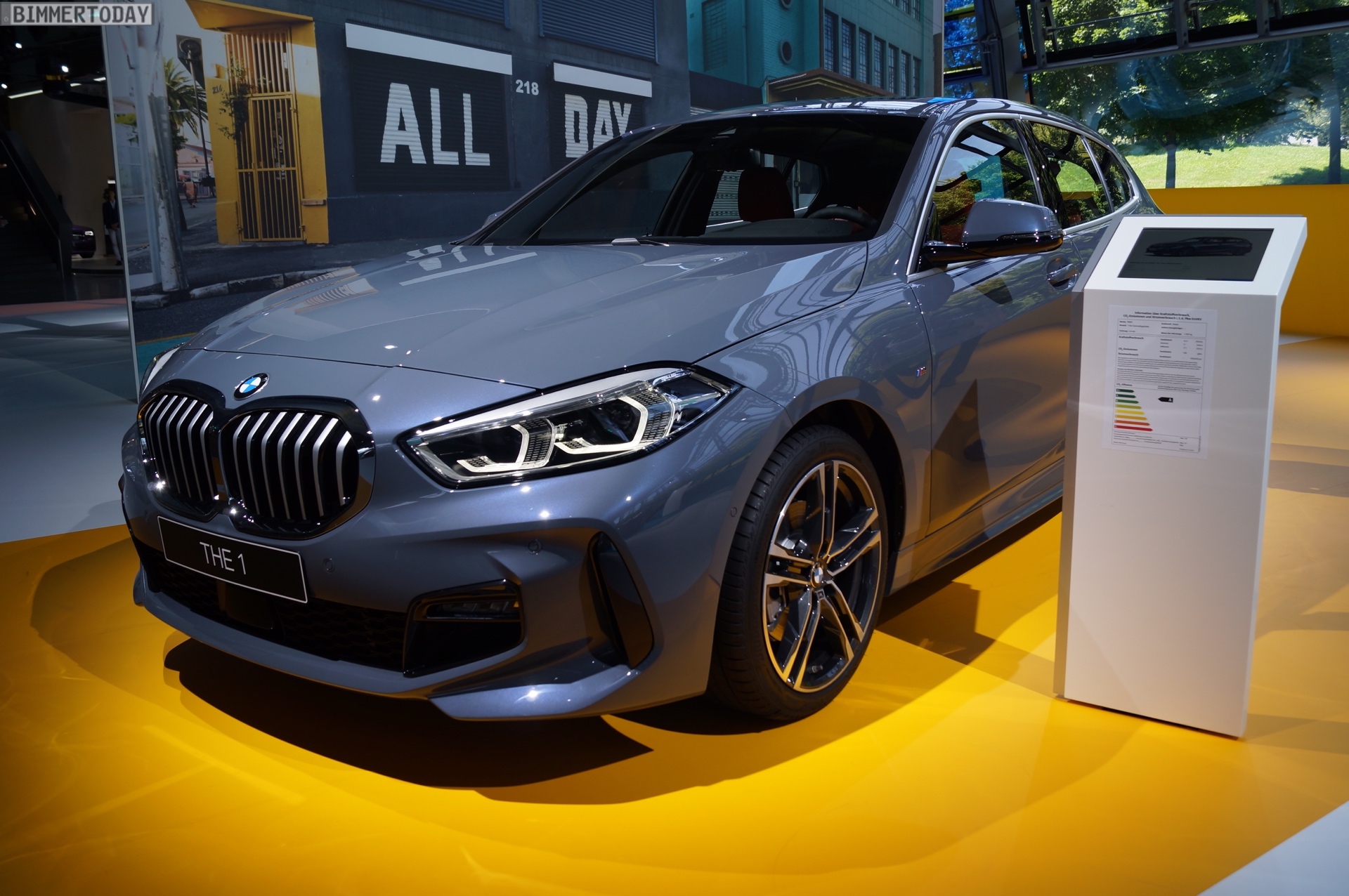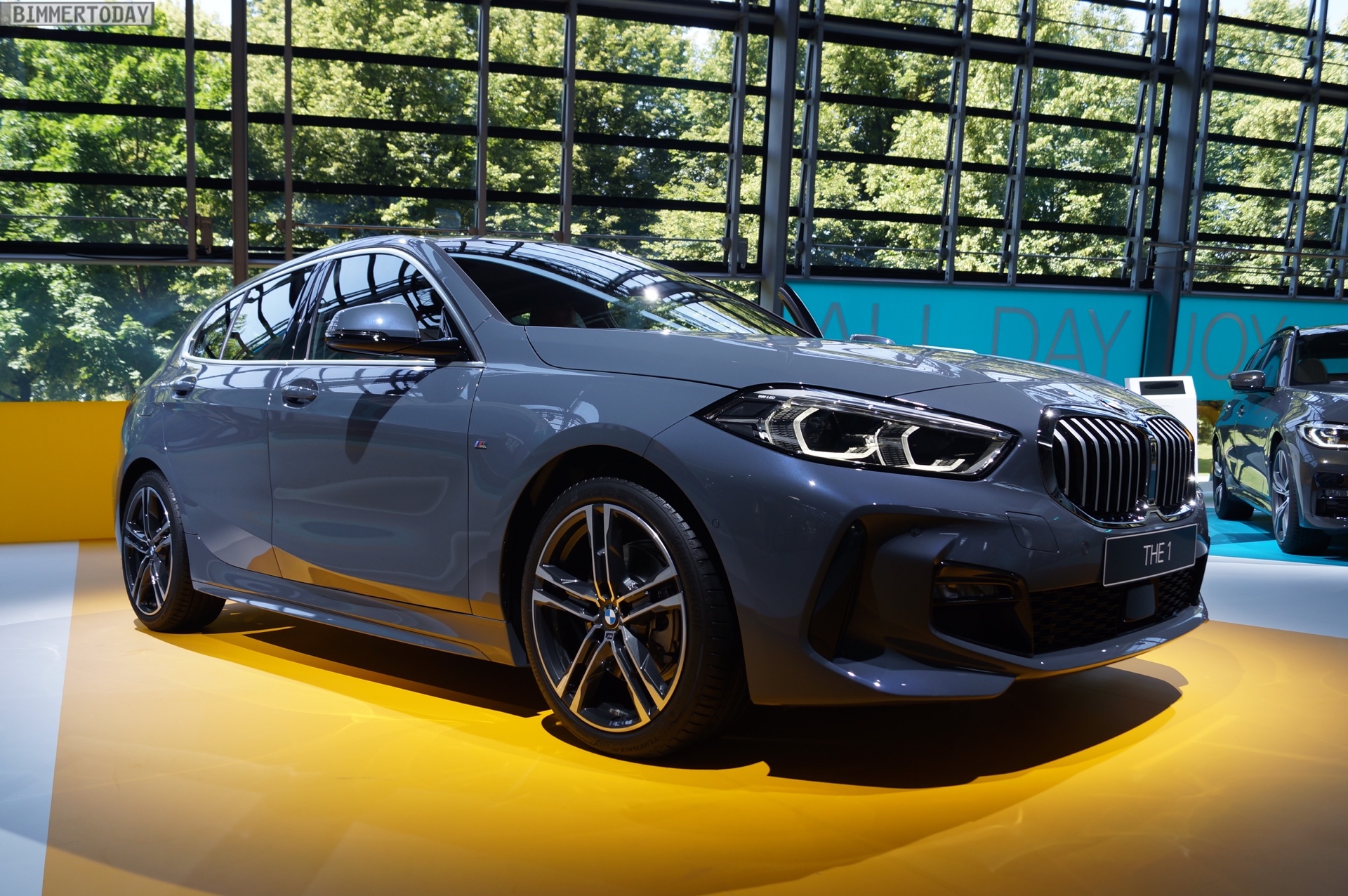 Auf der #NextGen 2019 feiert auch der neue BMW 1er F40 seine offizielle Weltpremiere. Die dritte 1er-Generation ist dabei als BMW 118d mit M Sportpaket und Lackierung in Storm Bay zu sehen. Das helle Grau betont die markante Formensprache des M Pakets und lässt den Fronttriebler sehr selbstbewusst auftreten. Die bei allen Modellen verbauten 90-Millimeter-Endrohre links und rechts unterstreichen den sportlichen Anspruch des BMW 1er F40.