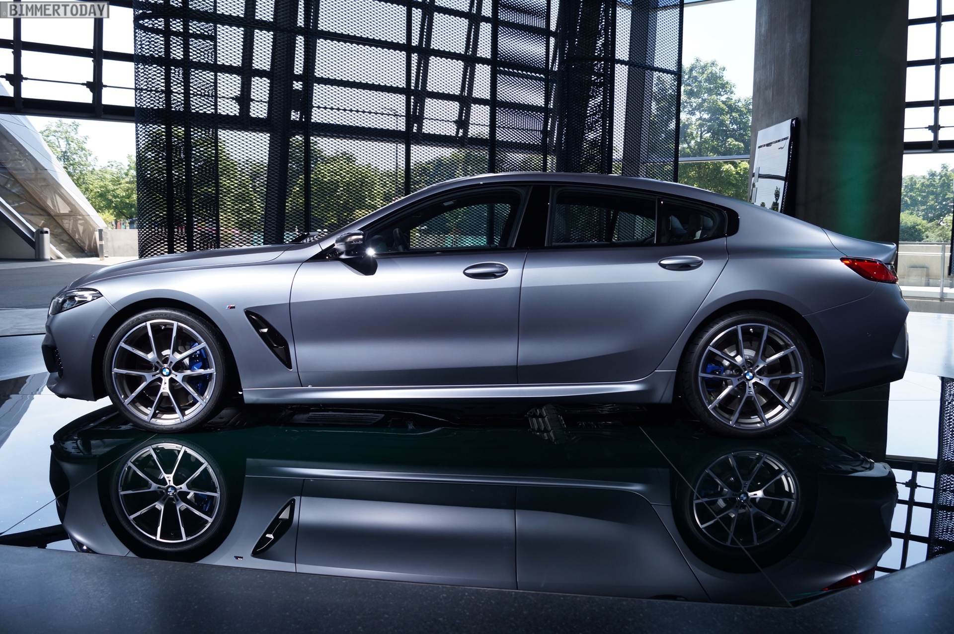 Die #NextGen 2019 in der BMW Welt ist die erste große Bühne für das neue BMW 8er Gran Coupé G16 – weitere werden mit Sicherheit folgen, denn das viertürige Luxus-Coupé wird in den nächsten Monaten und Jahren mit Sicherheit vielerorts in Szene gesetzt. Auf unseren Live-Fotos von der Weltpremiere in München glänzt das dritte Mitglied der neuen 8er-Reihe als BMW M850i xDrive in Frozen Bluestone Metallic.