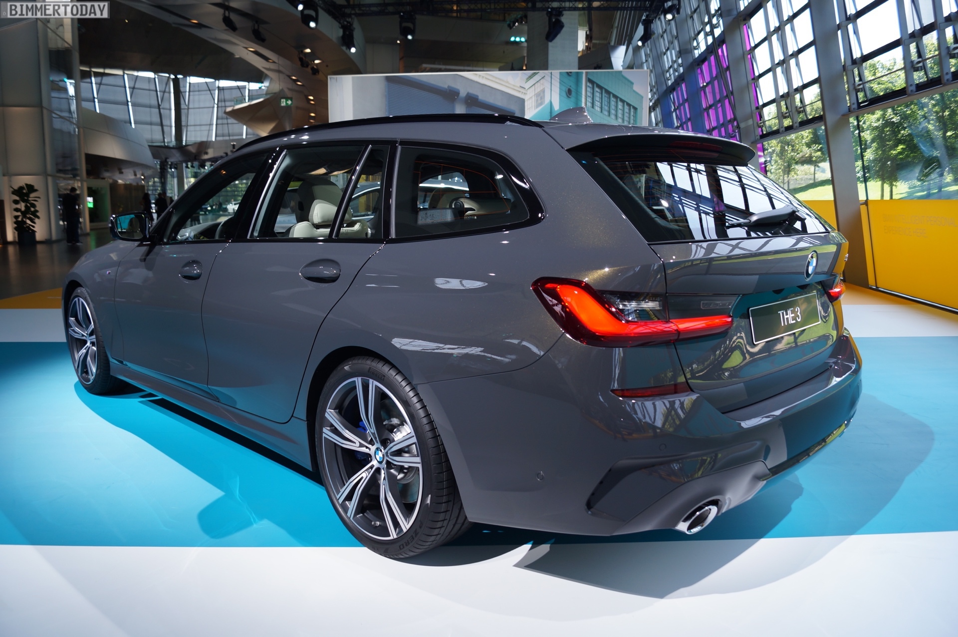Der neue BMW 3er Touring G21 war auf der #NextGen 2019 nicht nur als M340i xDrive, sondern auch in einer sportlichen Individual-Konfiguration zu sehen. Unsere Live-Fotos zeigen den Mittelklasse-Kombi als 330i mit M Sport-Paket und der mit 1.250 Euro Aufpreis zwischen gewöhnlichen Metallic- und klassischen Individual-Lacken angeordneten Lackierung in Dravitgrau.