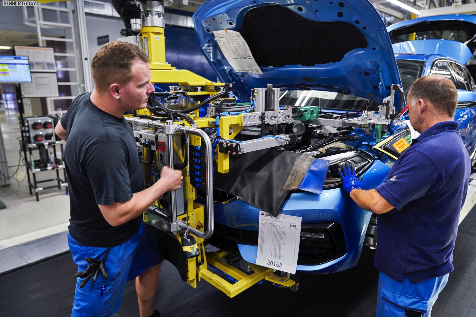 Beim ersten BMW 1er F40 handelt es sich um einen 118i mit M Sport-Paket und Lackierung in Misano-Blau, auf manchen Fotos sehen wir auch das Topmodell M135i xDrive. In den kommenden Monaten soll die Produktion in Leipzig auf rund 600 Fahrzeuge pro Tag hochgefahren werden. Ab November steigt auch das Werk Regensburg in die Produktion des 1er F40 ein und erhöht die Kapazitäten signifikant.
