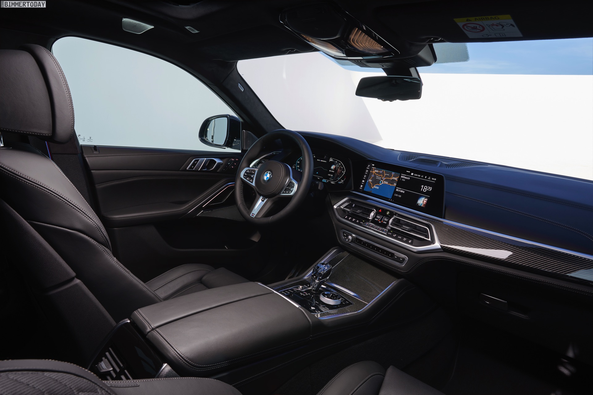 Völlig neu präsentiert sich der Innenraum des BMW X6 2019, wobei die Nähe zum Technik-Spender X5 unübersehbar wird. Das aktuelle Cockpit-Design mit neuer Gestaltung für Armaturenbrett und Mittelkonsole wird von zwei 12,3 Zoll großen Displays geprägt, die Fahrer und Beifahrer umfassend informieren. Wie schon die ersten beiden Generationen ist natürlich auch der neue BMW X6 G06 zusätzlich mit einem Head-up-Display für den Fahrer ausgestattet.