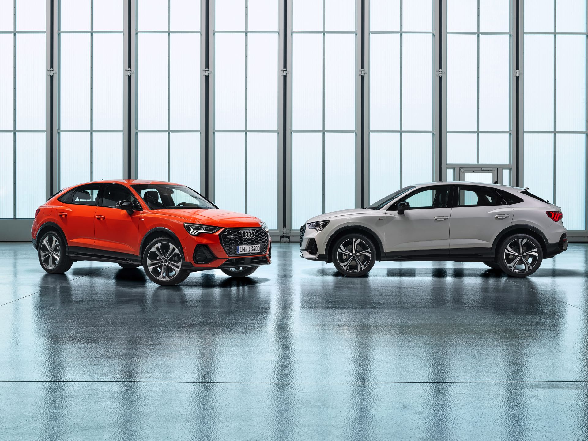 Zum Marktstart im Herbst 2019 kommt der Audi Q3 Sportback zunächst mit nur einem Benziner und einem Diesel. Der 2,0-Liter-Vierzylinder des Q3 45 TFSI quattro leistet 230 PS, der ebenfalls 2,0 Liter große Vierzylinder-Diesel des Q3 35 TDI bietet 150 PS. Für die kommenden Monate sind ein schwächerer Benziner und ein stärkerer Diesel angekündigt, ersterer soll auch ein 48-Volt-Mild-Hybrid-System verwenden.
