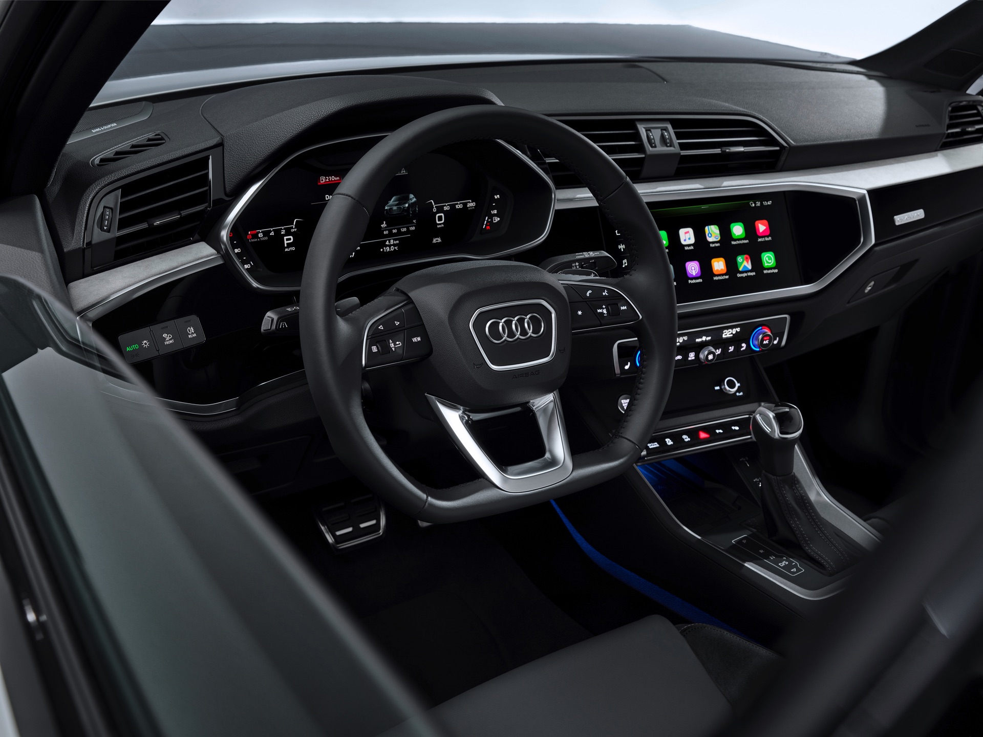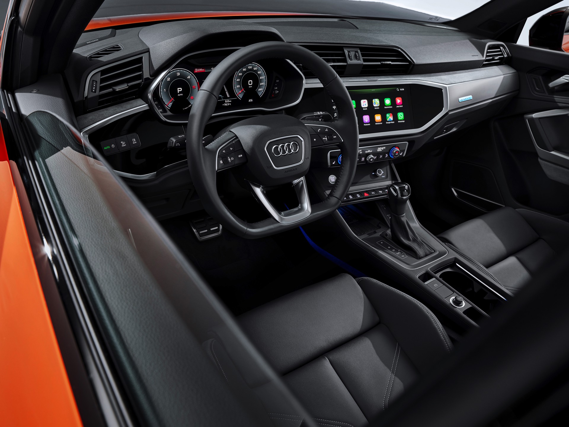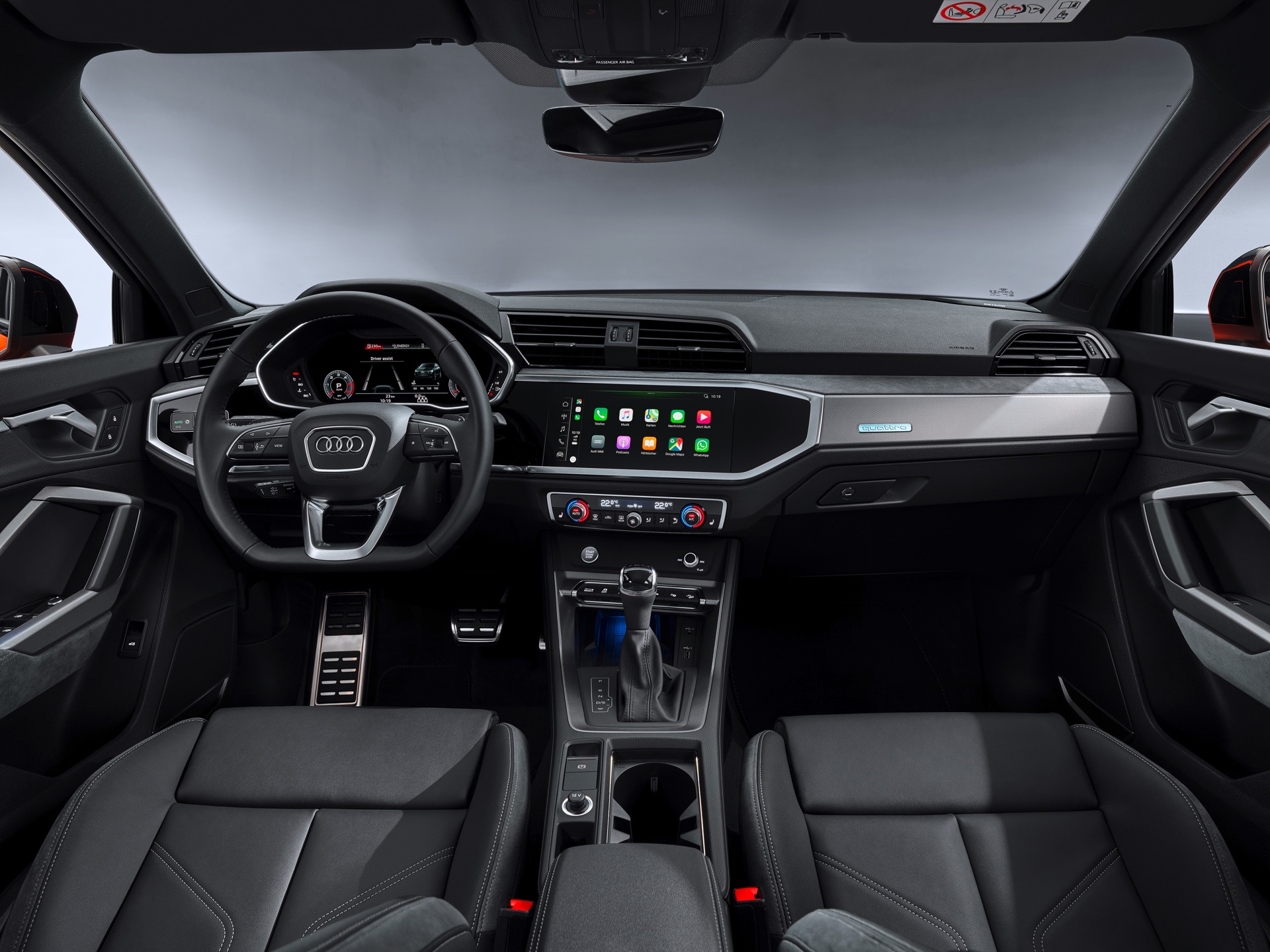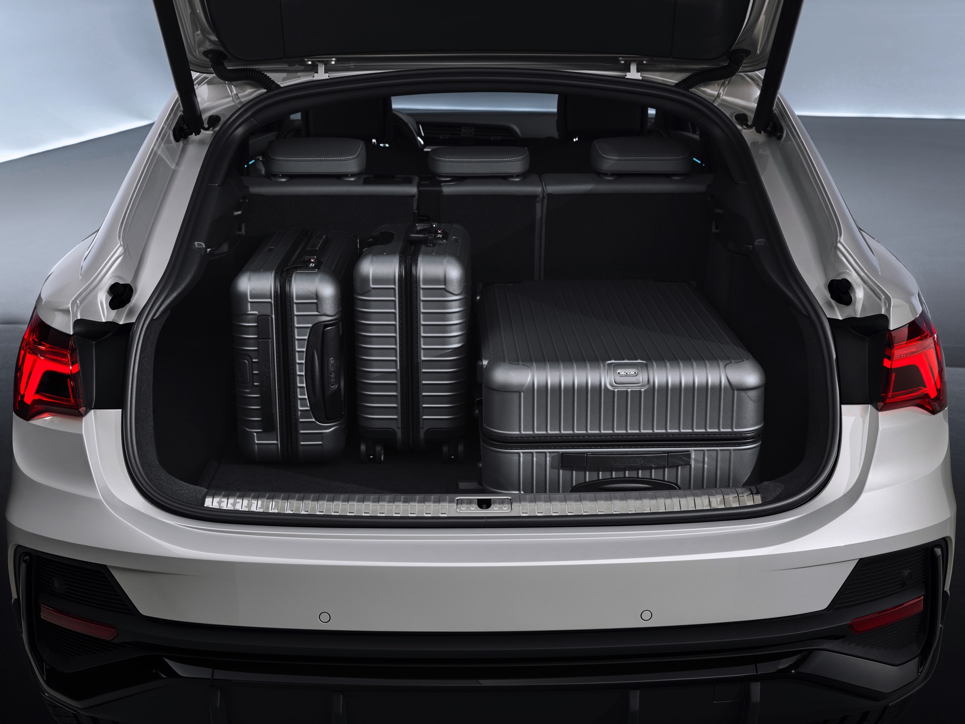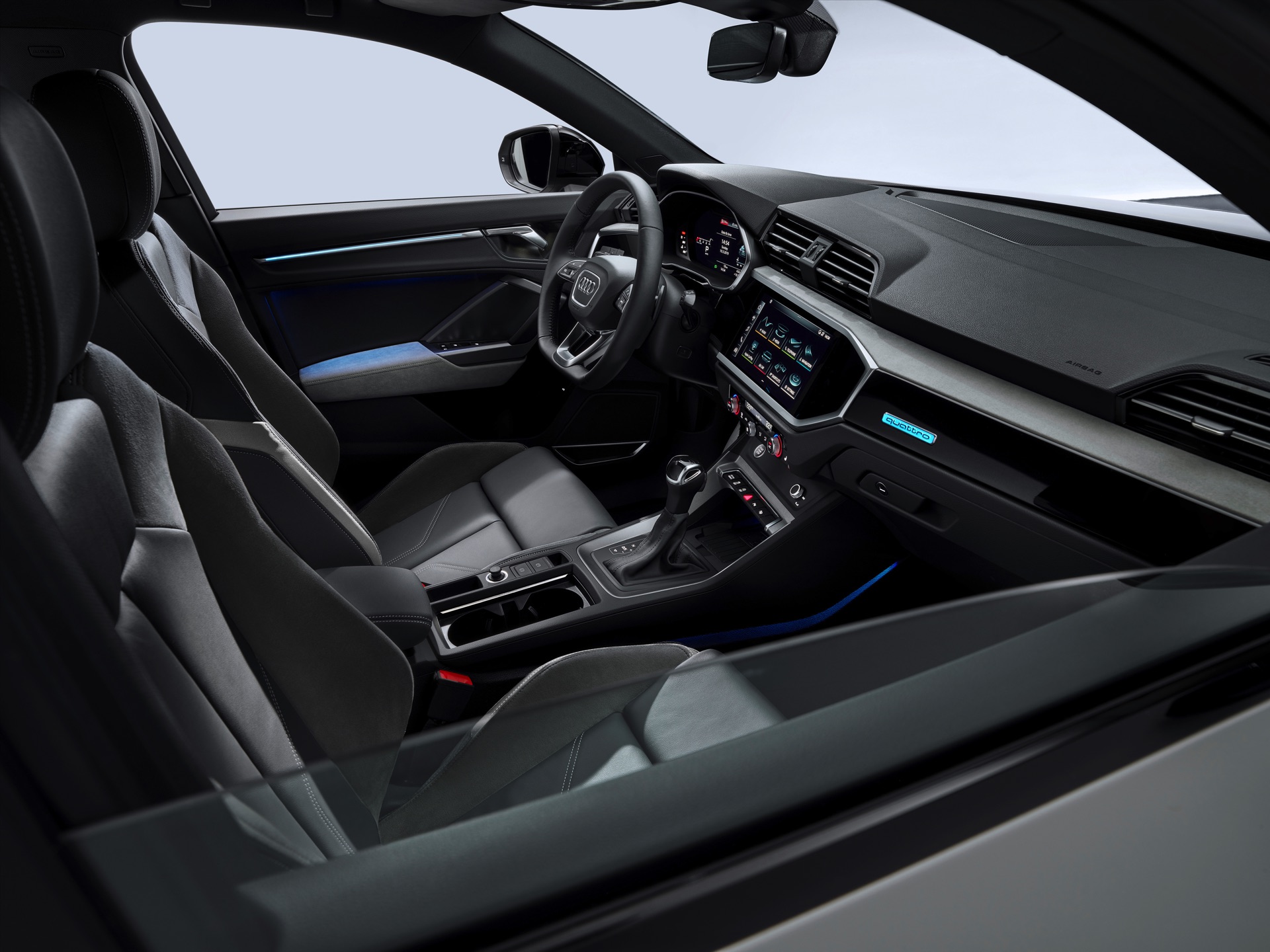 Der Innenraum des neuen Q3-Ablegers entspricht dem aktuellen Audi-Standard und verfügt optional über zwei große Displays. Ergänzend zum bis zu 12,3 Zoll großen Instrumenten-Display wird auf Wunsch ein 10,1 Zoll großer Touchscreen zur Steuerung der Infotainment-Funktionen verbaut. Im Kofferraum des Sportback ist Platz für 530 bis 1.400 Liter Gepäck.