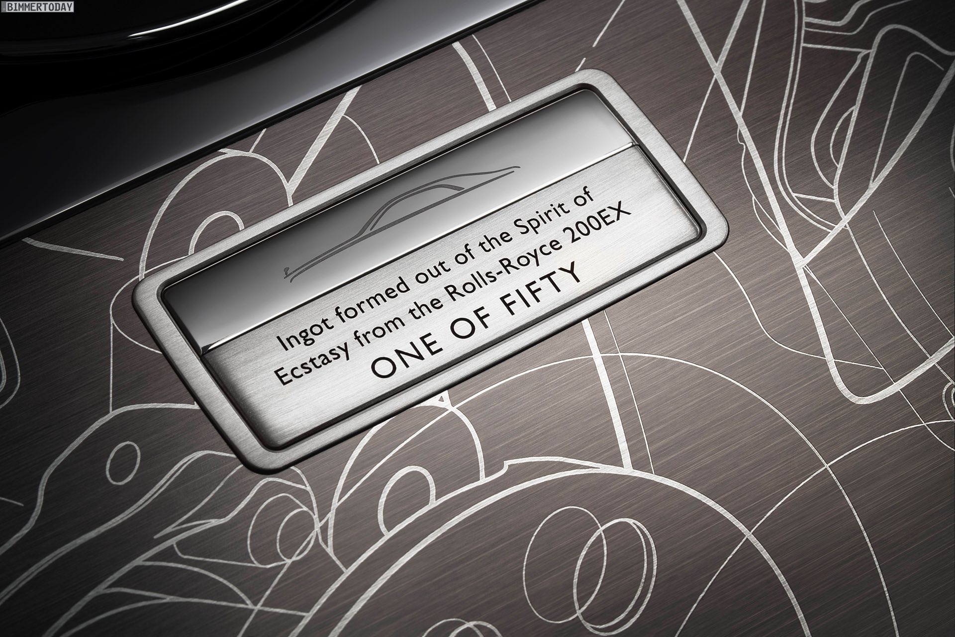 Zur Feier des Erfolgs fährt die Rolls-Royce Ghost Zenith Collection alles auf, was im individuellen Bespoke-Programm zu haben ist. Dabei schließt sich der Kreis zum Beginn der aktuellen Ghost-Geschichte, denn die Zenith Collection greift mit vielen Details das Concept Car 200EX auf, das 2009 als Vorschau auf das Serienmodell präsentiert wurde. Das unumstrittene Highlight ist eine Plakette auf der Mittelkonsole, die aus der eingeschmolzenen Spirit of Ecstasy des 200EX geformt wurde.