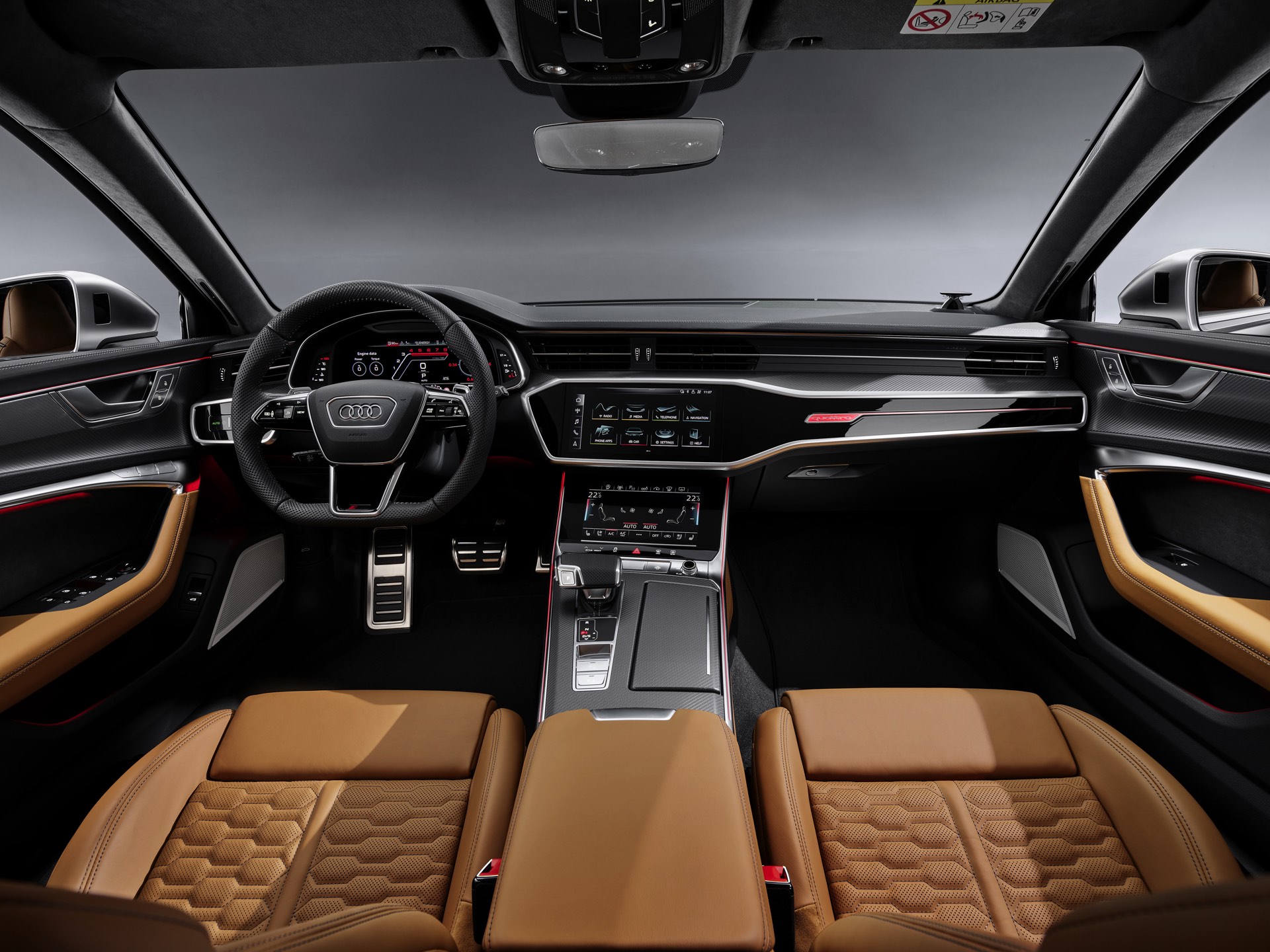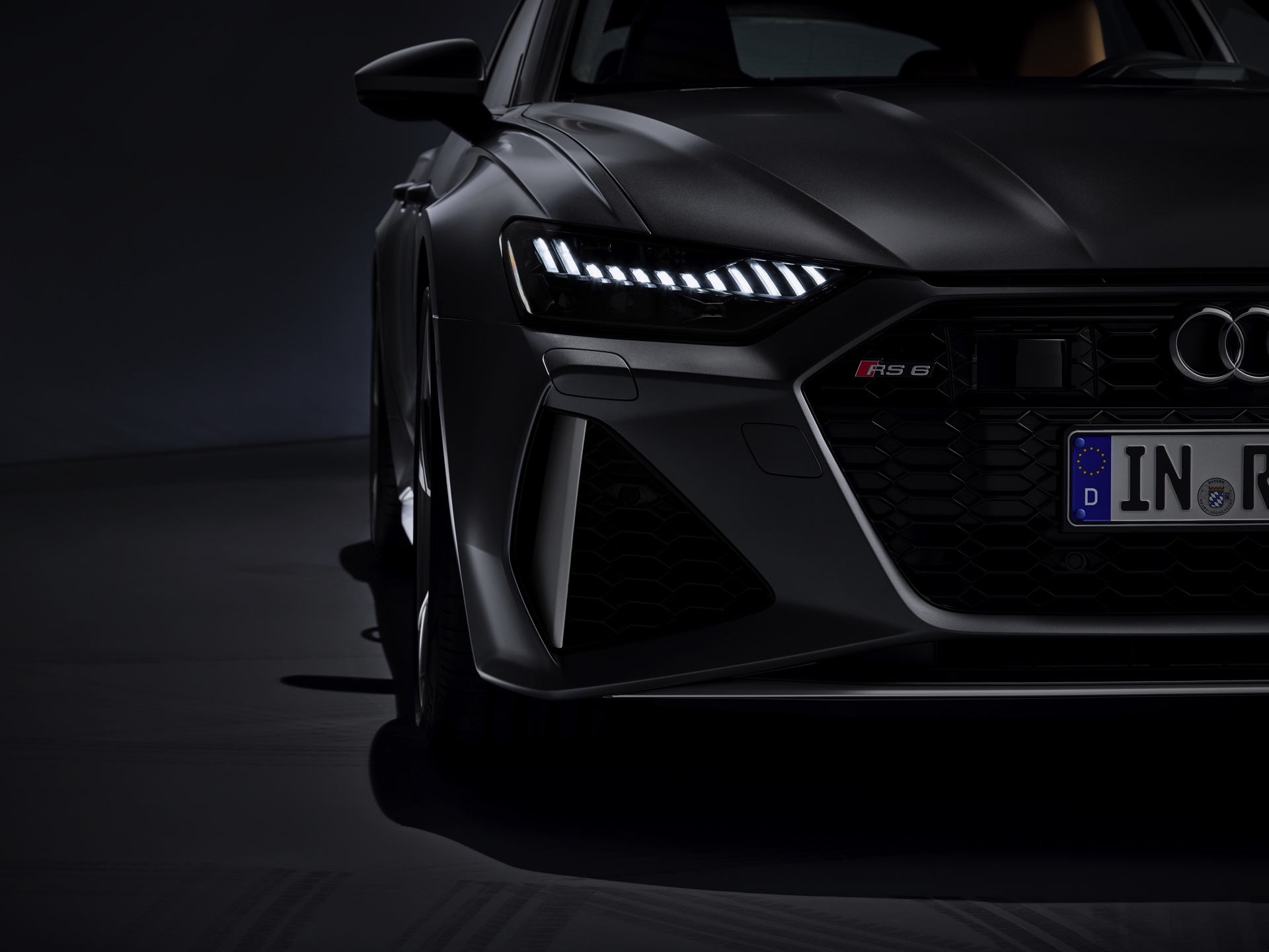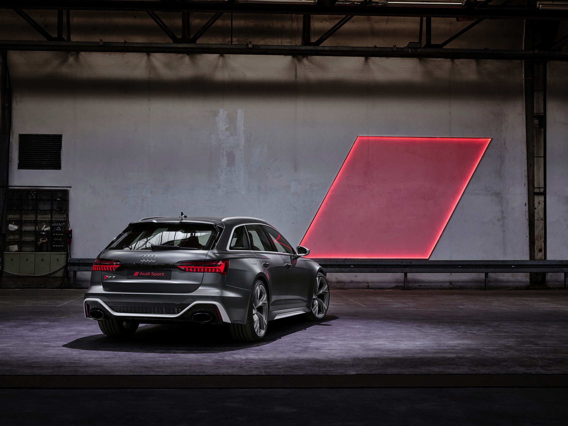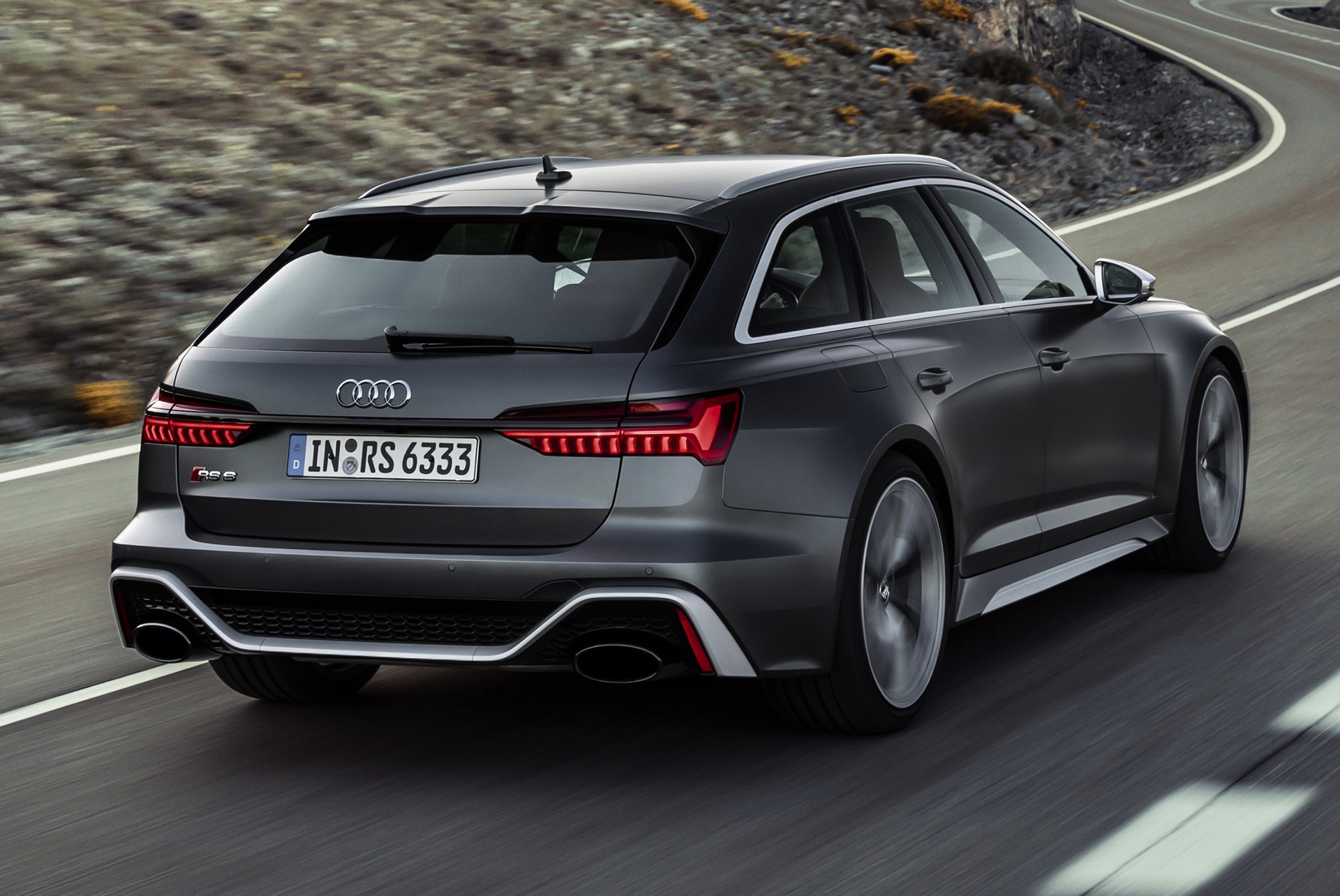 Bei der Optik des 600 PS starken Kombis setzt Audi voll auf Angriff und trimmt den RS 6 auf maximale Aggressivität. Riesige Lufteinlässe, farbig abgesetzte Design-Elemente und die schärfer gezeichneten Scheinwerfer des A7 grenzen den RS 6 klar vom gewöhnlichen A6 ab, auch die Motorhaube hat ein spezifisches Design erhalten. Am Heck machen der Diffusor und zwei armdicke Endrohre klar, dass hier kein gewöhnlicher Kombi einkaufen fährt. Zum markanten Erscheinungsbild trägt auch die Verbreiterung der Karosserie um 40 Millimeter links und rechts bei.