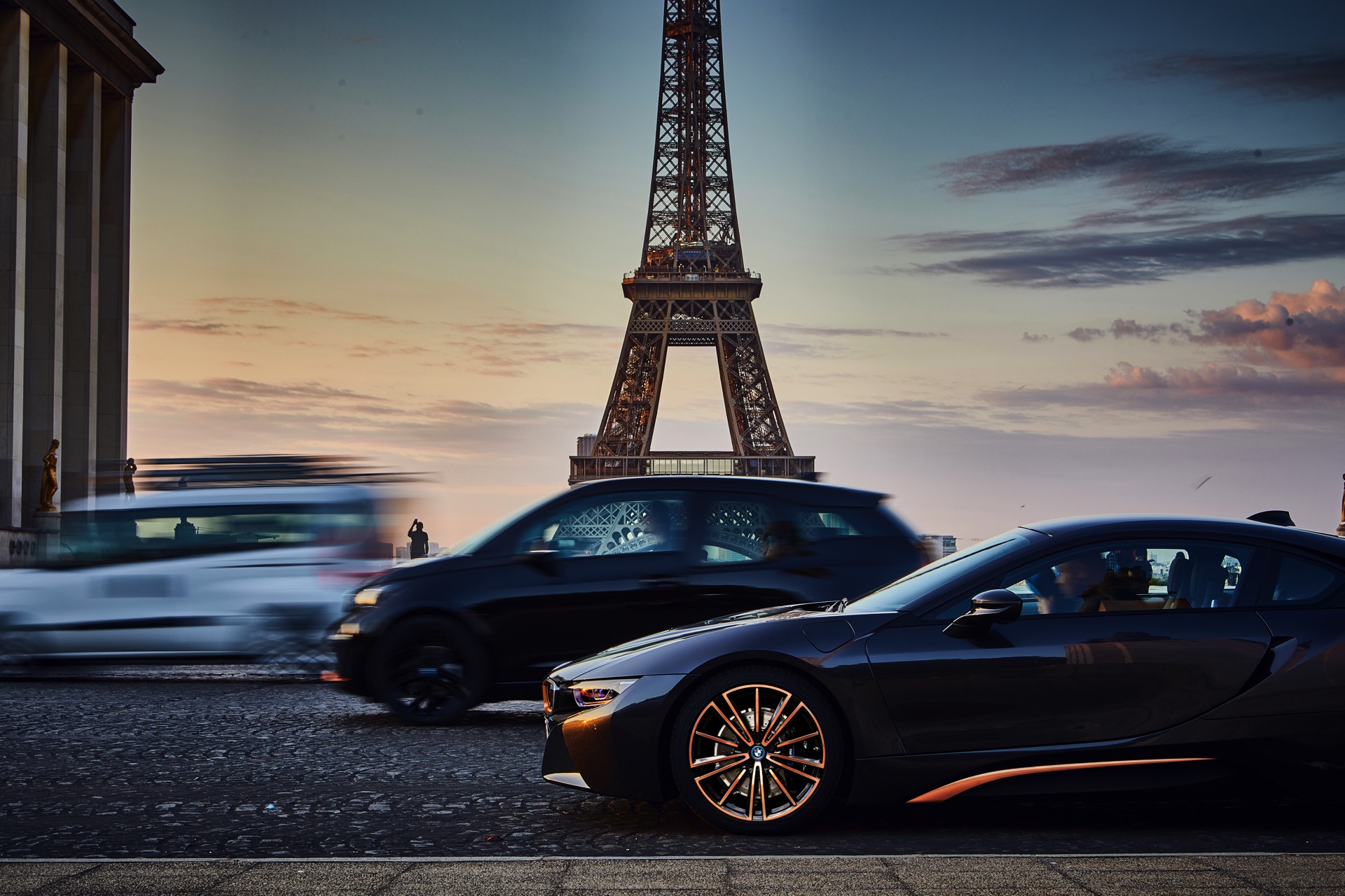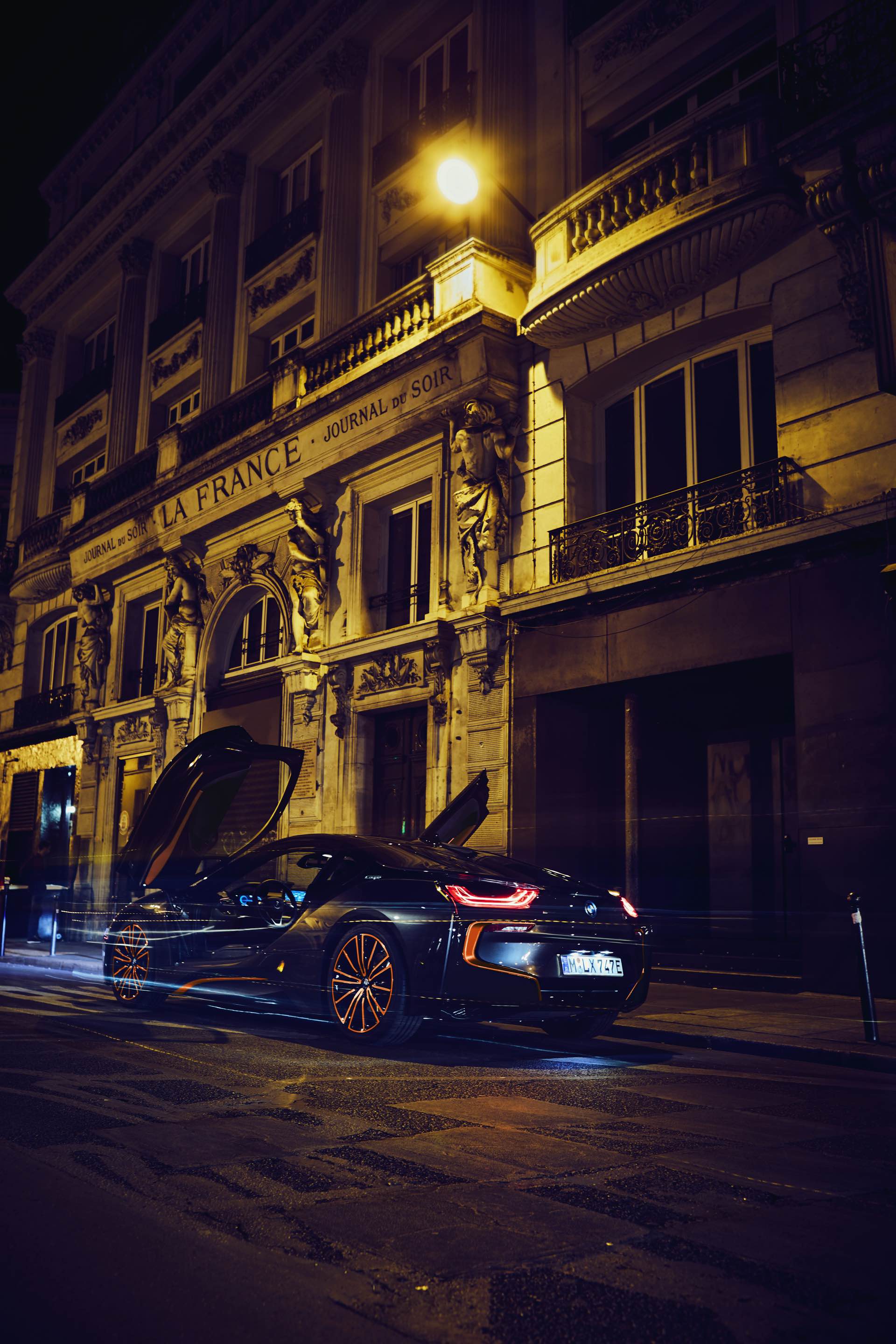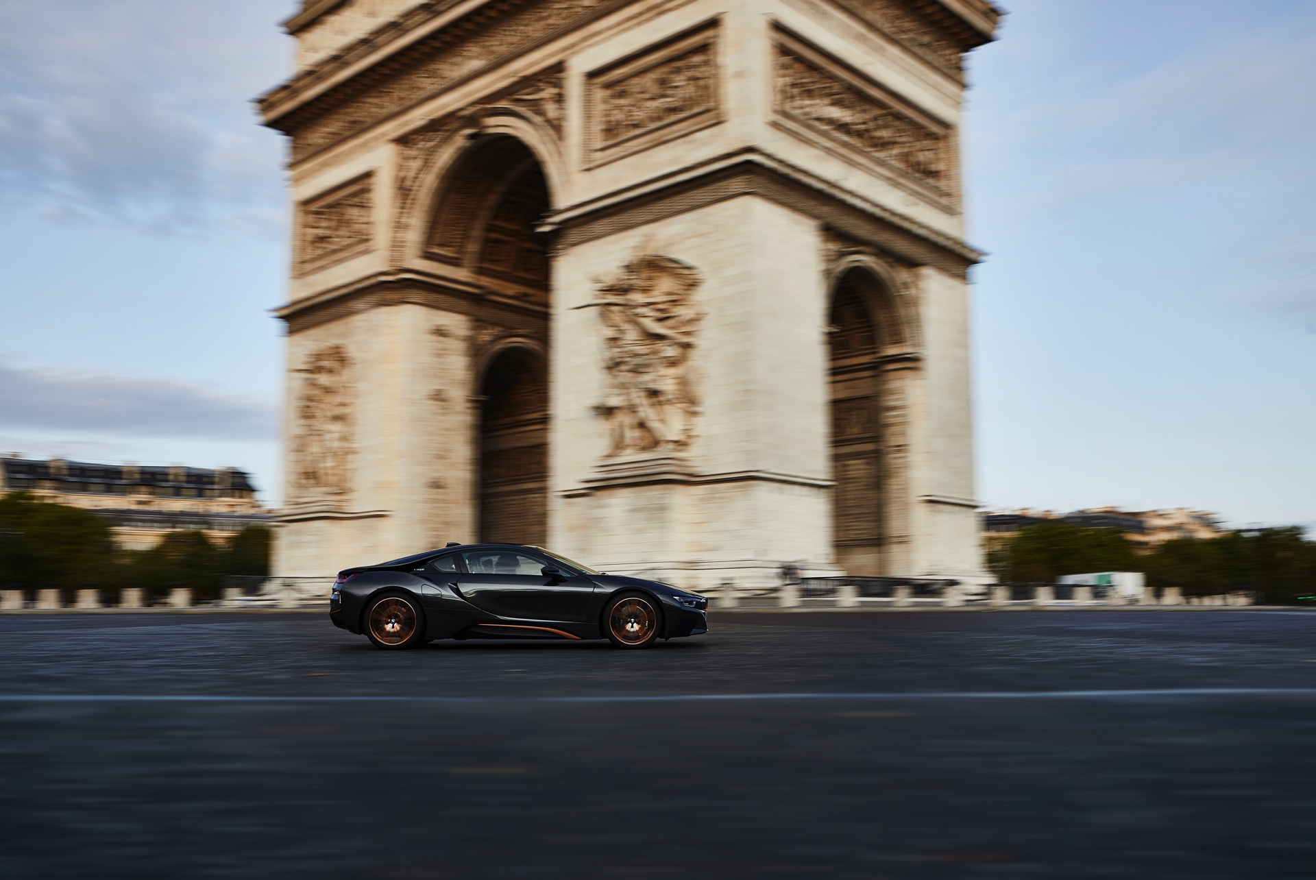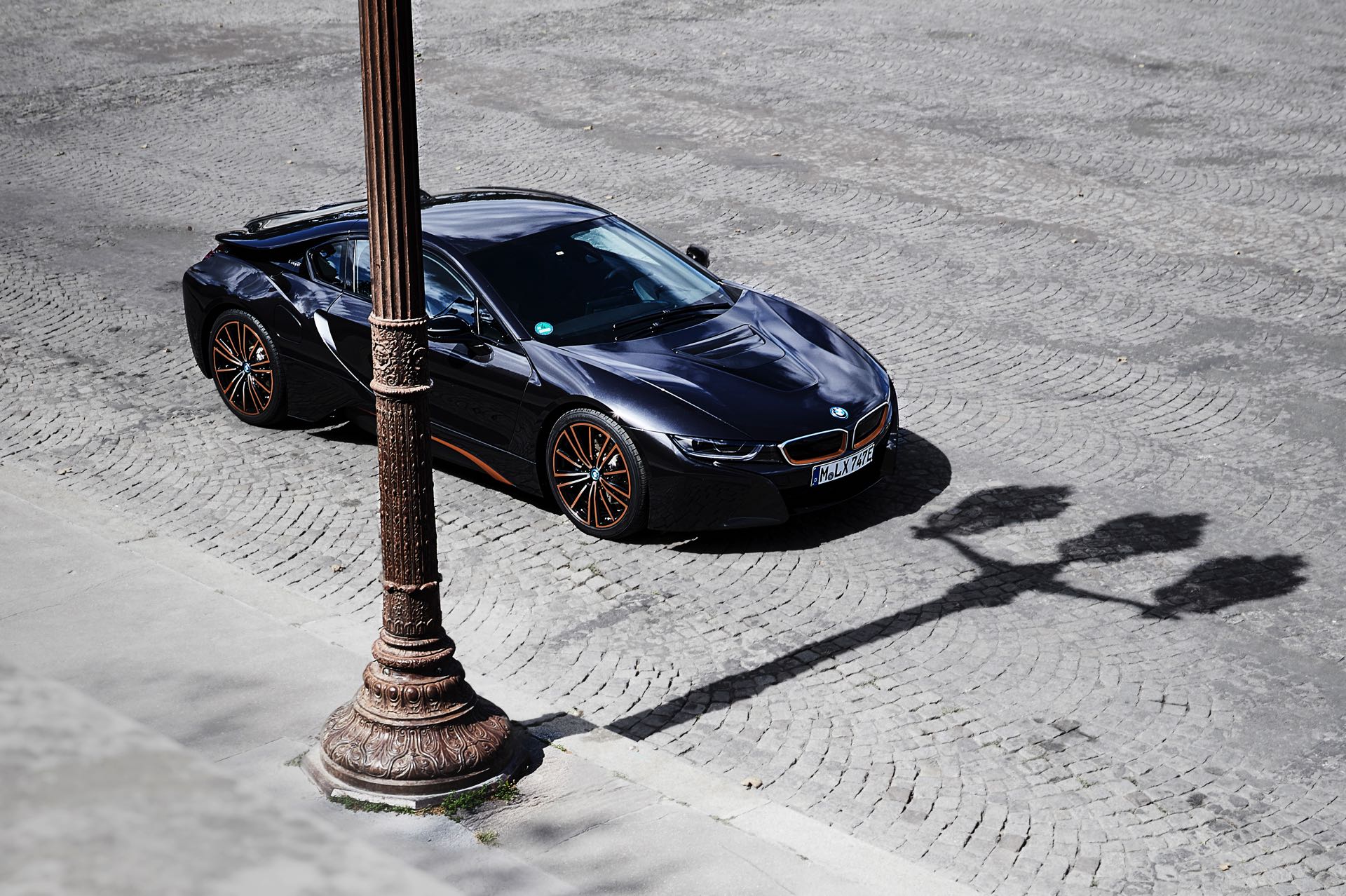 Wie der Name schon andeutet, dient Sophistograu Brillanteffekt als Grundfarbe. Für das Anziehen neugieriger Blicke sind allerdings die Akzente in E-Copper zuständig, die das i8-Finale zu einem besonderen Hingucker machen. Nicht nur die 20 Zoll großen Felgen tragen Elemente in E-Copper, auch an Nieren, Seitenschweller und Heckschürze findet sich die Launch-Farbe des i8 Roadster.