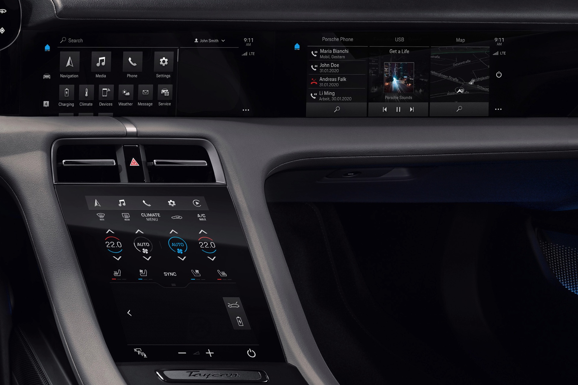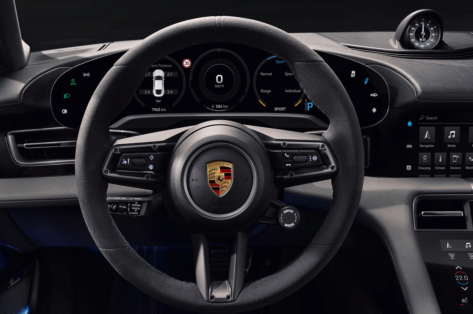 Die resultierenden Fahrleistungen sind selbst im Porsche-Umfeld beeindruckend: Das Basismodell beschleunigt in 3,2 Sekunden von 0 auf 100 km/h und ist damit eine Zehntelsekunde schneller als der BMW M5 Competition, das Topmodell benötigt sogar nur 2,8 Sekunden. Einzig bei der Höchstgeschwindigkeit lässt der Porsche Taycan Vernunft walten: Mehr als 260 km/h erlaubt die Elektronik nicht, weil die Reichweite darunter zu sehr leiden würde.
