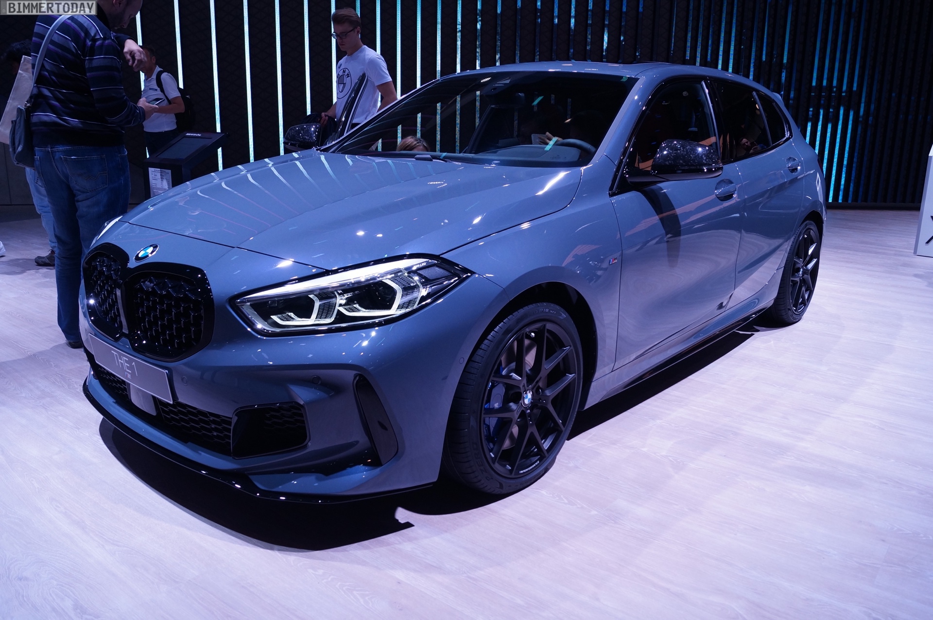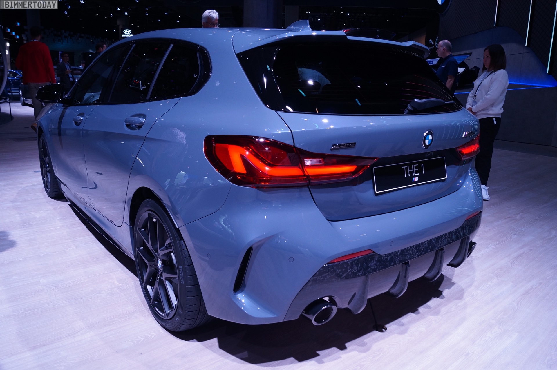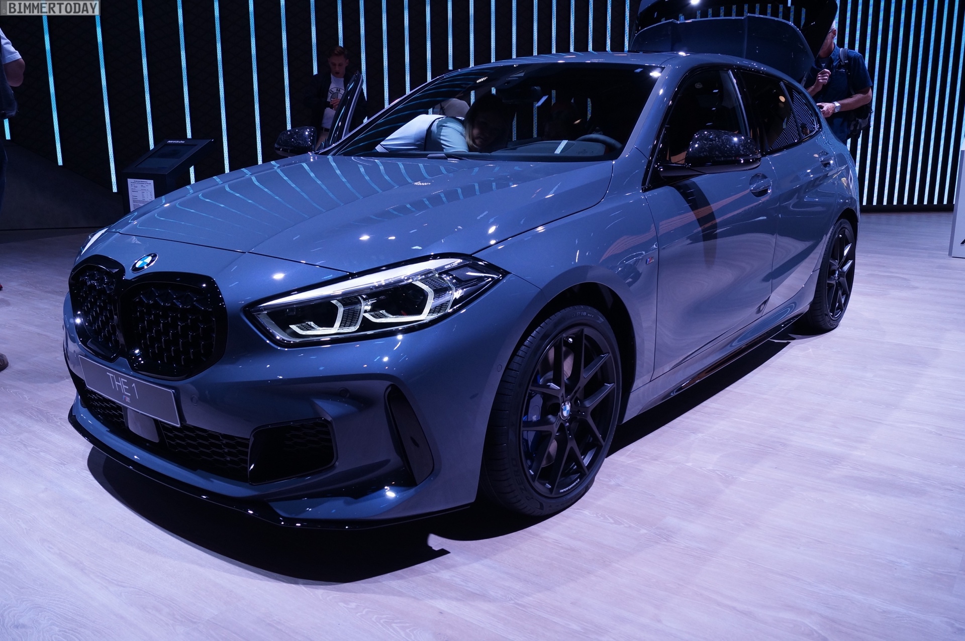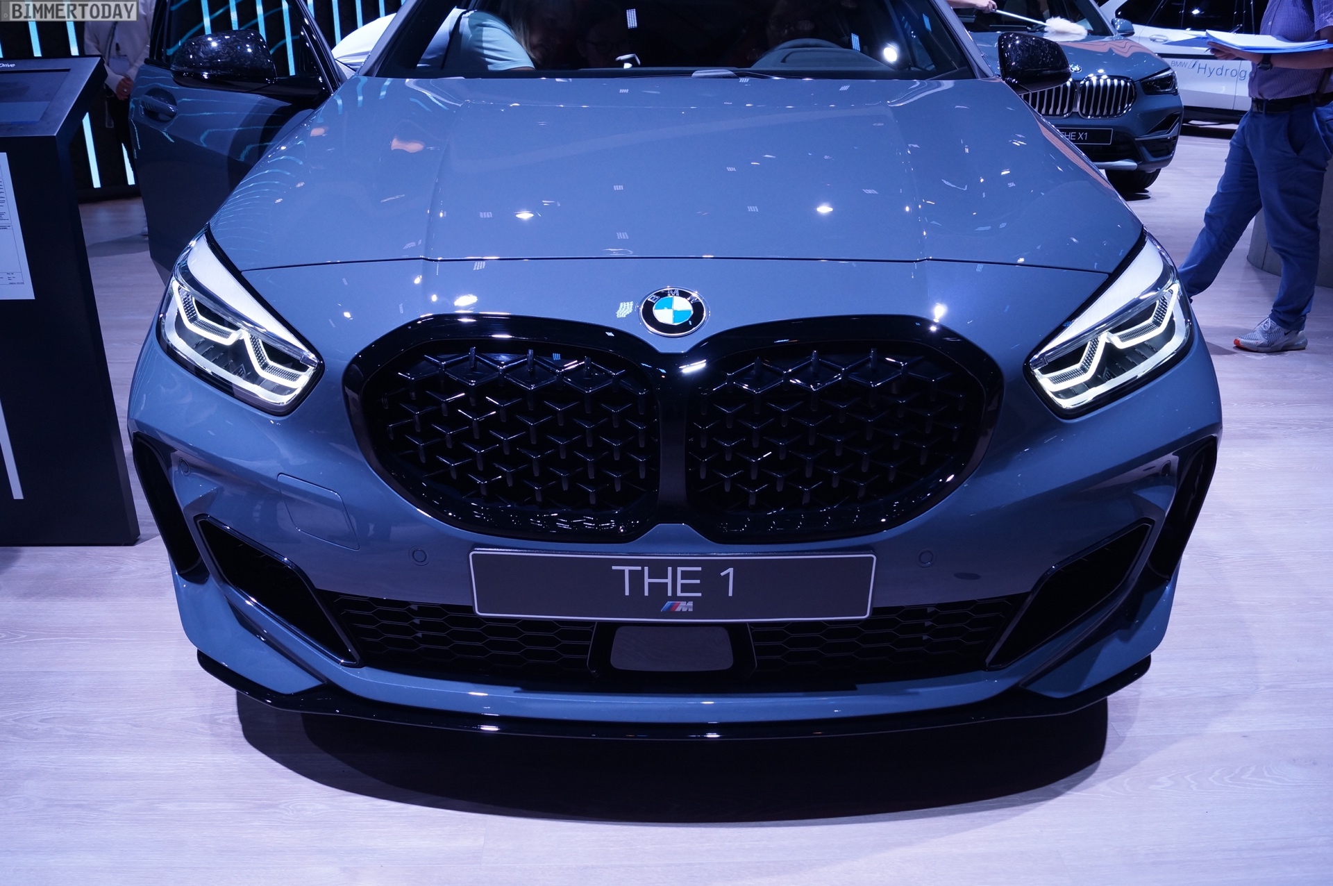 Der neue BMW 1er F40 präsentiert sich auf der IAA 2019 gleich in Form des Topmodells M135i xDrive. Die M Performance Variante der dritten 1er-Generation trägt die neue Lackierung Storm Bay Metallic, die erst vor wenigen Wochen mit dem X1 Facelift präsentiert wurde. Das Topmodell lässt sich vor allem an den Design-Akzenten in Cerium Grey erkennen, die den M135i klar von schwächer motorisierten 1ern mit M Sport-Paket unterscheiden.