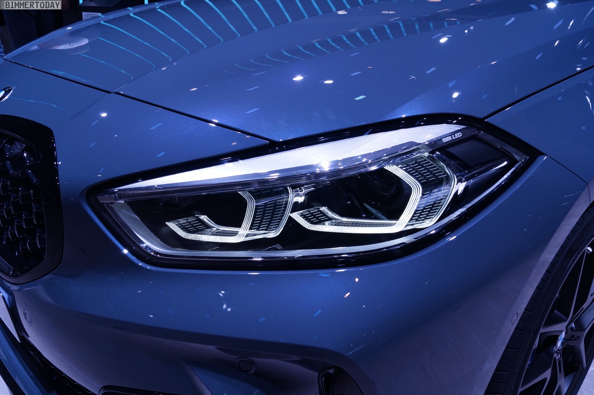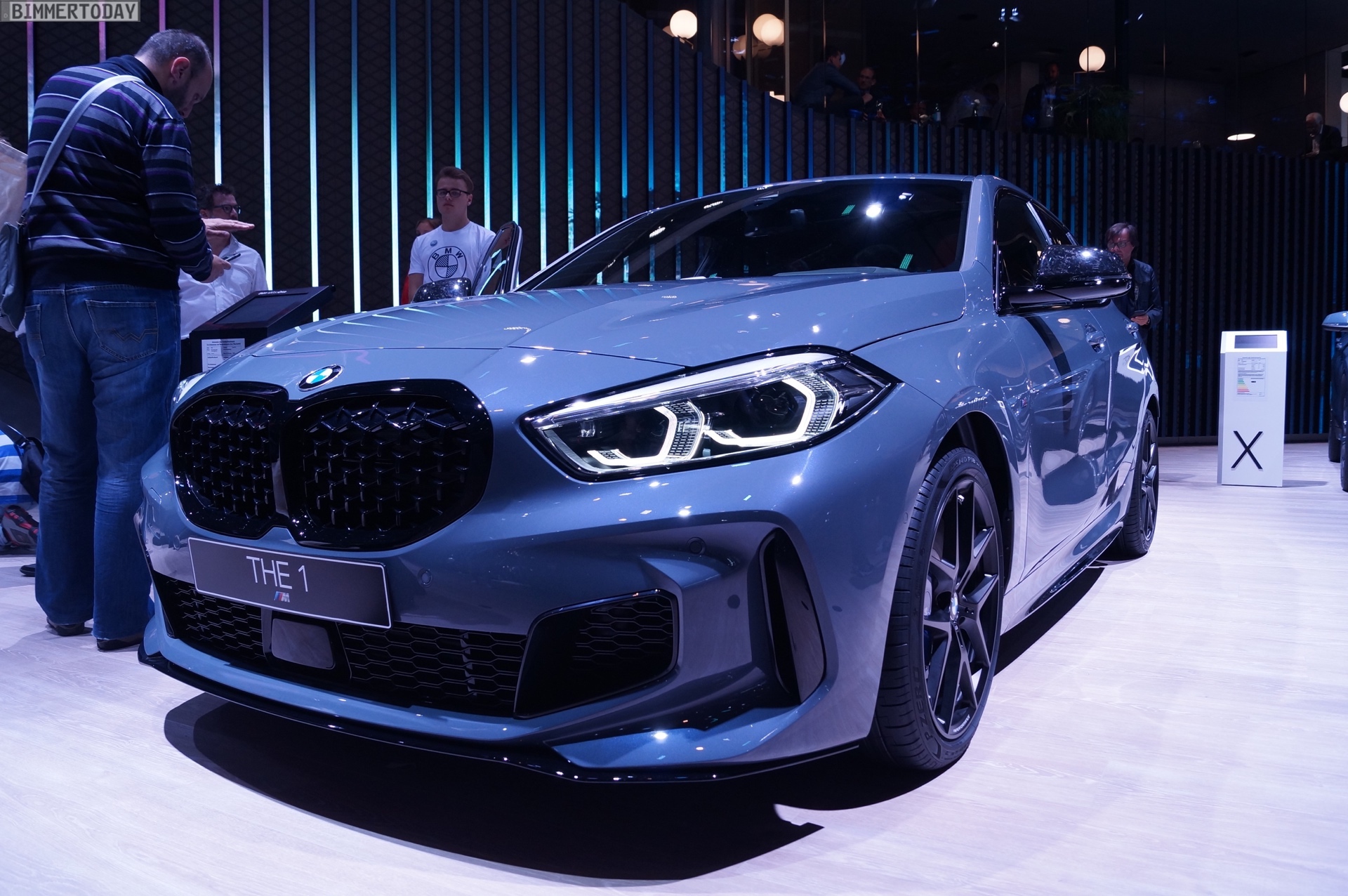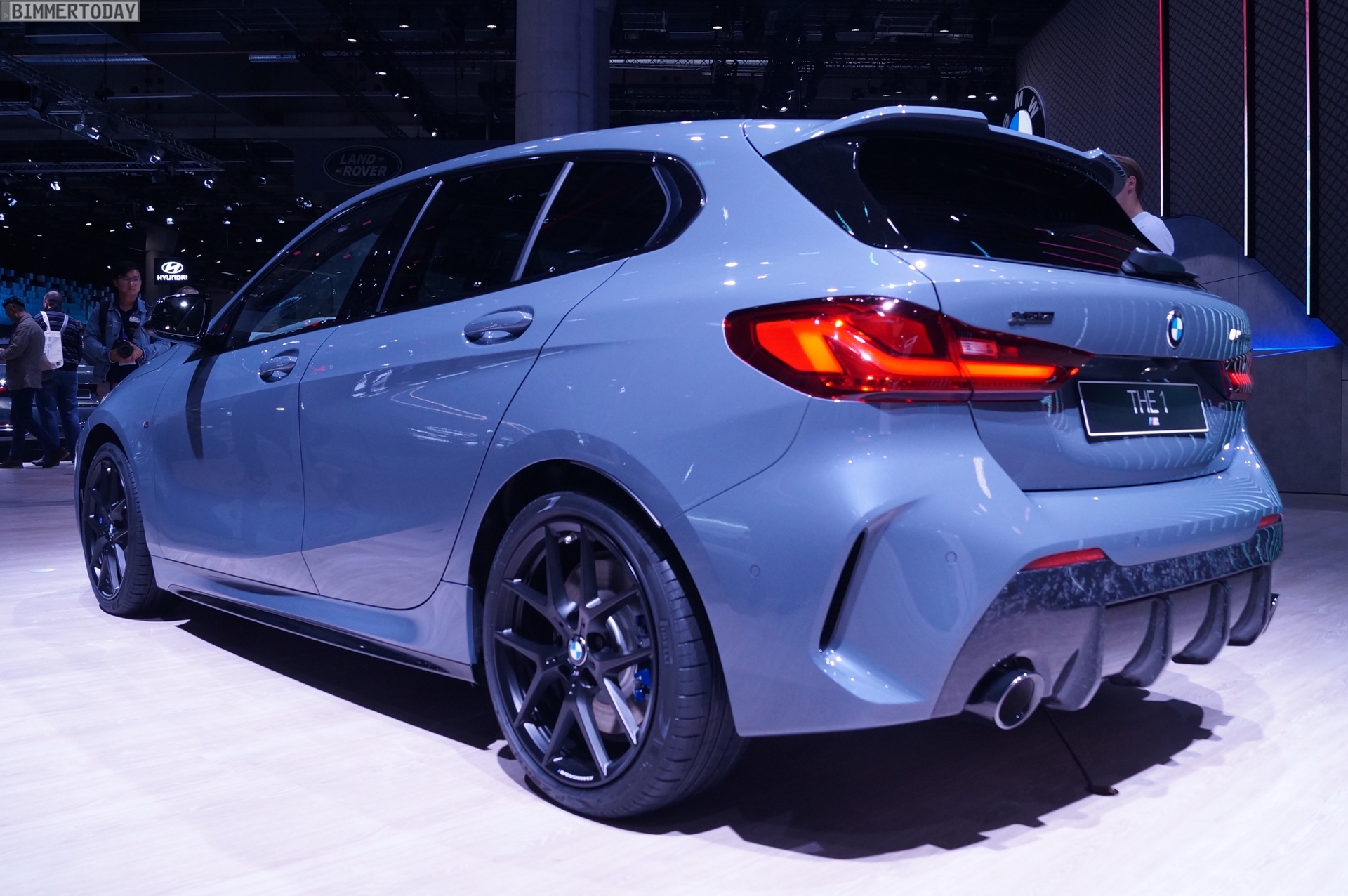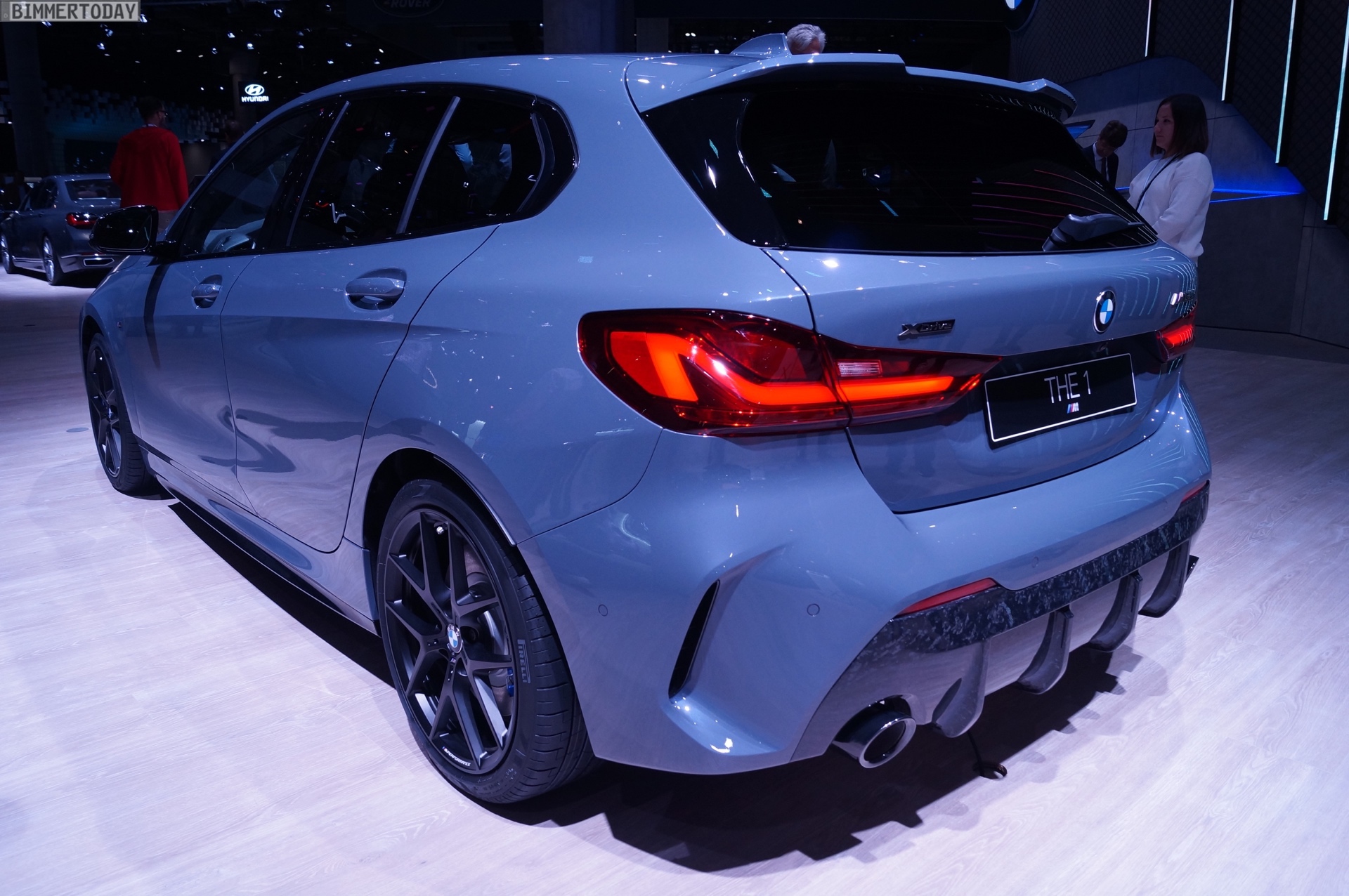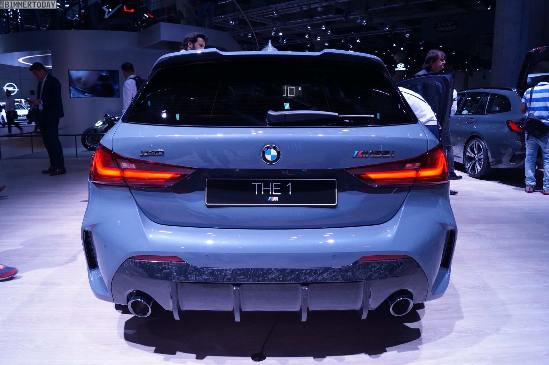 Der neue BMW 1er F40 präsentiert sich auf der IAA 2019 gleich in Form des Topmodells M135i xDrive. Die M Performance Variante der dritten 1er-Generation trägt die neue Lackierung Storm Bay Metallic, die erst vor wenigen Wochen mit dem X1 Facelift präsentiert wurde. Das Topmodell lässt sich vor allem an den Design-Akzenten in Cerium Grey erkennen, die den M135i klar von schwächer motorisierten 1ern mit M Sport-Paket unterscheiden.
