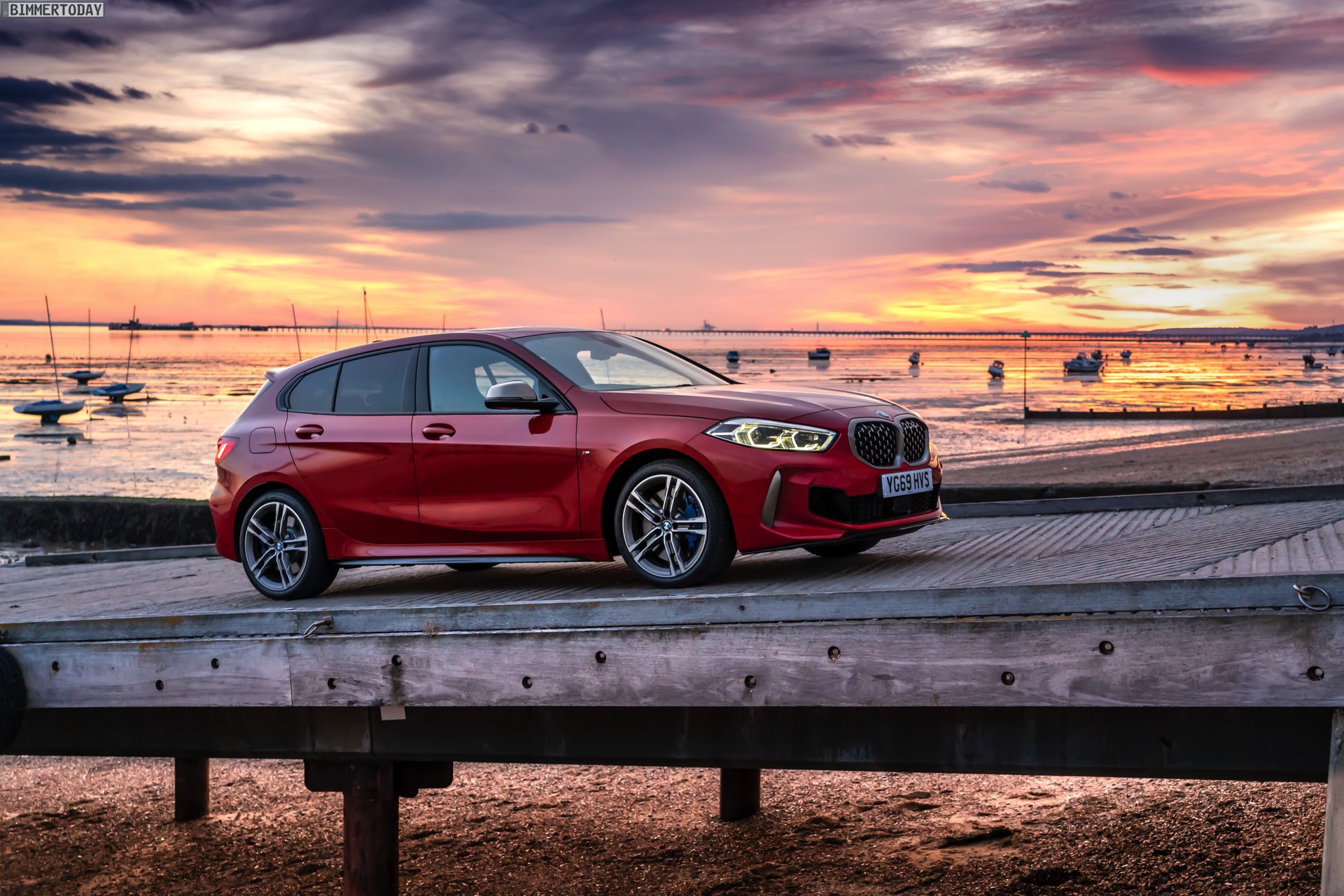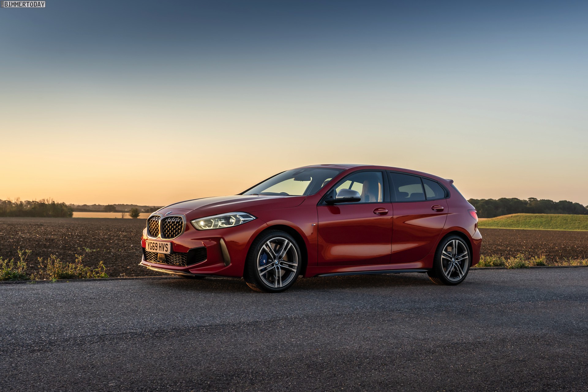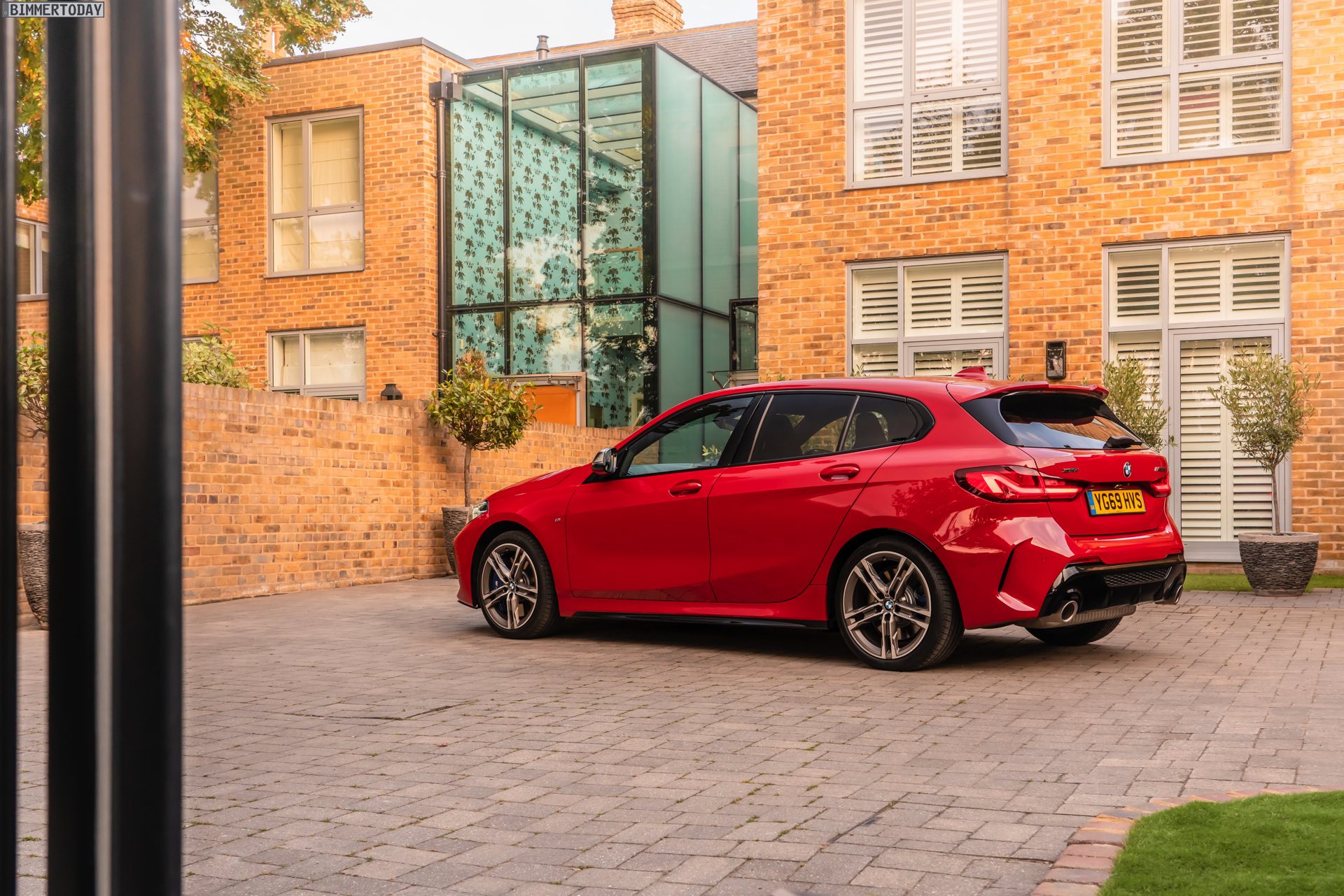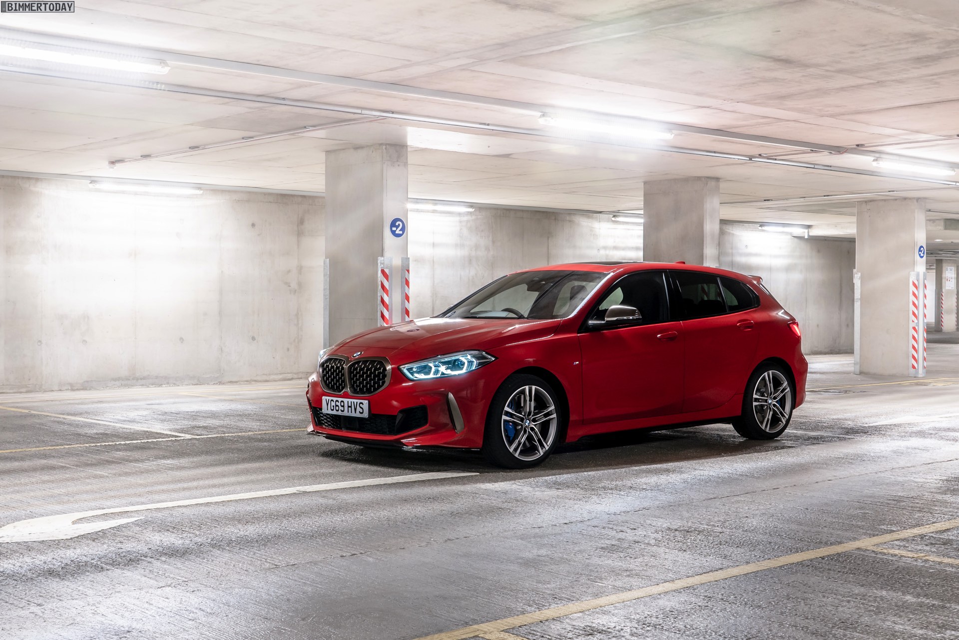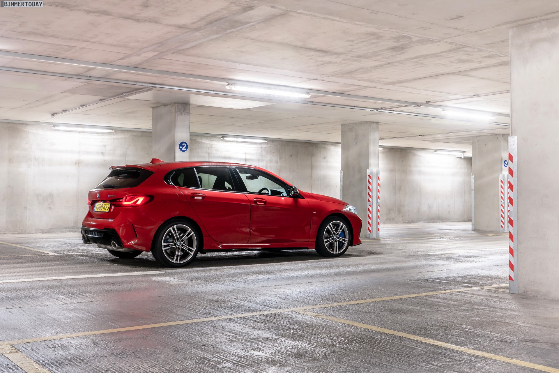 Aus England kommen die ersten Fotos des neuen BMW M135i F40 in Melbourne Rot Metallic. Das kräftige Rot steht dem Top-1er ausgezeichnet und zeigt uns die dritte Generation der Kompaktklasse aus München von einer ganz neuen Seite. Der gezeigte M Performance 1er trägt die serienmäßigen 18-Zoll Leichtmetallräder Doppelspeiche 556 M Bicolor, die mit ihren Akzenten in Cerium Grey dem Topmodell vorbehalten sind. Optional sind anders als beim Vorgänger auch 19-Zöller ab Werk erhältlich.