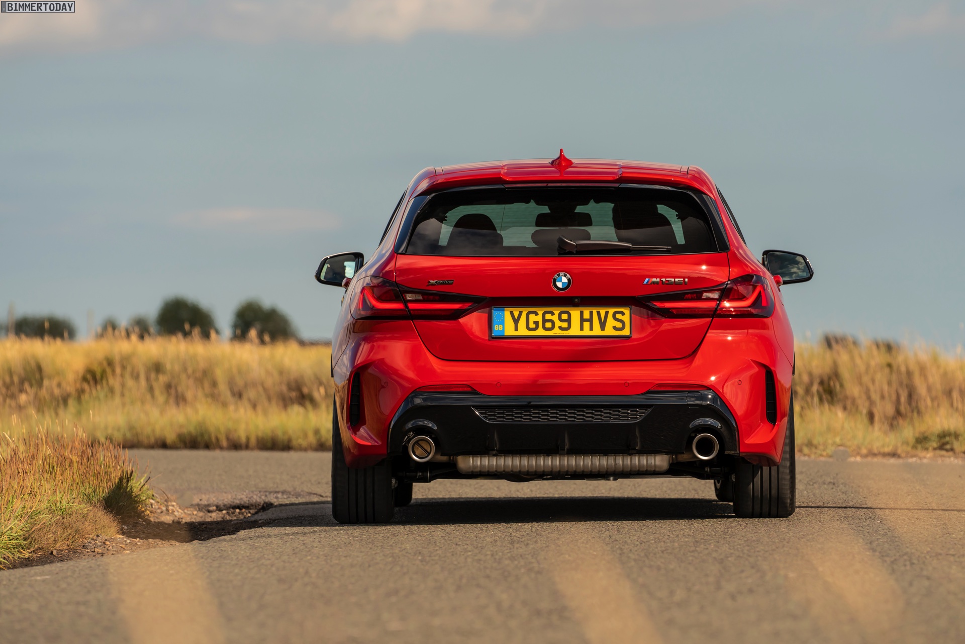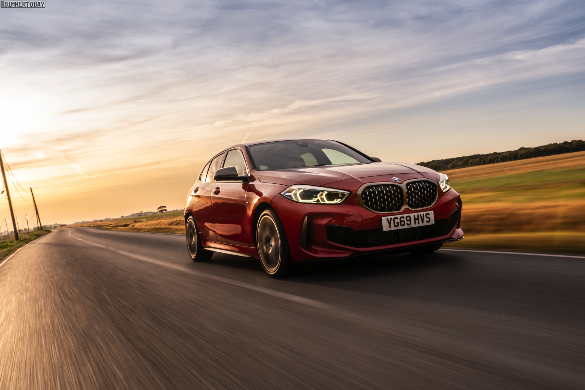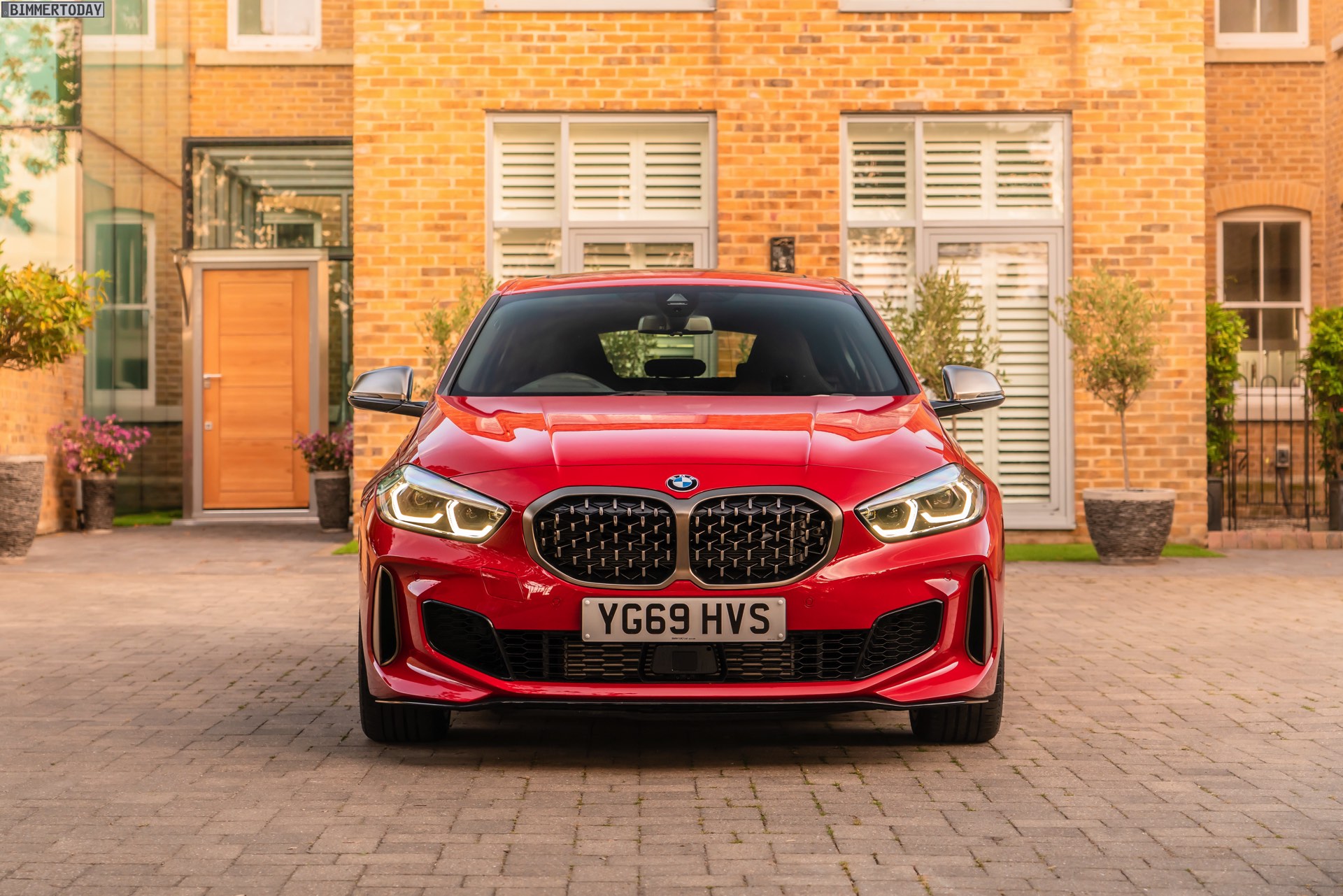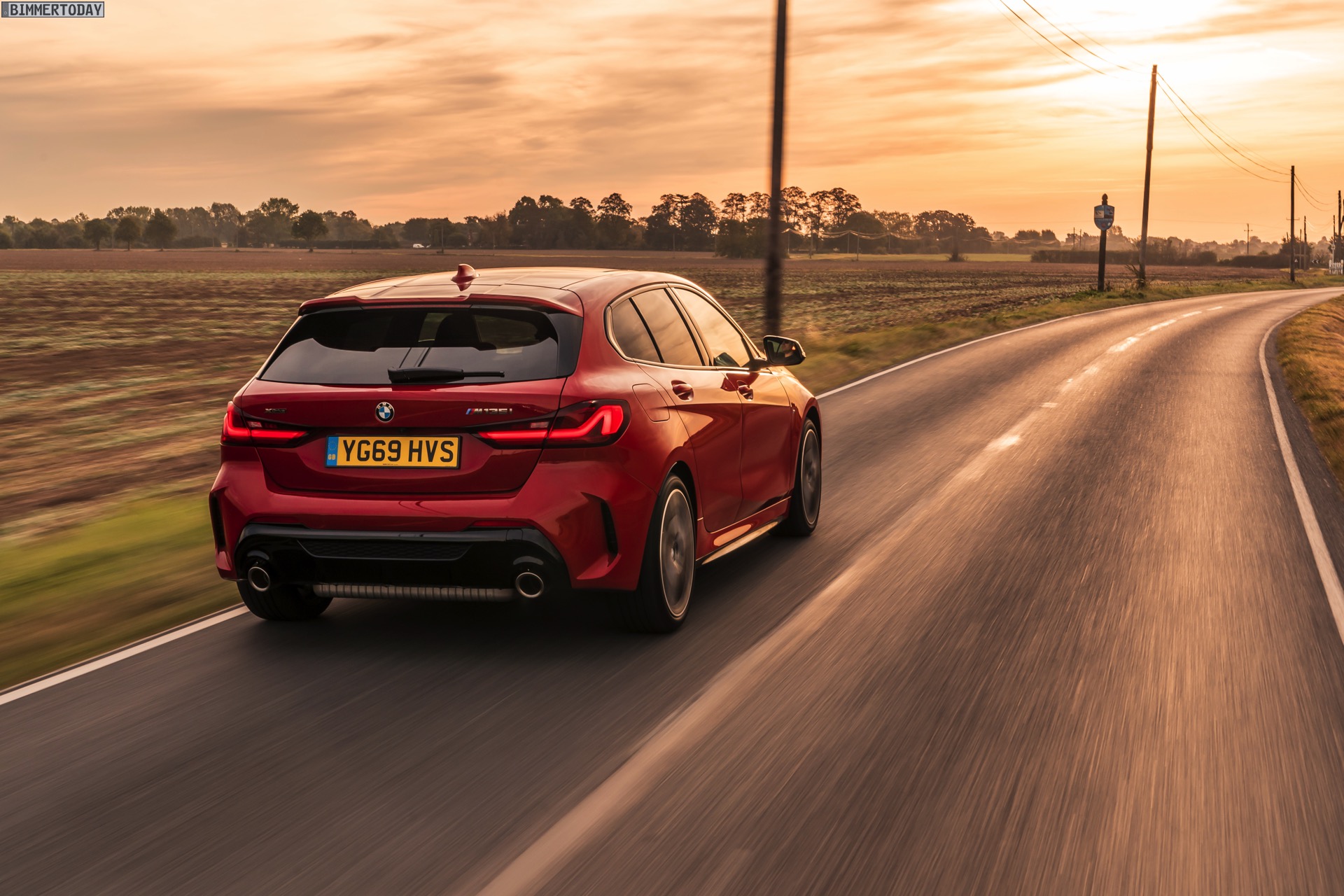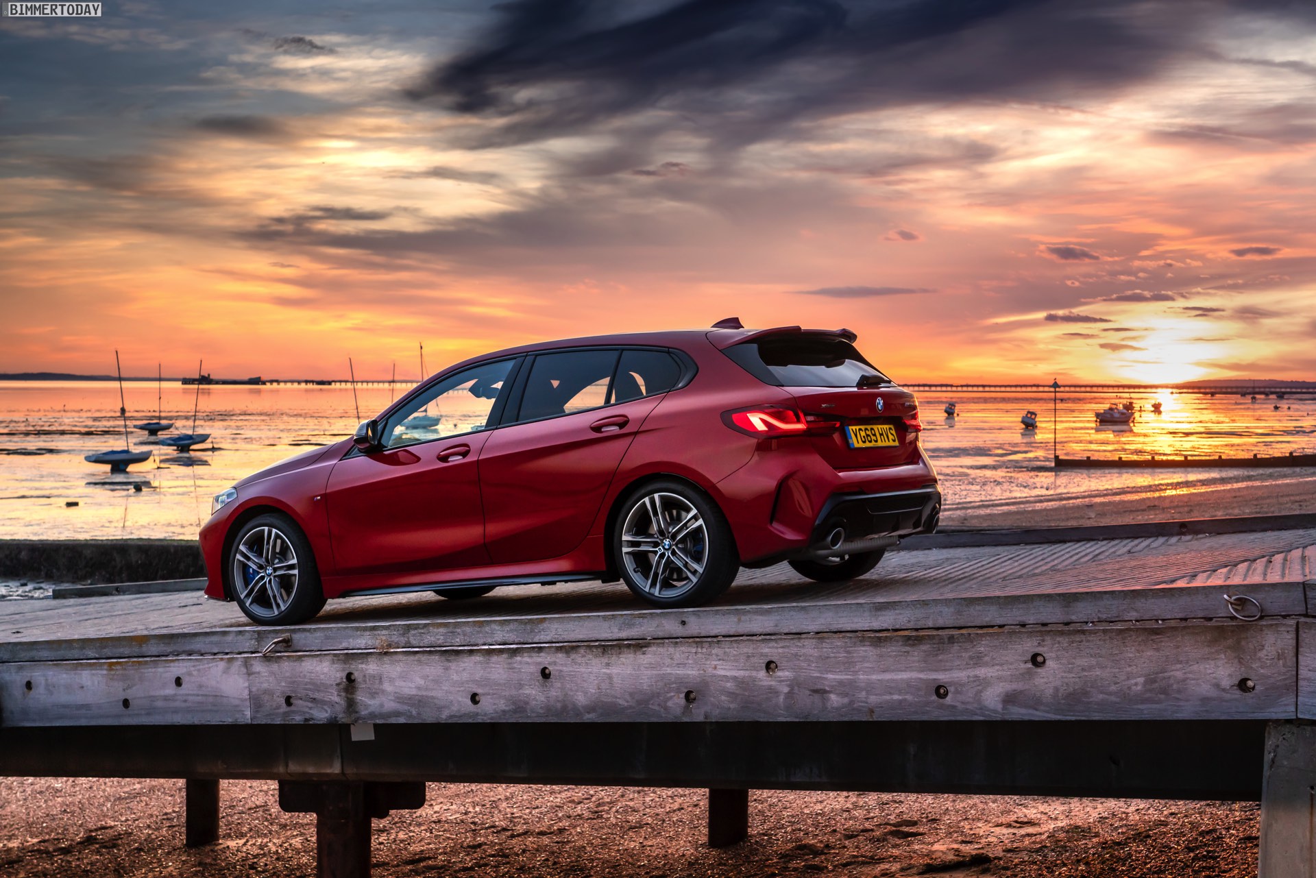 Aus England kommen die ersten Fotos des neuen BMW M135i F40 in Melbourne Rot Metallic. Das kräftige Rot steht dem Top-1er ausgezeichnet und zeigt uns die dritte Generation der Kompaktklasse aus München von einer ganz neuen Seite. Der gezeigte M Performance 1er trägt die serienmäßigen 18-Zoll Leichtmetallräder Doppelspeiche 556 M Bicolor, die mit ihren Akzenten in Cerium Grey dem Topmodell vorbehalten sind. Optional sind anders als beim Vorgänger auch 19-Zöller ab Werk erhältlich.