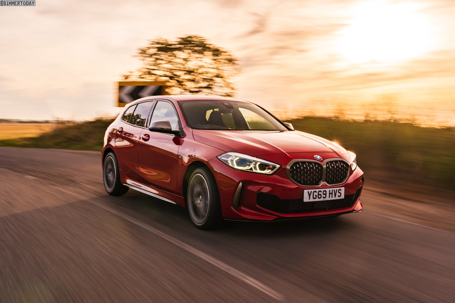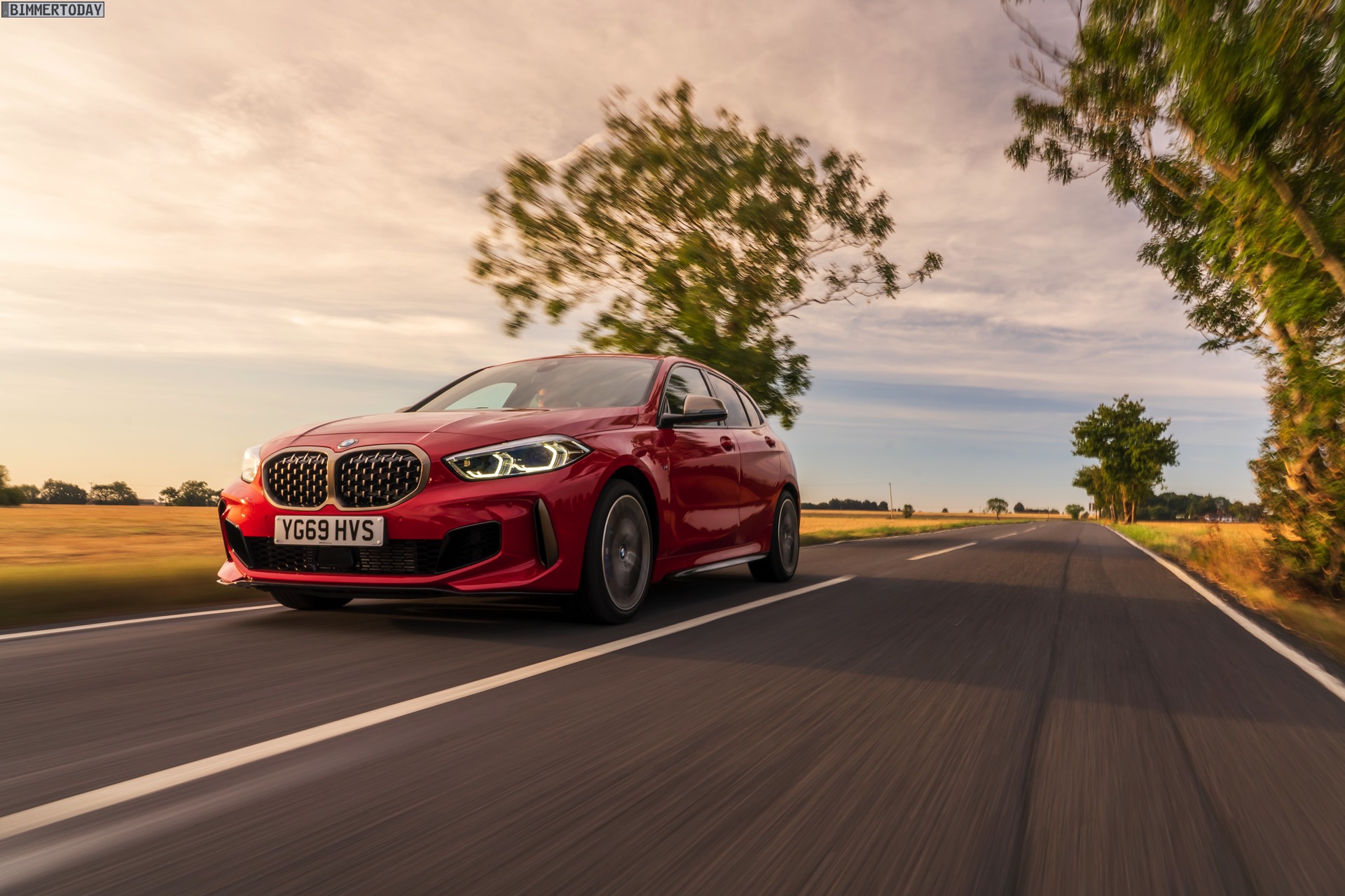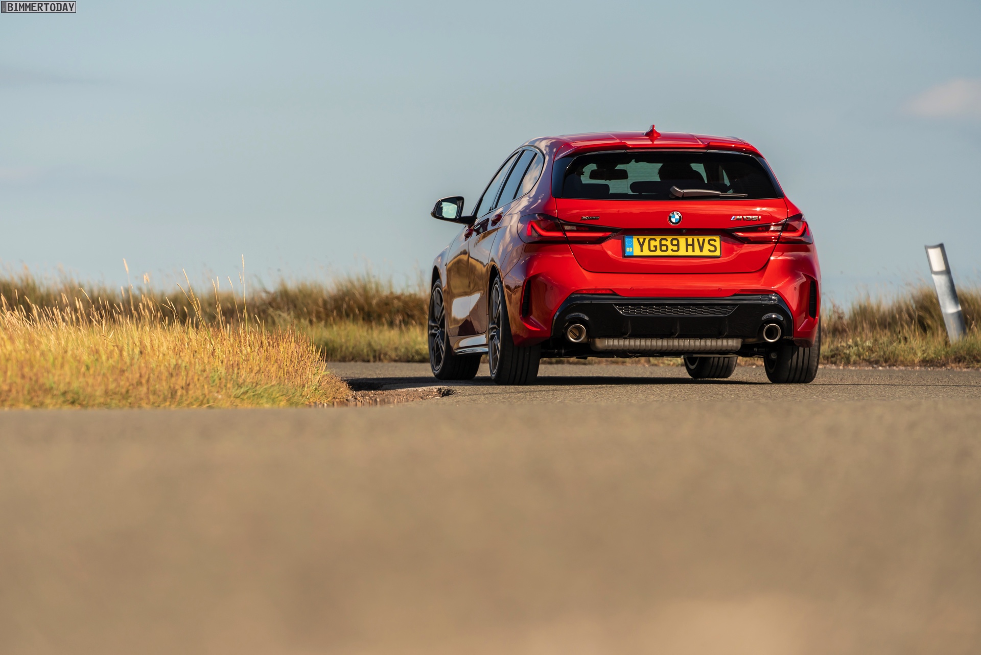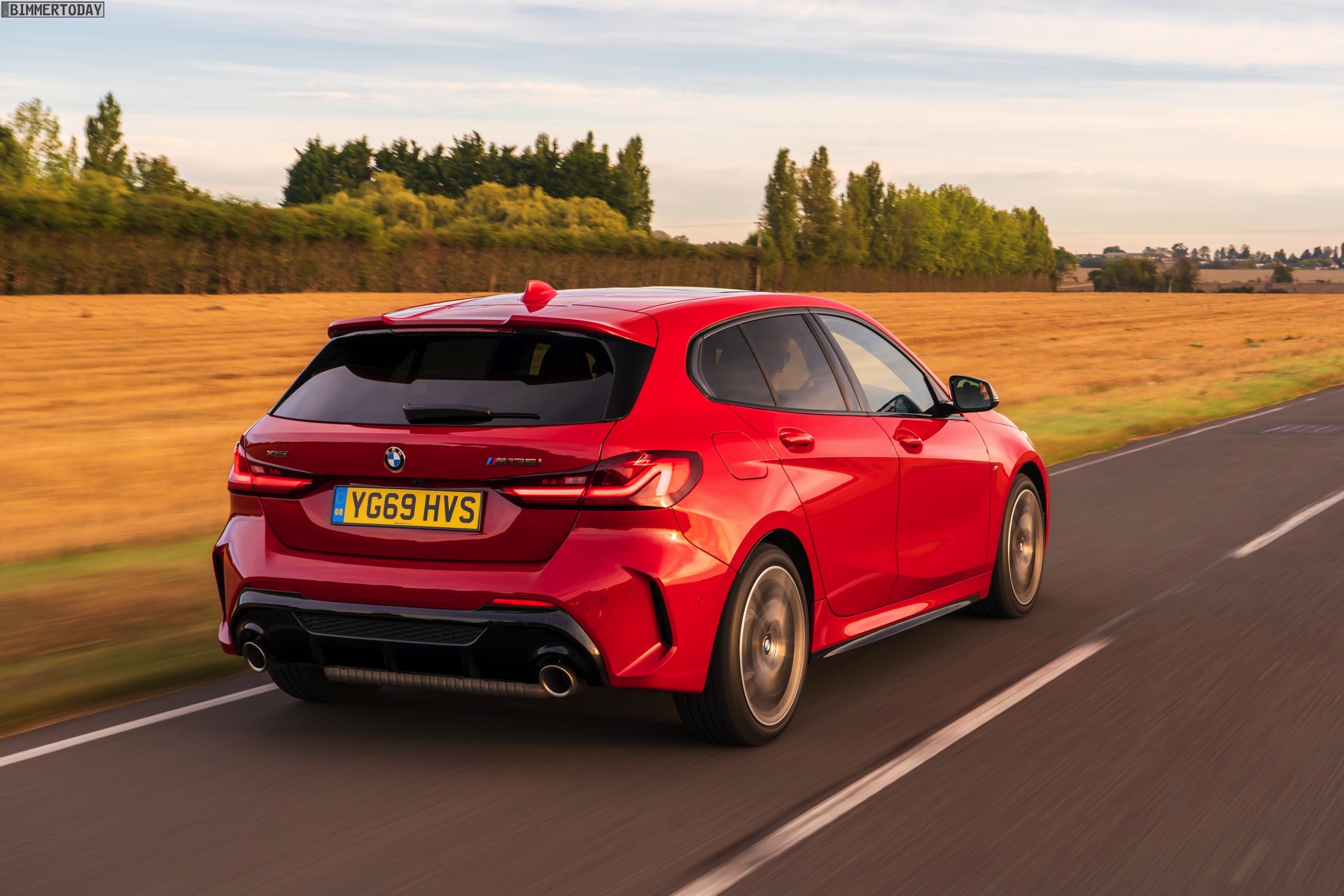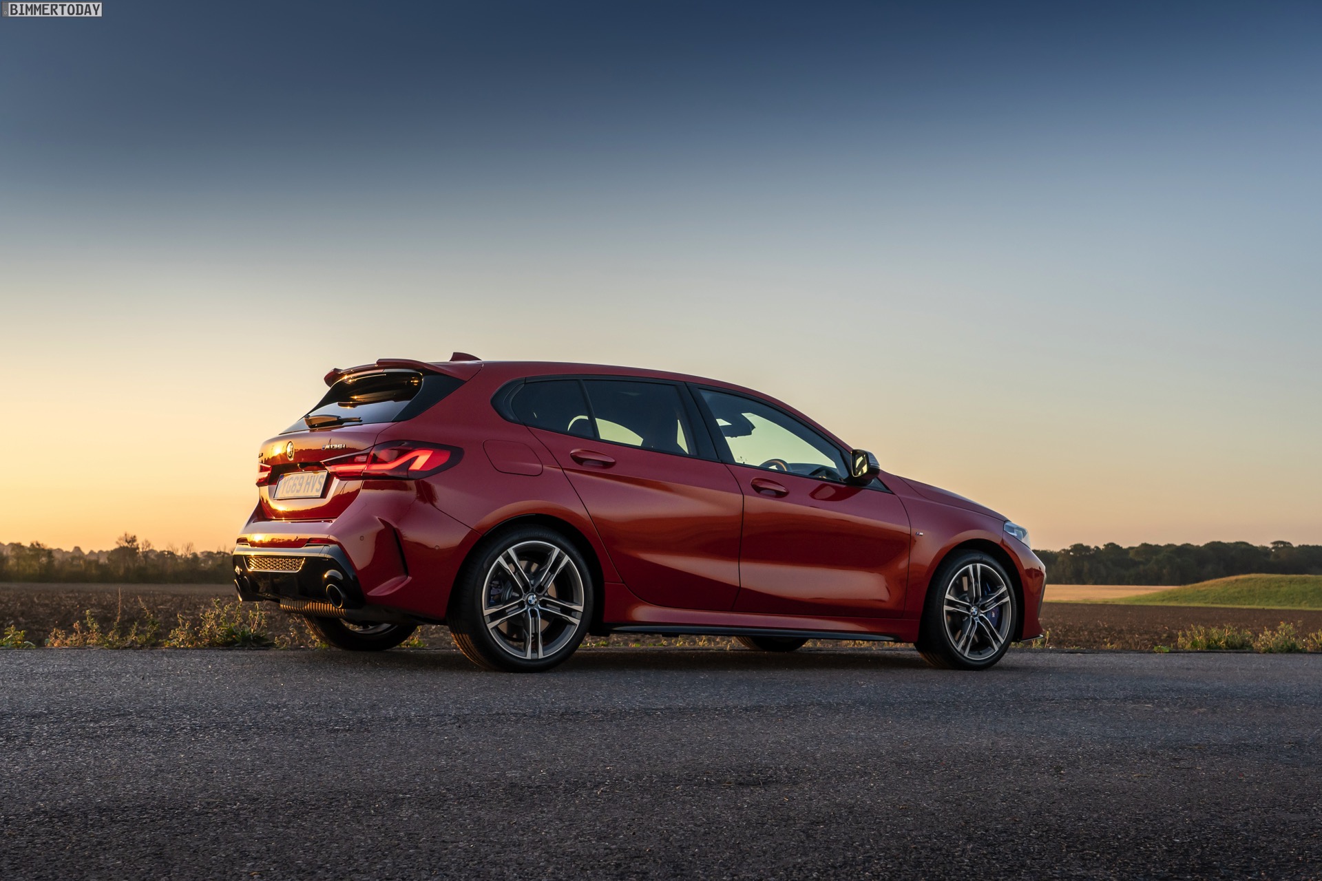 Aus England kommen die ersten Fotos des neuen BMW M135i F40 in Melbourne Rot Metallic. Das kräftige Rot steht dem Top-1er ausgezeichnet und zeigt uns die dritte Generation der Kompaktklasse aus München von einer ganz neuen Seite. Der gezeigte M Performance 1er trägt die serienmäßigen 18-Zoll Leichtmetallräder Doppelspeiche 556 M Bicolor, die mit ihren Akzenten in Cerium Grey dem Topmodell vorbehalten sind. Optional sind anders als beim Vorgänger auch 19-Zöller ab Werk erhältlich.