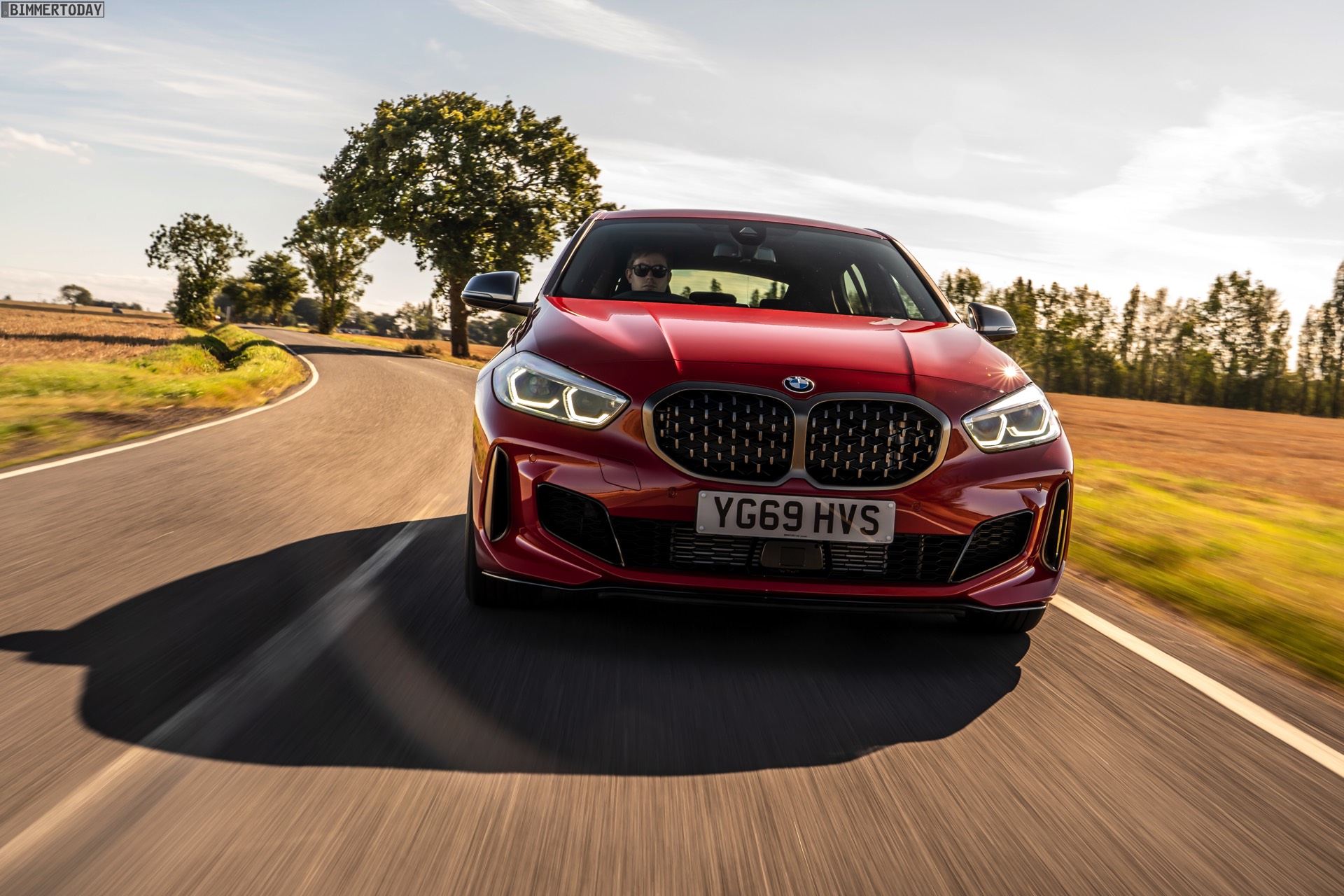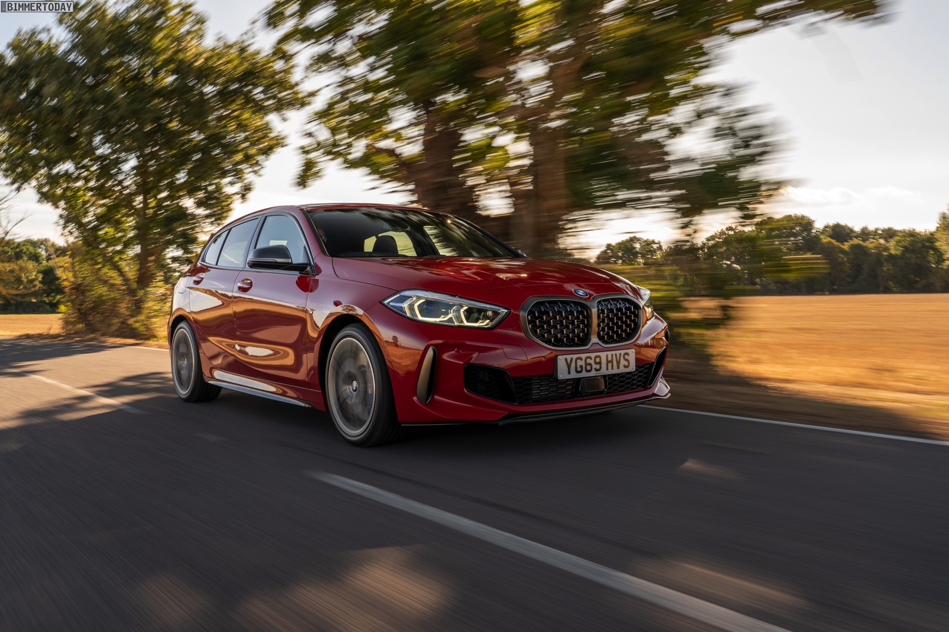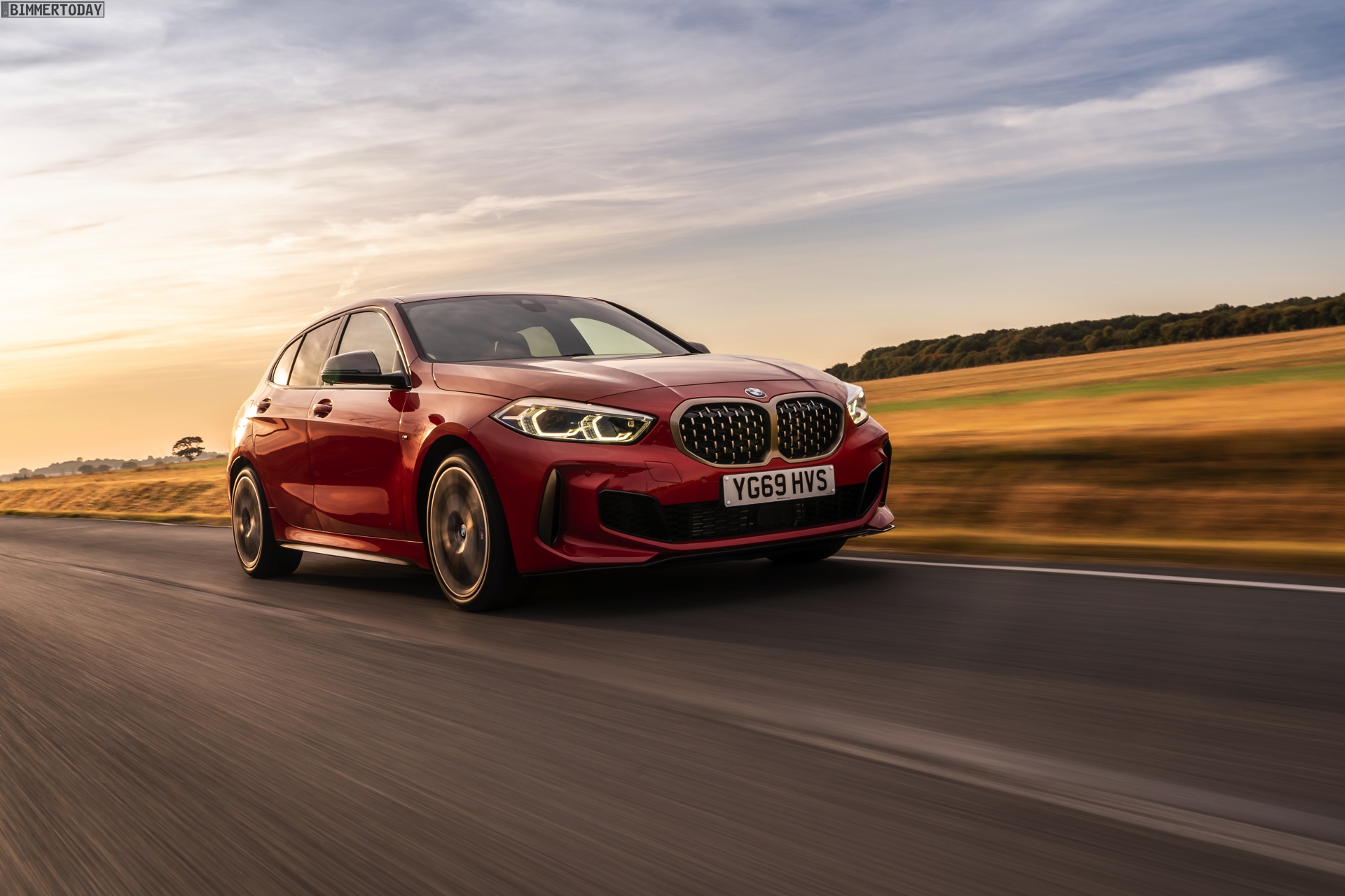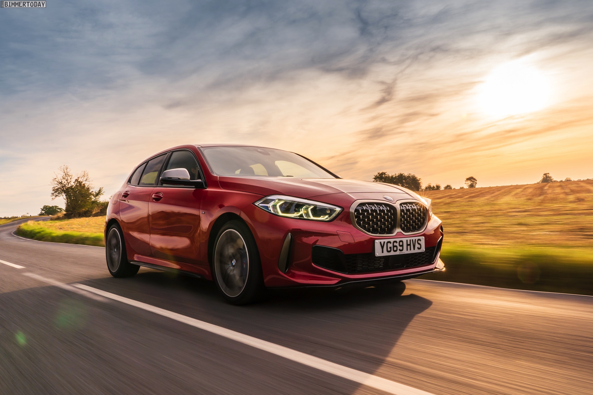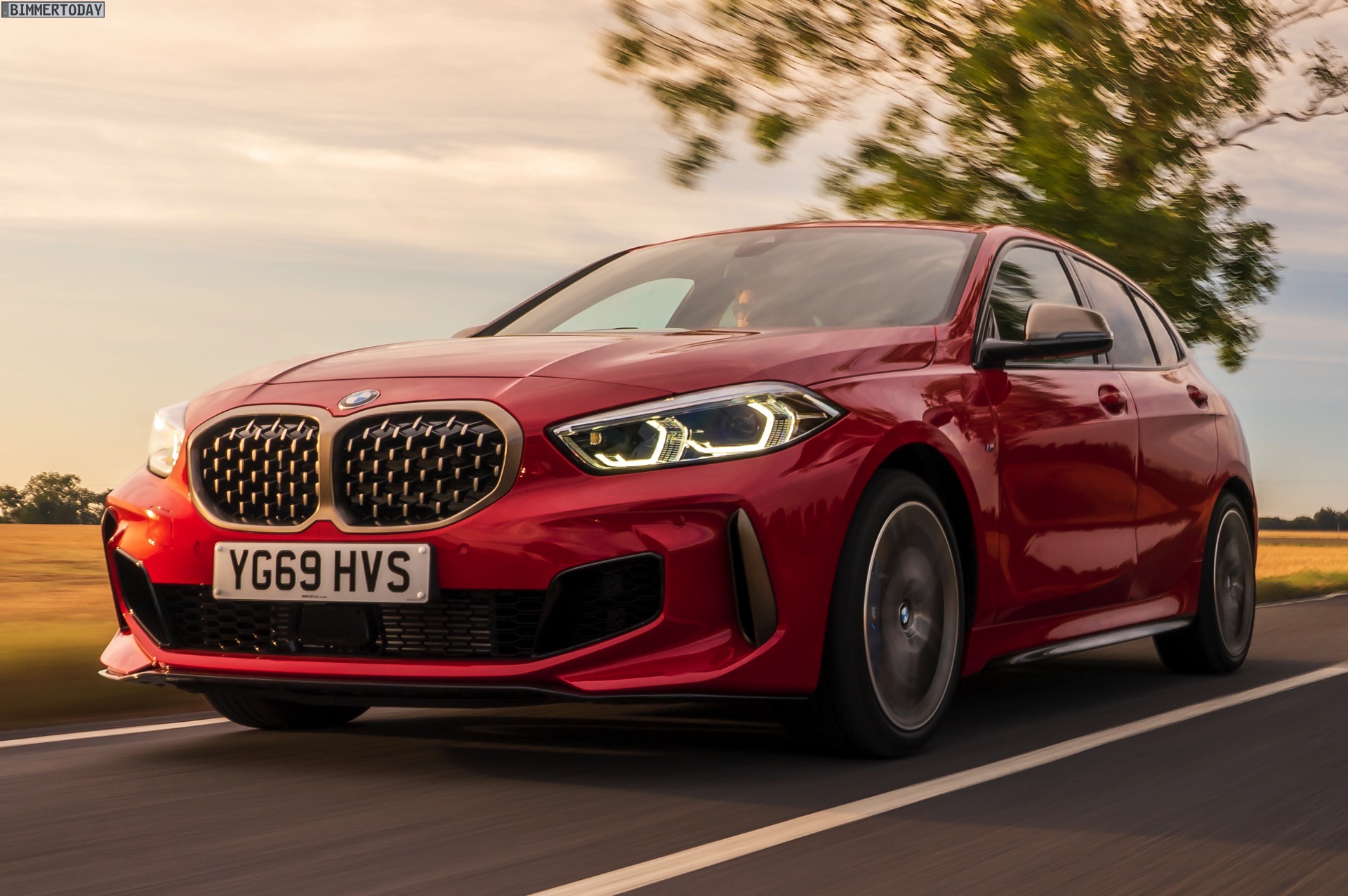 Aus England kommen die ersten Fotos des neuen BMW M135i F40 in Melbourne Rot Metallic. Das kräftige Rot steht dem Top-1er ausgezeichnet und zeigt uns die dritte Generation der Kompaktklasse aus München von einer ganz neuen Seite. Der gezeigte M Performance 1er trägt die serienmäßigen 18-Zoll Leichtmetallräder Doppelspeiche 556 M Bicolor, die mit ihren Akzenten in Cerium Grey dem Topmodell vorbehalten sind. Optional sind anders als beim Vorgänger auch 19-Zöller ab Werk erhältlich.