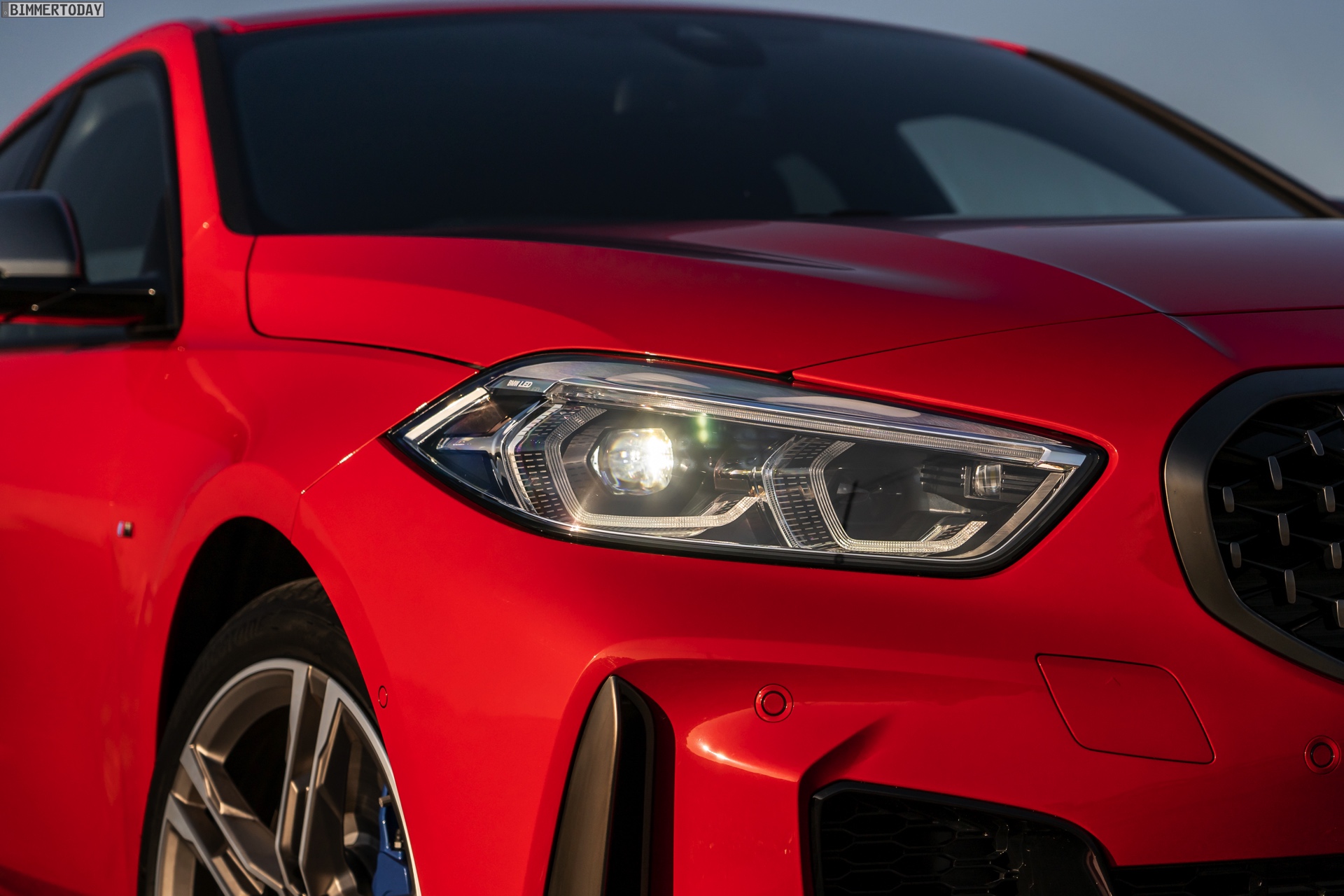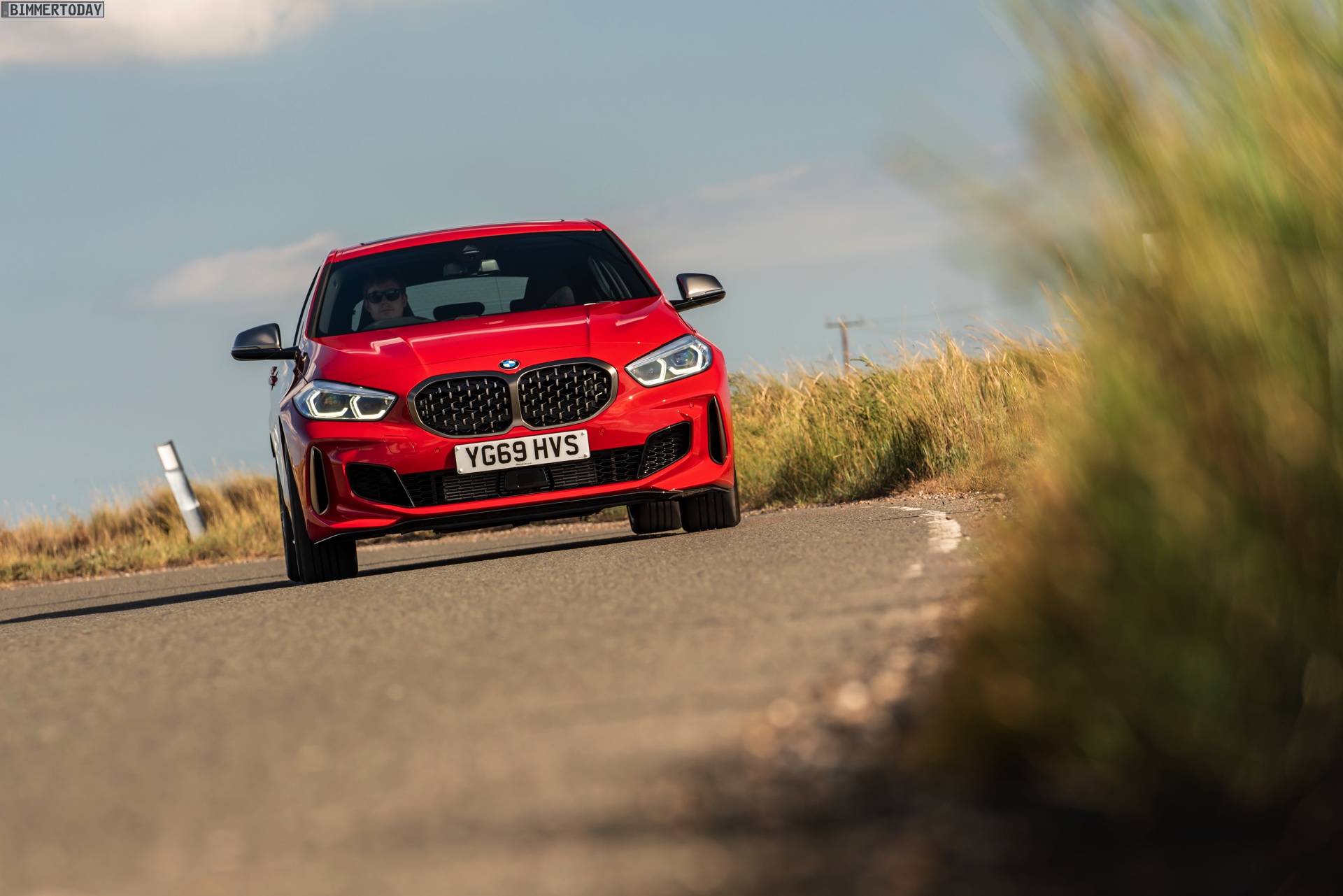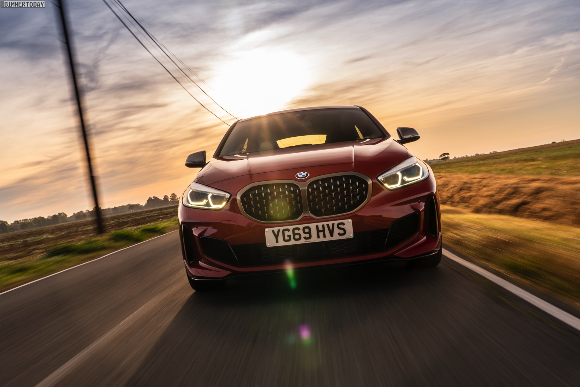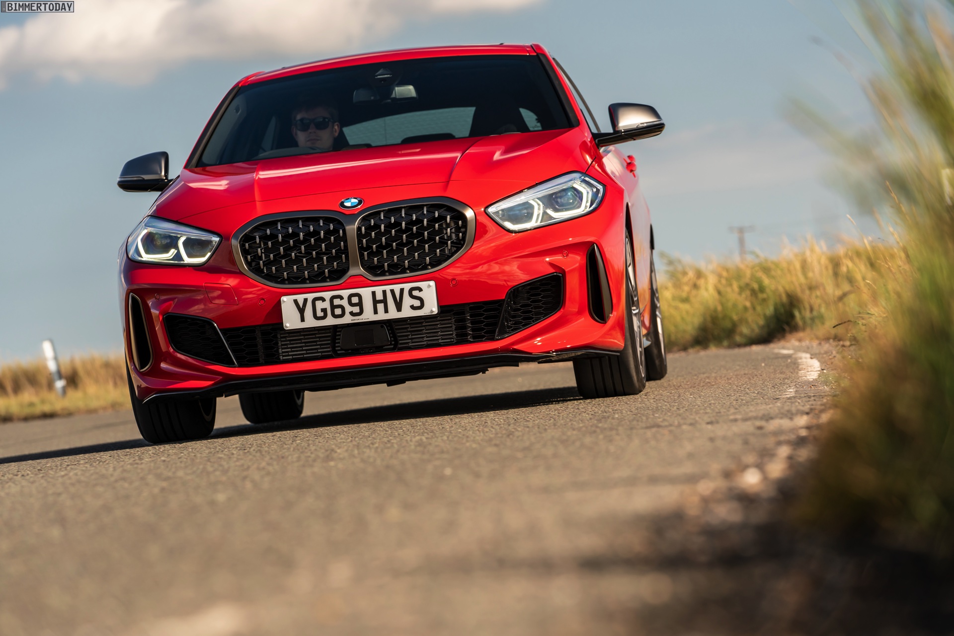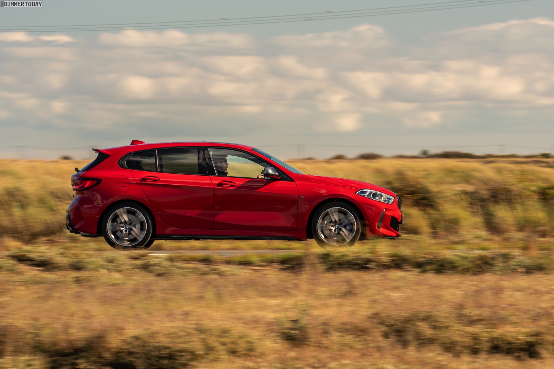 Aus England kommen die ersten Fotos des neuen BMW M135i F40 in Melbourne Rot Metallic. Das kräftige Rot steht dem Top-1er ausgezeichnet und zeigt uns die dritte Generation der Kompaktklasse aus München von einer ganz neuen Seite. Der gezeigte M Performance 1er trägt die serienmäßigen 18-Zoll Leichtmetallräder Doppelspeiche 556 M Bicolor, die mit ihren Akzenten in Cerium Grey dem Topmodell vorbehalten sind. Optional sind anders als beim Vorgänger auch 19-Zöller ab Werk erhältlich.