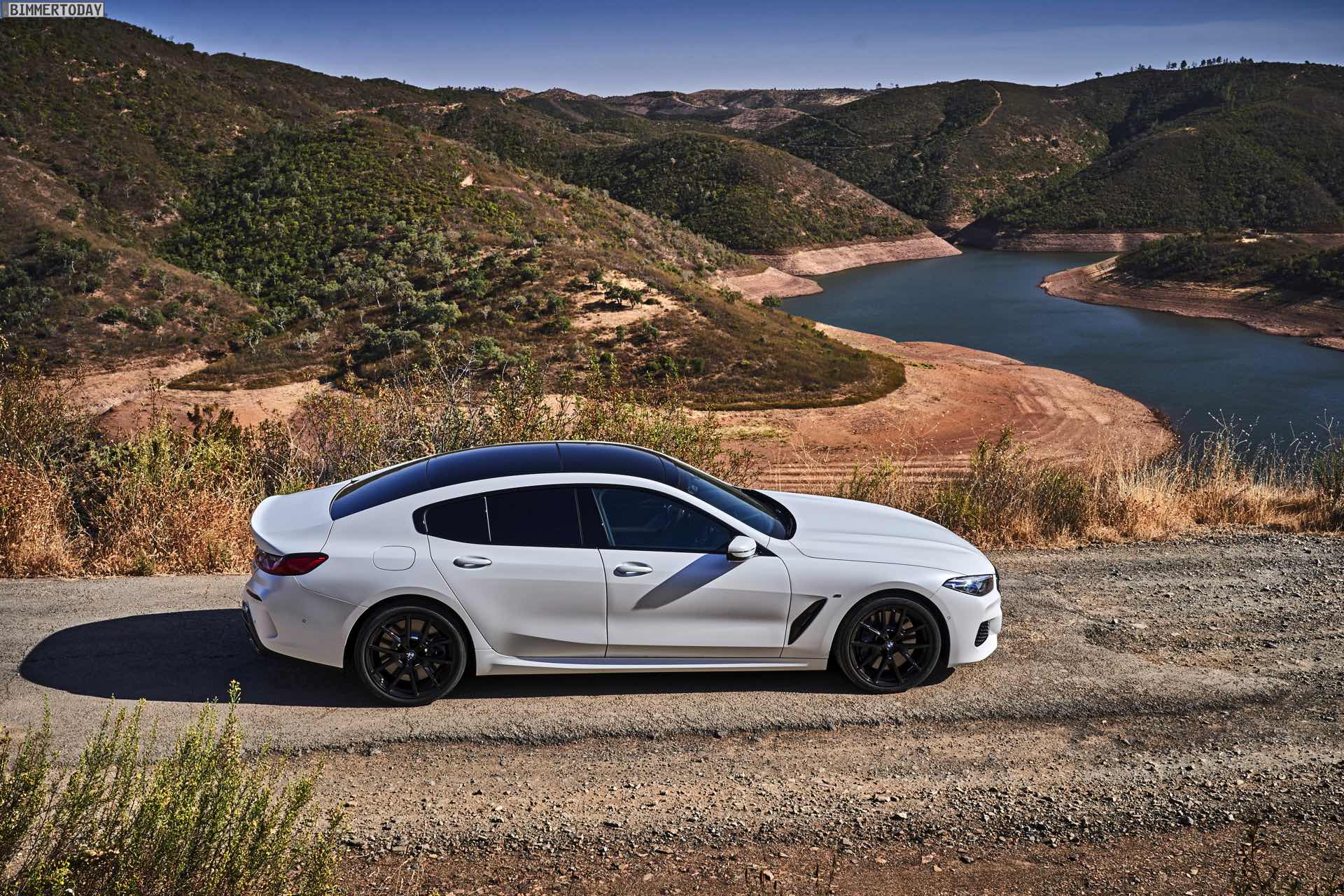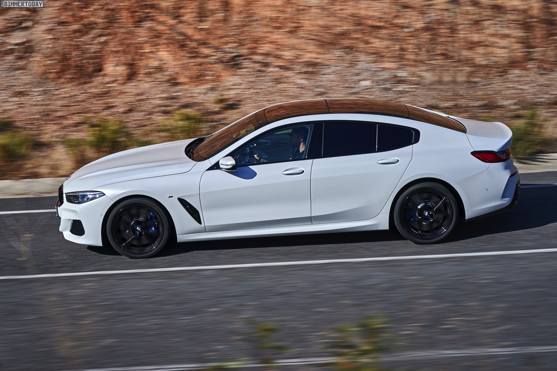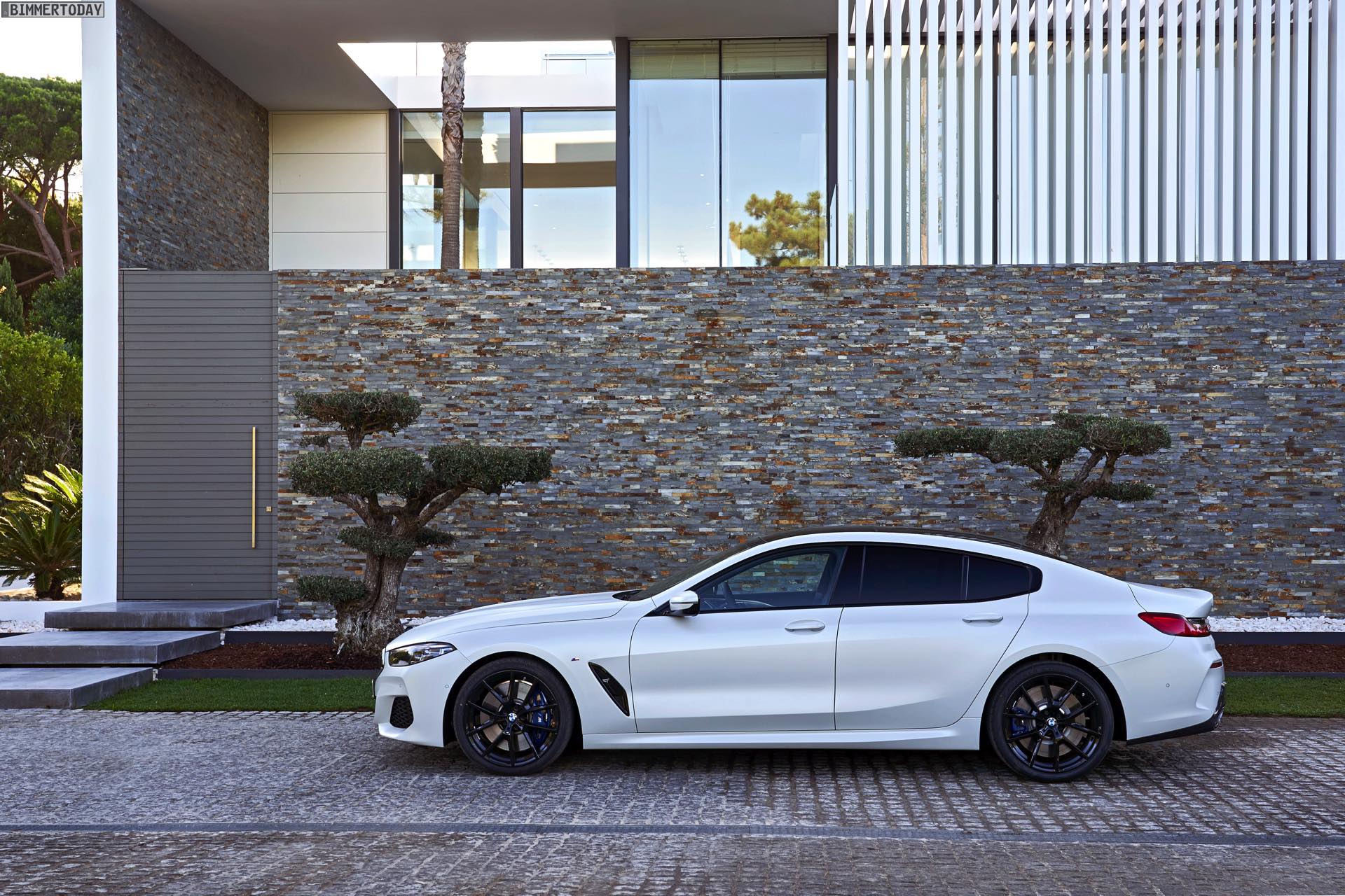 Im Vergleich zu den zweitürigen Varianten ist das BMW 8er Gran Coupé rund 23 Zentimeter länger, der Radstand übertrifft Coupé und Cabrio um satte 21 Zentimeter. Dennoch bleibt das viertürige Luxus-Coupé bei Länge und Radstand knapp fünf Zentimeter unterhalb des 7er-Niveaus. Noch wichtiger dürfte den Kunden sein, dass der Maßanzug des 8er Gran Coupés völlig anders geschnitten ist als der einer 7er Limousine: Der komplette Vorderwagen vermittelt die selbstbewusste Aggressivität eines Sportwagens, die Seitenansicht sprüht vor Dynamik und das Heck versucht gar nicht erst, die extrem breite Spur zu verstecken.