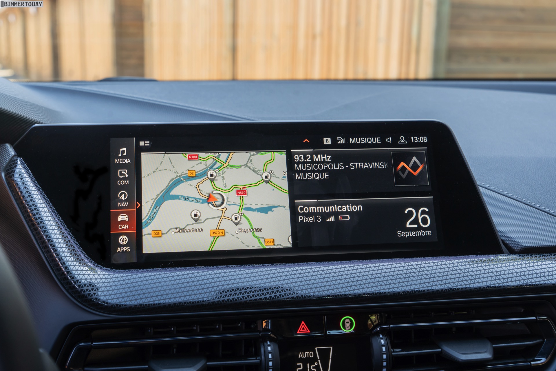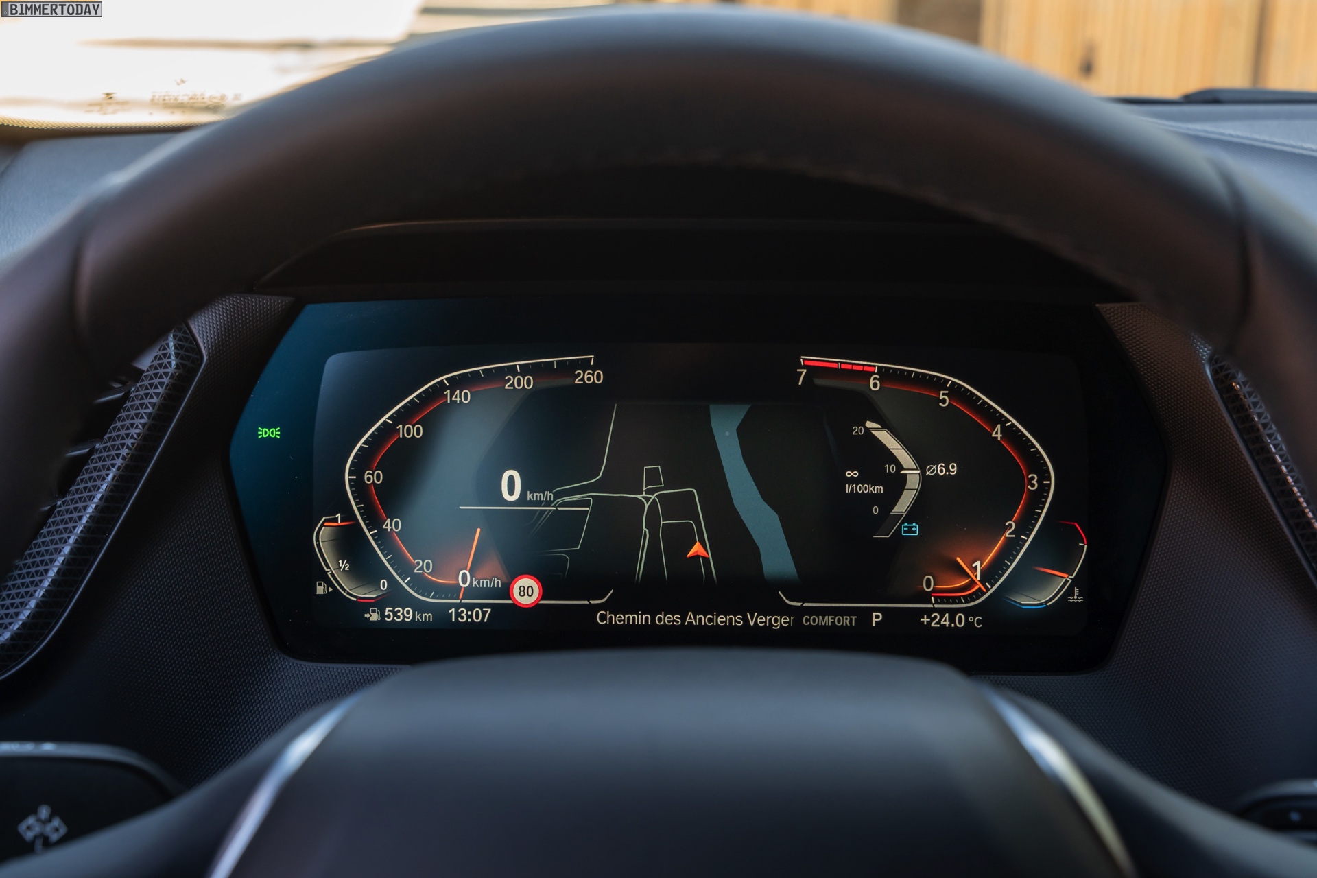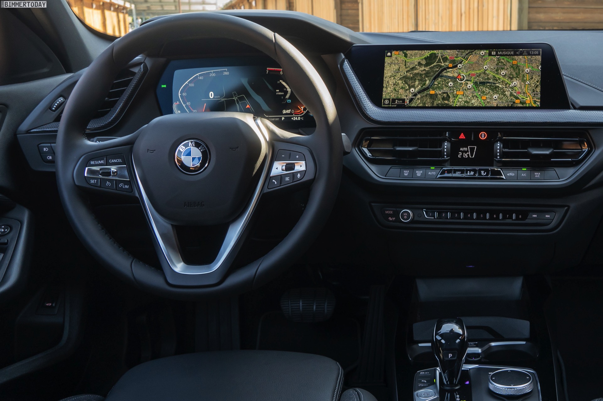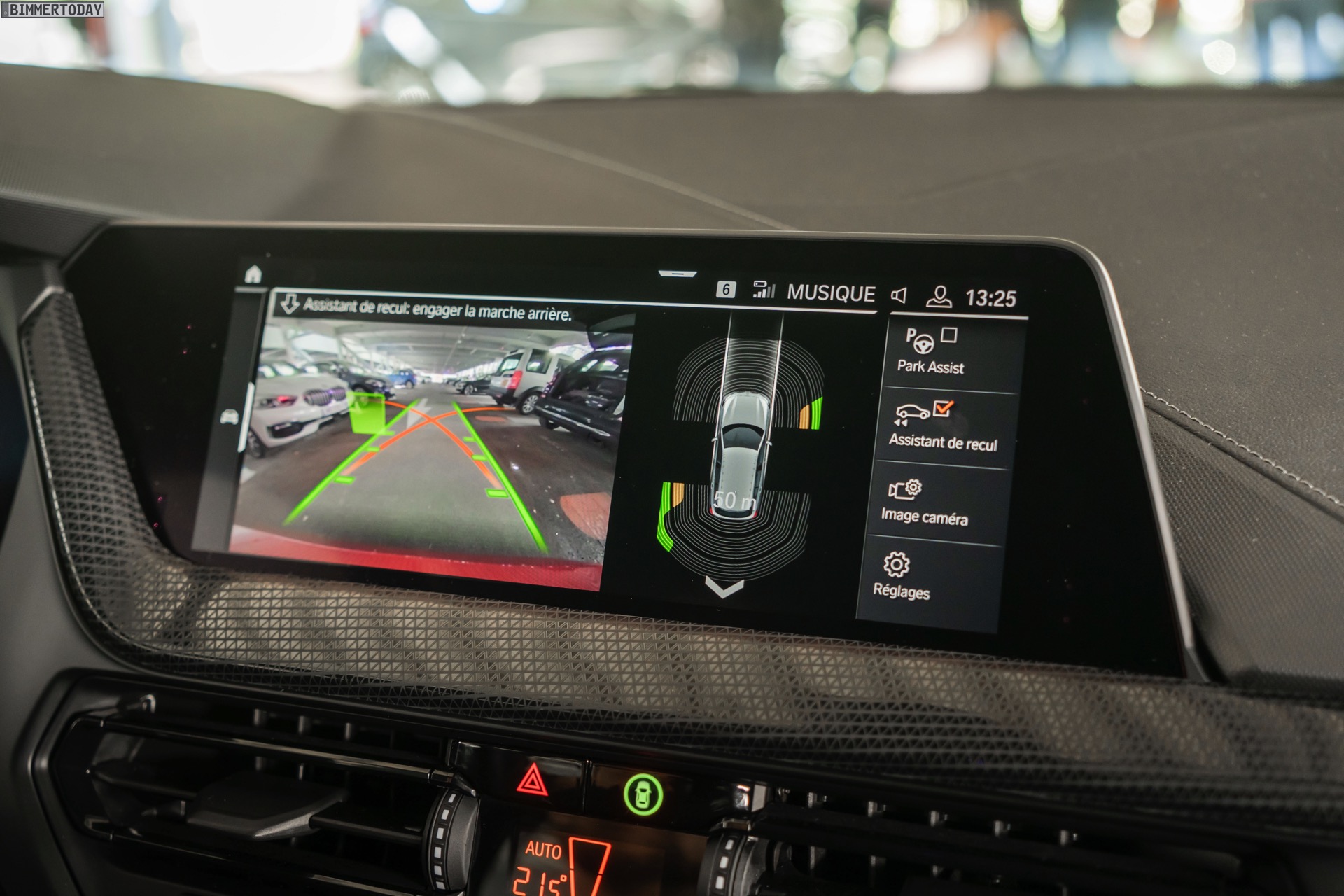 Auf den Fotos aus Frankreich sehen wir den roten BMW 1er F40 mit einem hochwertig ausgestatteten Innenraum, wobei vor allem das BMW Live Cockpit Professional mit seinen zwei 10,25 Zoll großen Displays ins Auge fällt. Ebenfalls verbaut ist das Parking Assistant Paket mit Rückfahr-Assistent, der auf Knopfdruck die letzten mit bis zu 35 km/h gefahrenen 50 Meter wieder zurückfährt.