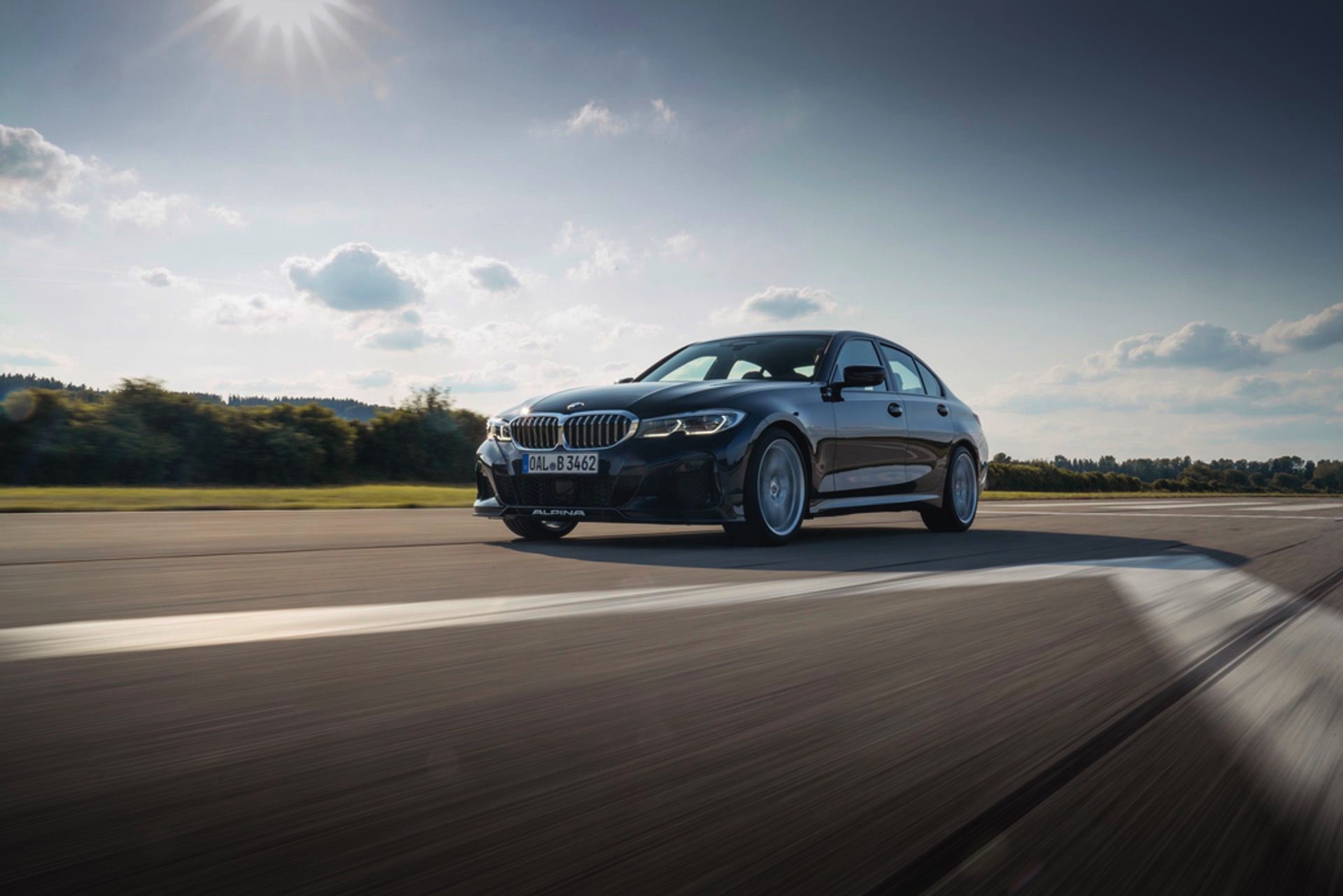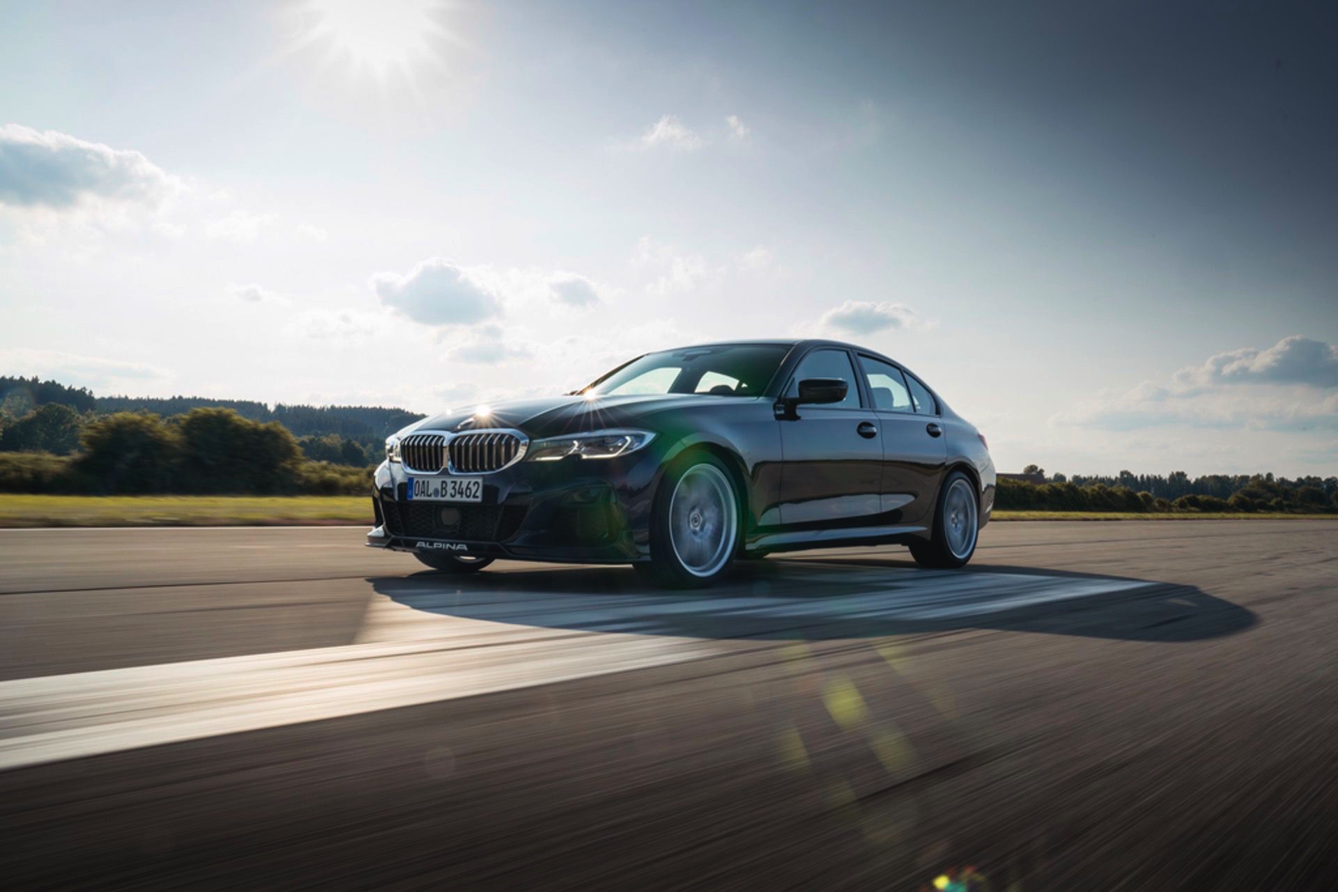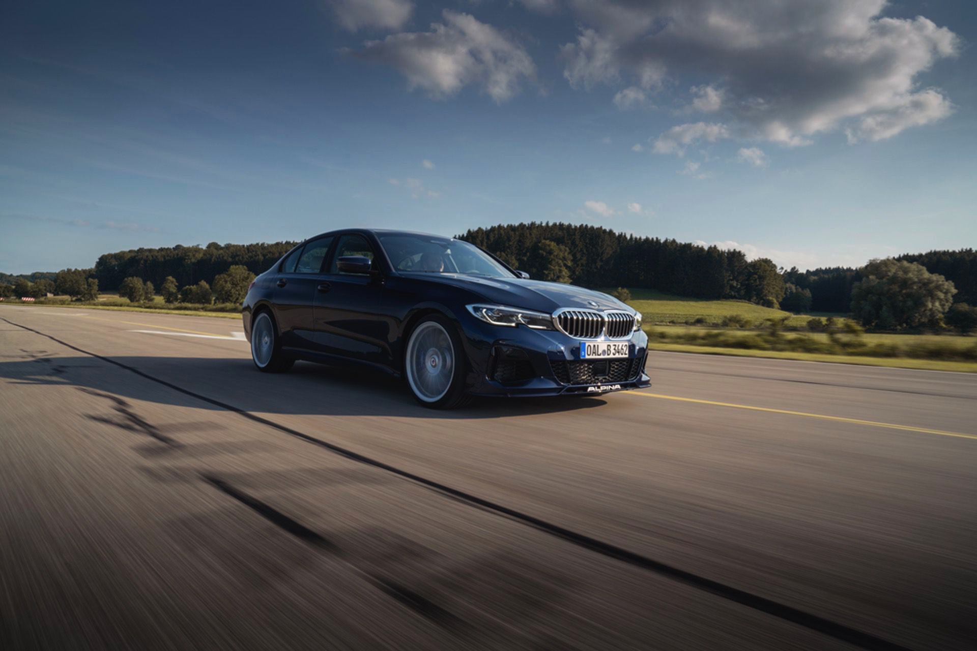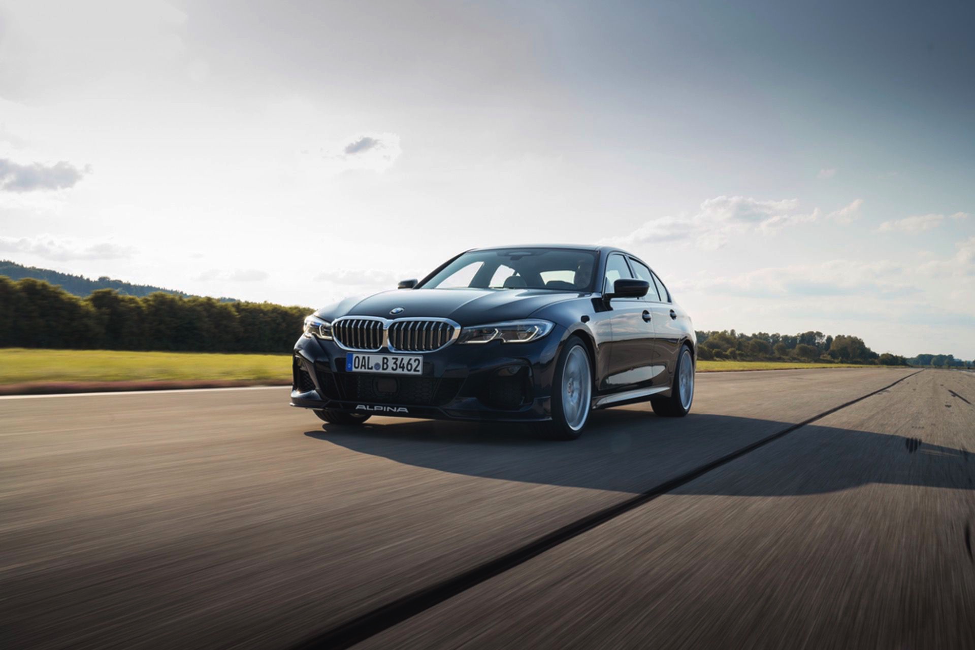 Für die zum Antrieb passende Querdynamik sorgt das von Alpina in Zusammenarbeit mit Eibach entwickelte Sportfahrwerk, das sich unter anderem durch Zusatzfedern und großzügiger dimensionierte Stabilisatoren grundlegend vom Serienfahrwerk unterscheidet. Anders als im gewöhnlichen 3er steht Alpina-Kunden auch der Modus Comfort+ zur Verfügung, der für ein besonders sanftes Abrollverhalten sorgt. Dynamiker können sich außerdem über die variable Sportlenkung, das serienmäßige Sperrdifferenzial an der Hinterachse und die gemeinsam mit Pirelli entwickelten Ultra-High-Performance-Reifen freuen.