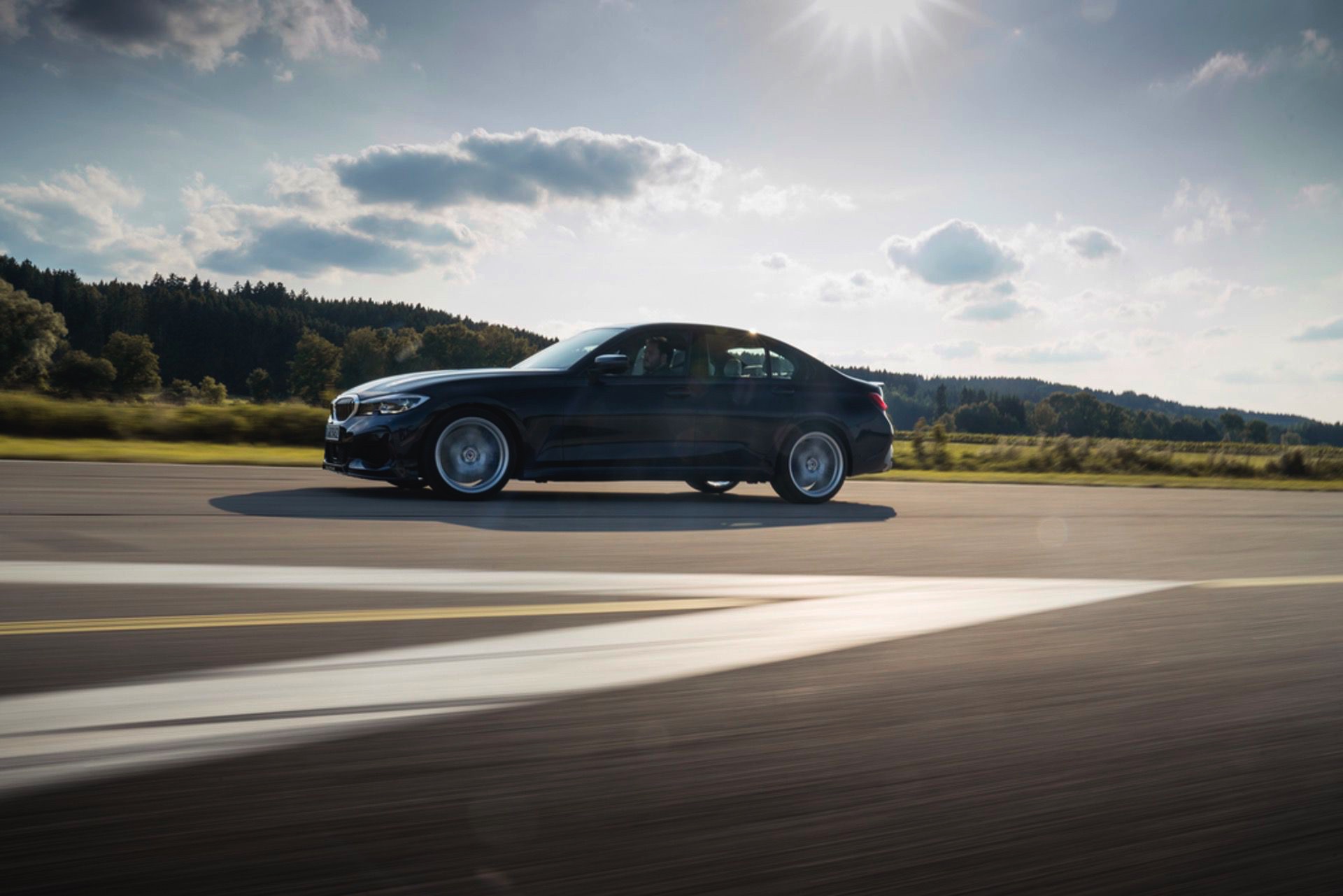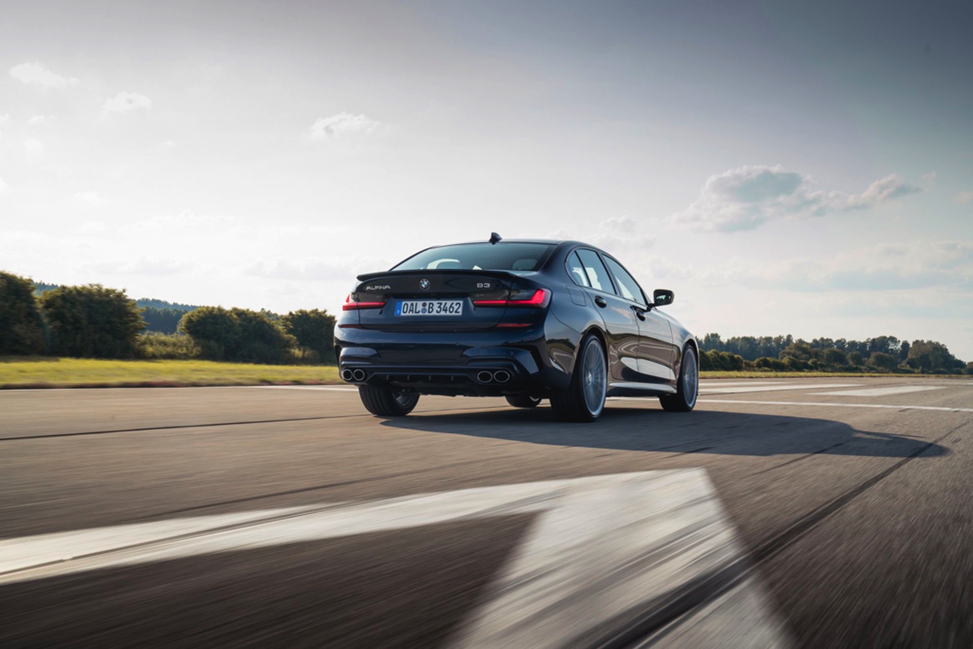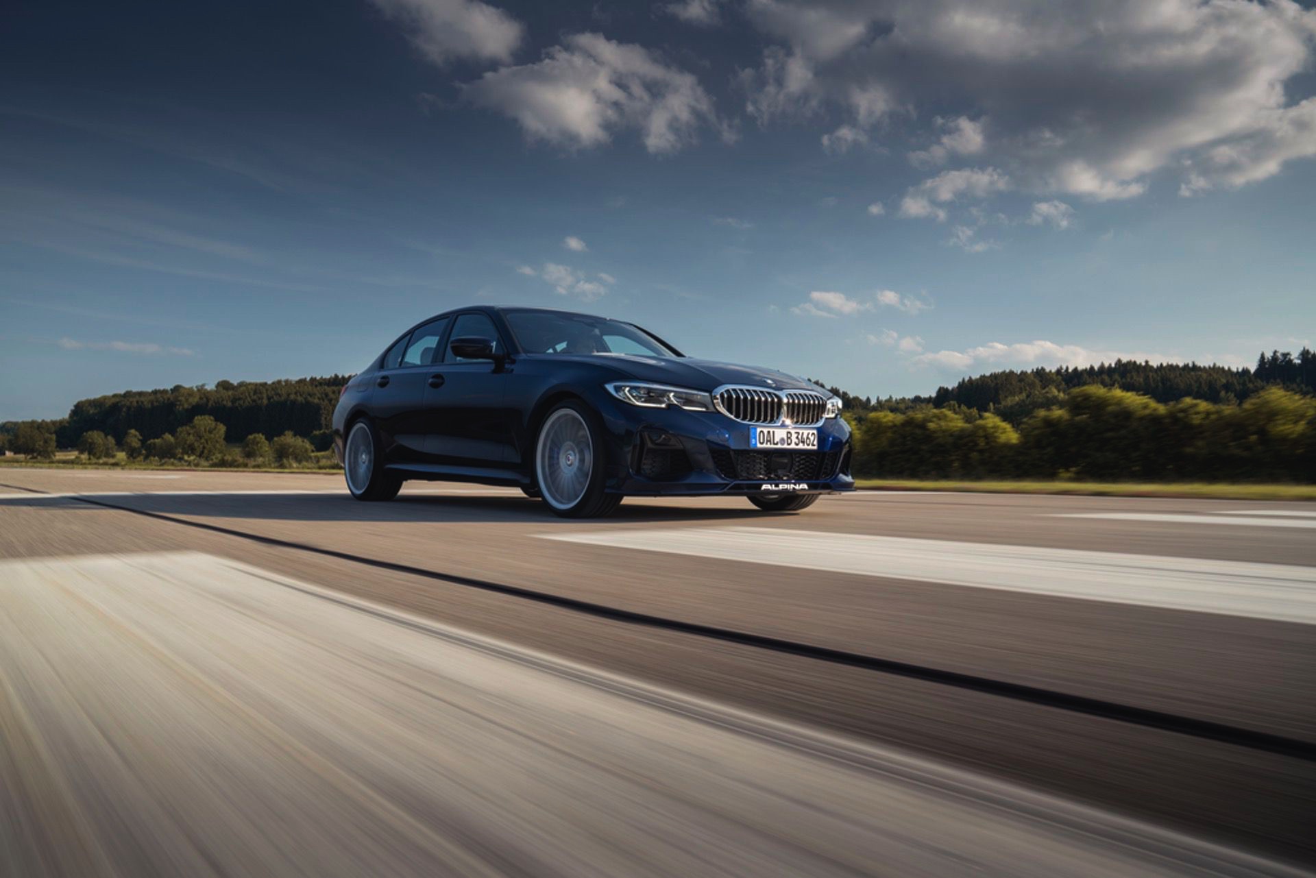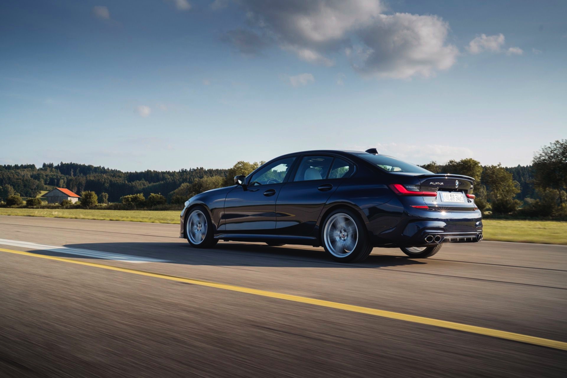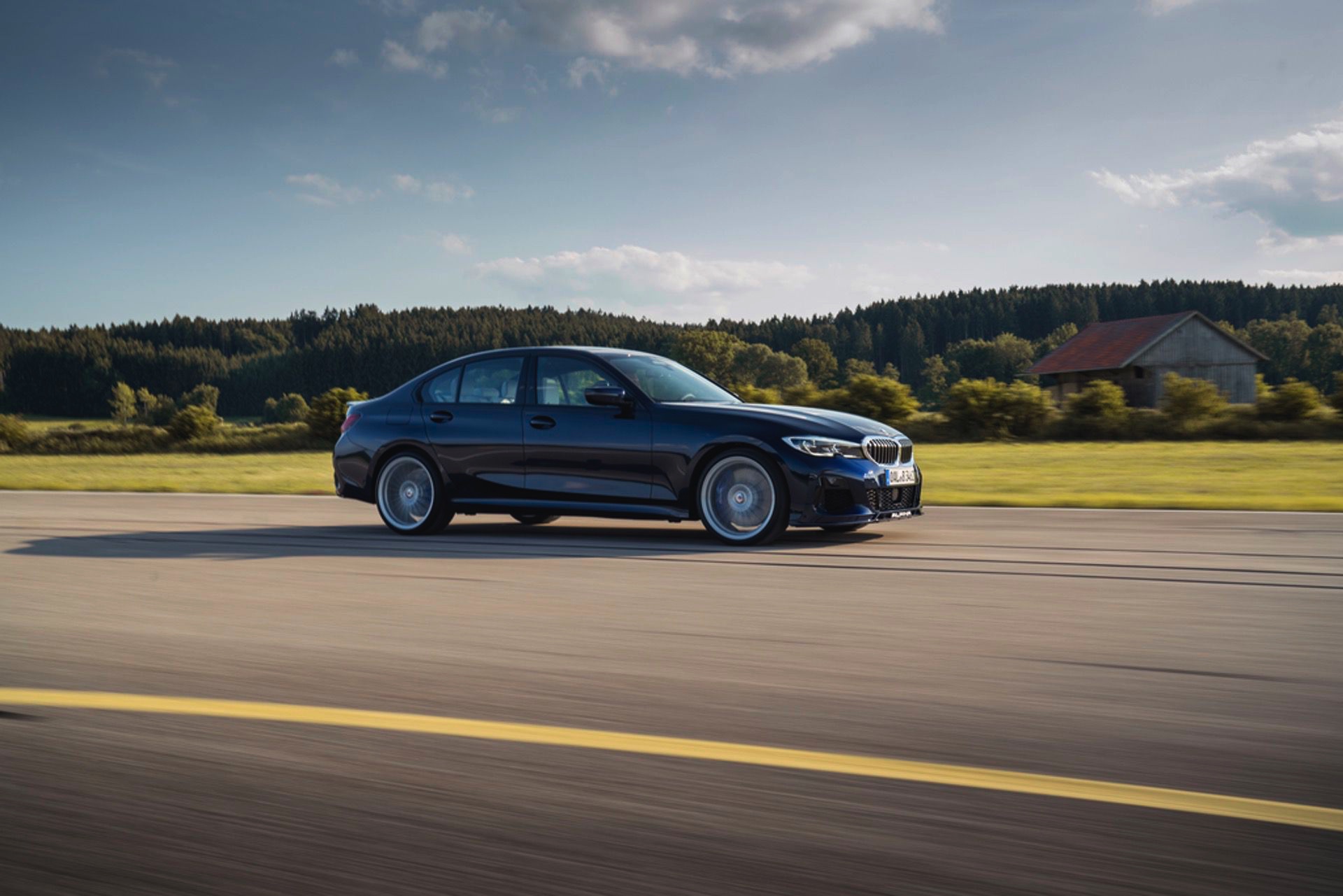Für die zum Antrieb passende Querdynamik sorgt das von Alpina in Zusammenarbeit mit Eibach entwickelte Sportfahrwerk, das sich unter anderem durch Zusatzfedern und großzügiger dimensionierte Stabilisatoren grundlegend vom Serienfahrwerk unterscheidet. Anders als im gewöhnlichen 3er steht Alpina-Kunden auch der Modus Comfort+ zur Verfügung, der für ein besonders sanftes Abrollverhalten sorgt. Dynamiker können sich außerdem über die variable Sportlenkung, das serienmäßige Sperrdifferenzial an der Hinterachse und die gemeinsam mit Pirelli entwickelten Ultra-High-Performance-Reifen freuen.