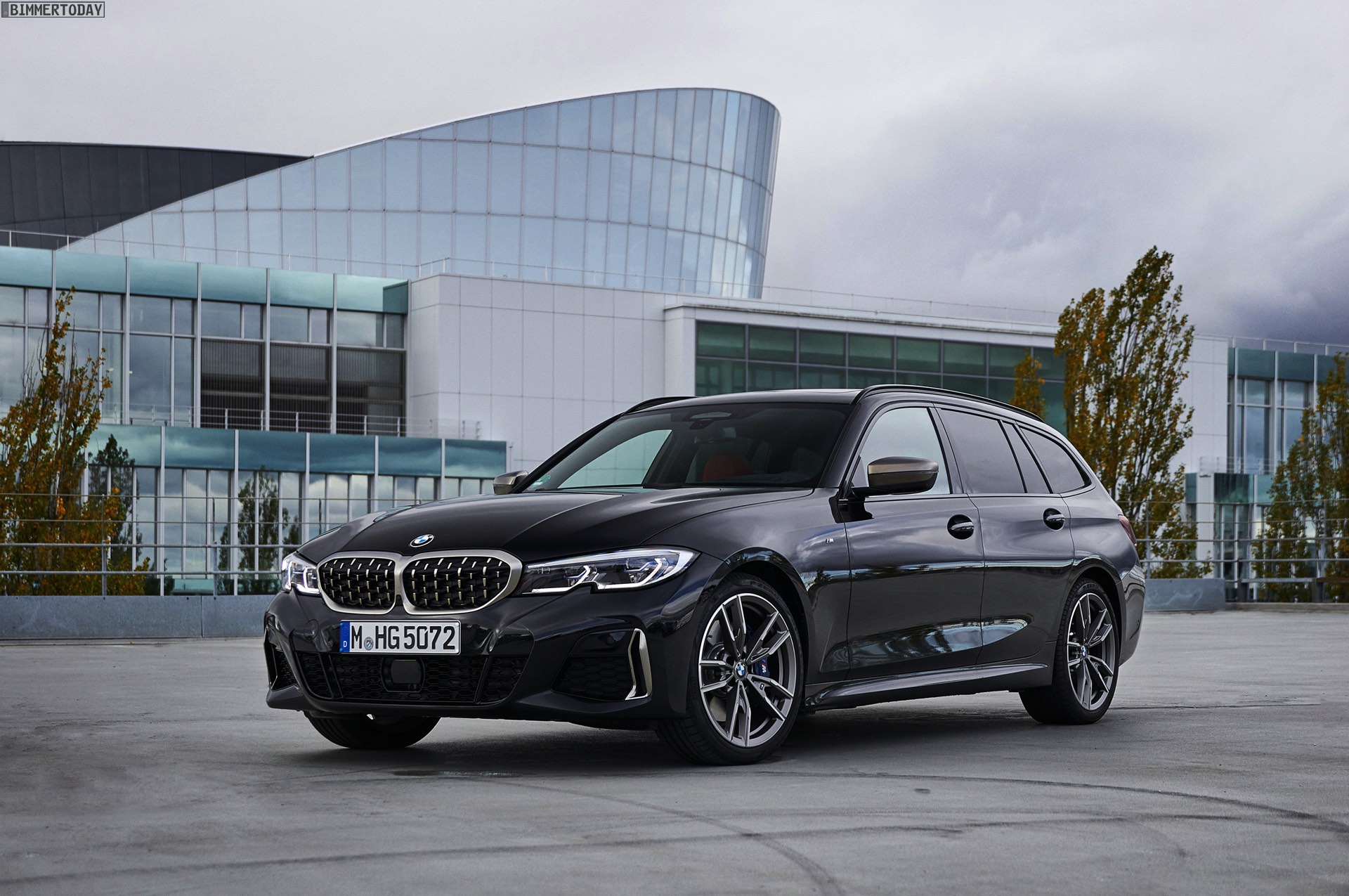 Der neue BMW M340i Touring G21 feiert in diesen Tagen seinen Marktstart, dennoch Fotos vom bisher stärksten in Großserie gebauten 3er Kombi bis heute Mangelware. Nun gibt es eine neue Foto-Produktion, die den 374 PS starken Mittelklasse-Praktiker in Saphirschwarz Metallic zeigen, wobei die Design-Akzente in Cerium Grey sehr gut zur Geltung kommen. Wer es noch dunkler will, kann selbstverständlich zur Shadow Line mit erweiterten Umfängen greifen und erhält dann auch Nieren und Endrohre in tiefem Schwarz.