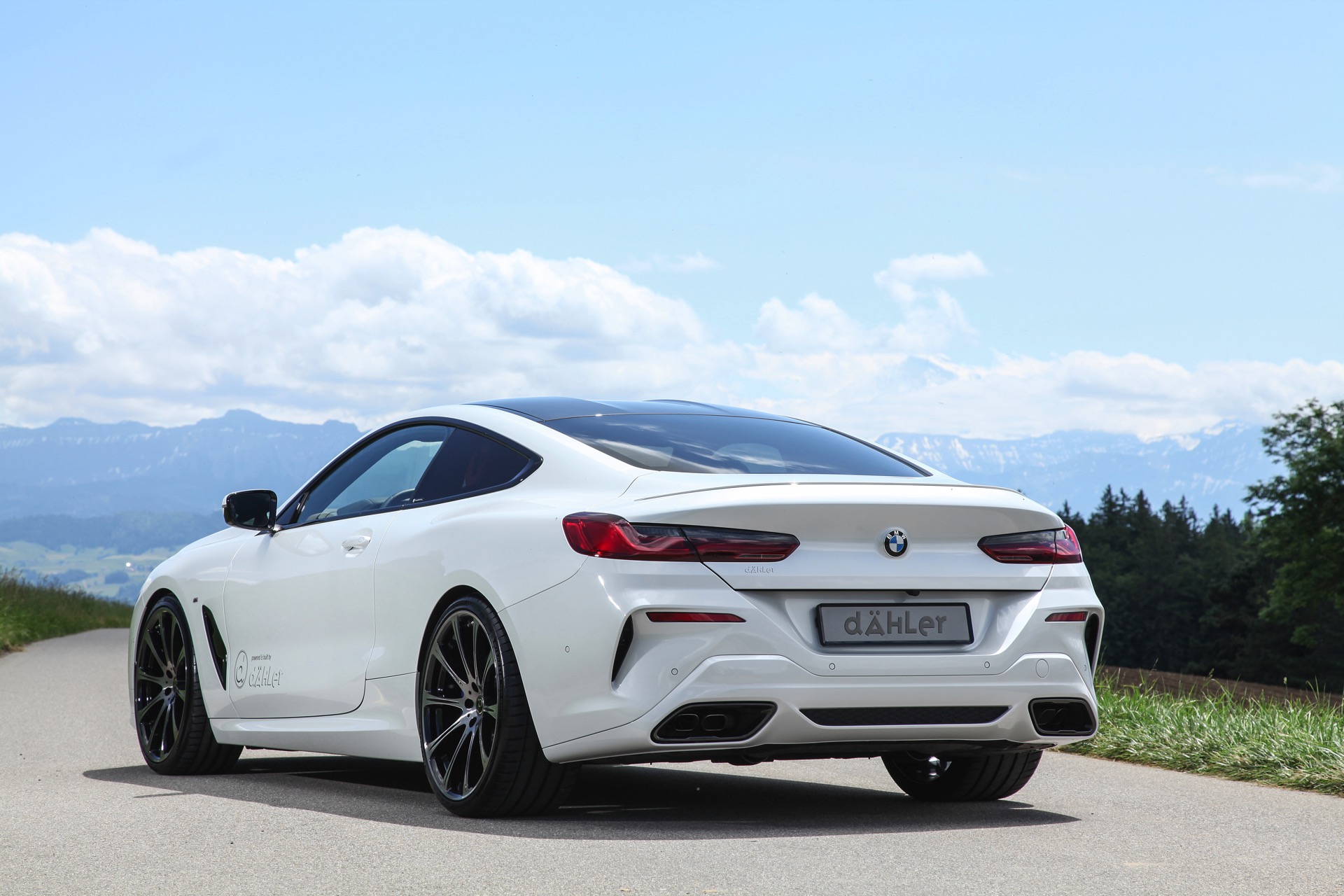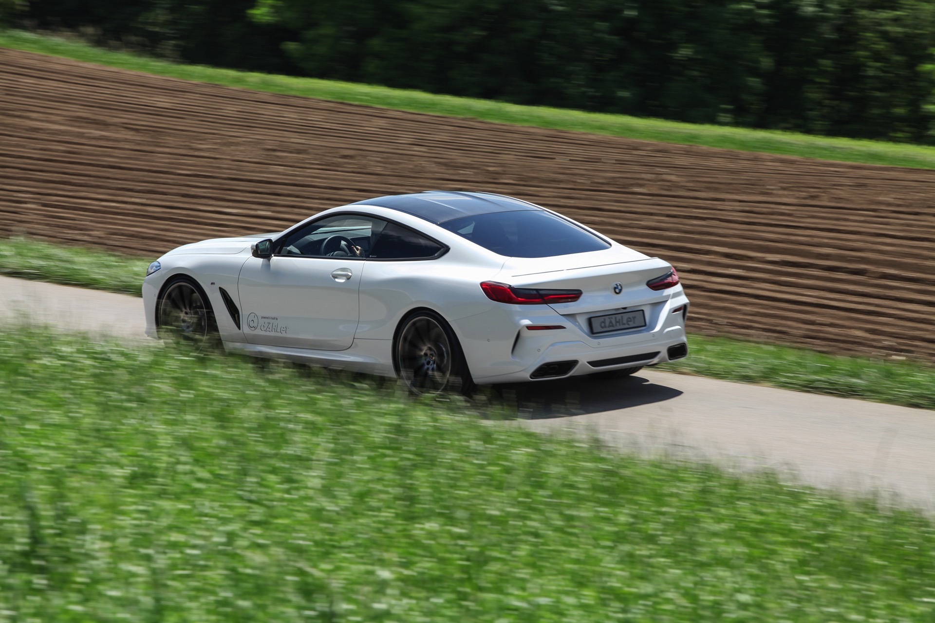 Noch mehr Leistung verspricht das Dähler-Tuning für den BMW 840i. Statt 340 PS und 500 Newtonmeter gibt es hier 408 PS und 610 Newtonmeter Drehmoment. Eine zweite Leistungsstufe befindet sich bereits in Arbeit. Natürlich wird auch hier die Vmax-Beschränkung aufgehoben, auf eine Angabe der im Anschluss erzielbaren Höchstgeschwindigkeit verzichtet Dähler aber in diesem Fall.