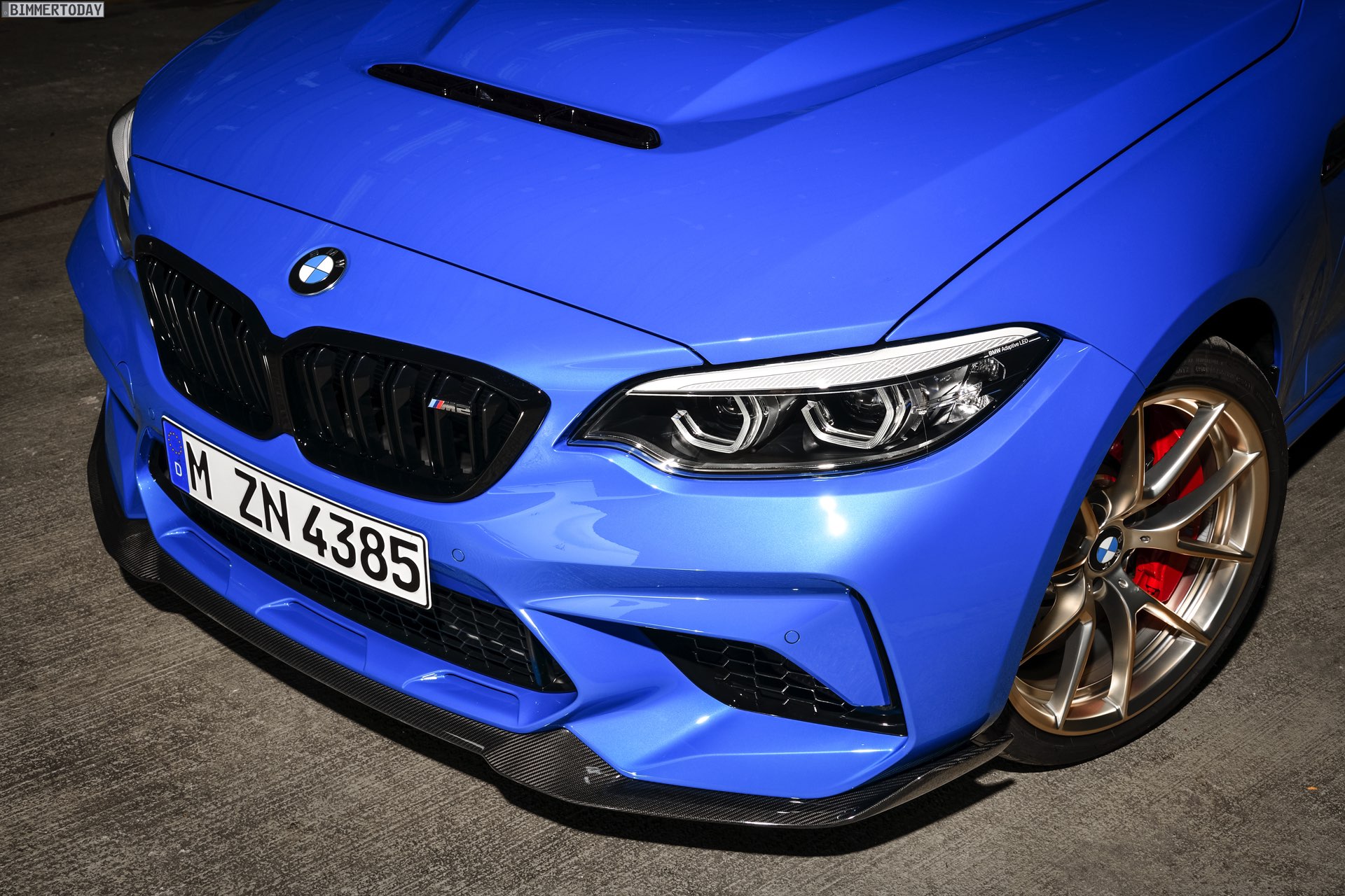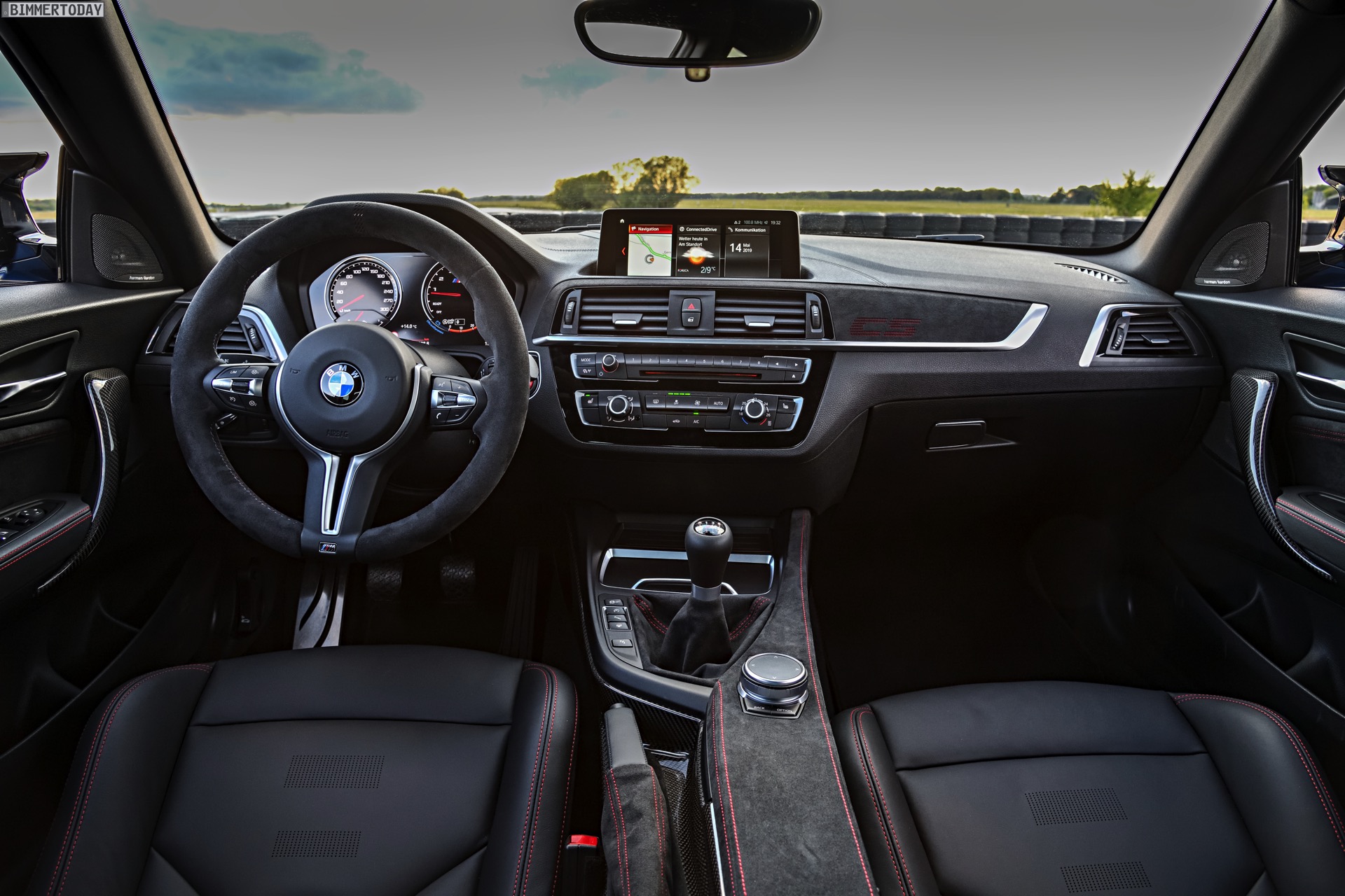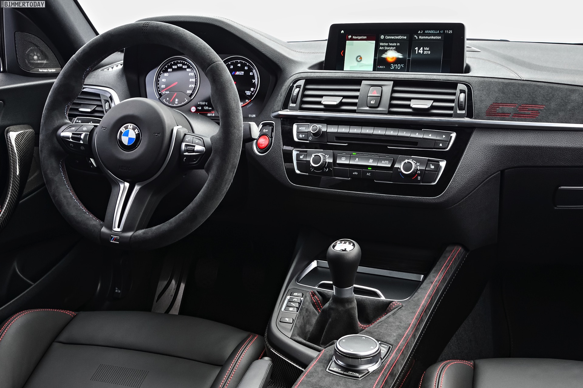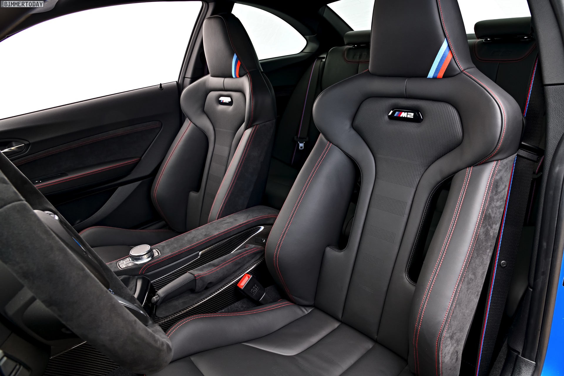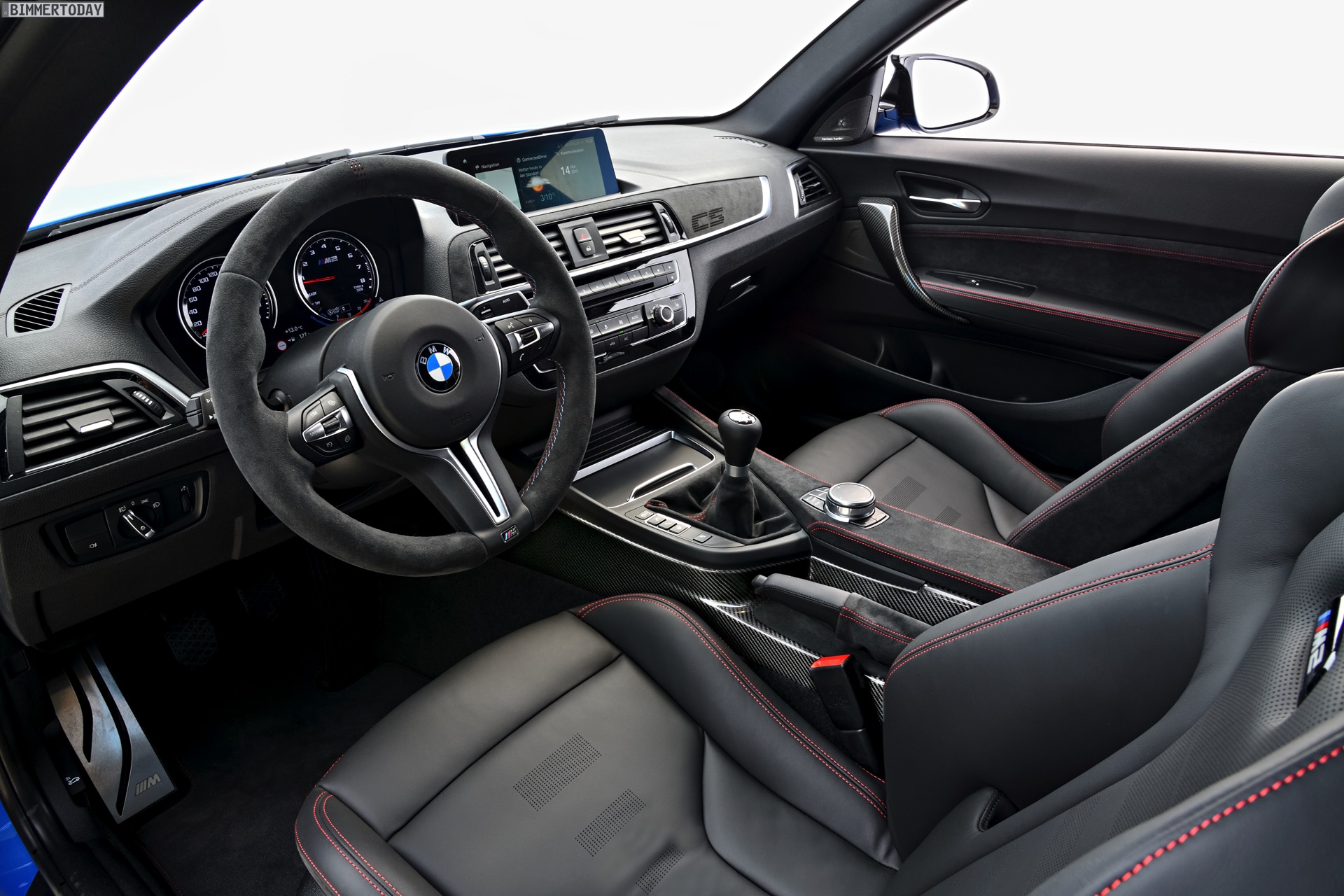 Im Innenraum kommen die gleichen Leichtbau-Sitze mit Schalen-Charakter wie im M4 zum Einsatz, viel Alcantara unterstreicht den sportlichen Anspruch auch haptisch. Rote Kontrastnähte geben dem CS einen exklusiven Touch, passend dazu kommt das M Lenkrad optional mit roter 12-Uhr-Markierung. Ein CS-Logo vor dem Beifahrer darf wie bei den scharfen Varianten von M3 und M4 auch hier nicht fehlen. Äußerlich wird der BMW M2 CS in vielen Fällen schon deshalb leicht erkennbar sein, weil er als einzige M2-Variante auch in Misanoblau bestellt werden kann.