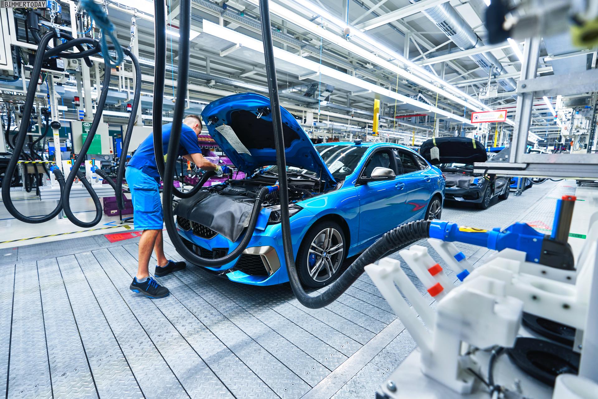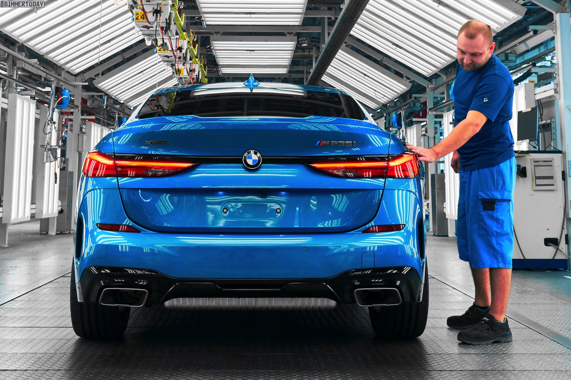 Im BMW Werk Leipzig hat wenige Monate vor dem Marktstart die Serien-Produktion des neuen BMW 2er Gran Coupé F44 begonnen. Damit stemmen die Leipziger innerhalb weniger Monate bereits den zweiten Anlauf eines Volumen-Modells, denn auch der BMW 1er F40 wird seit Mitte 2019 in Leipzig gebaut. Auf den Fotos vom Auftakt der Produktion des technischen eng verwandten F44 sehen wir ein BMW M235i Gran Coupé in Snapper Rocks Blue.